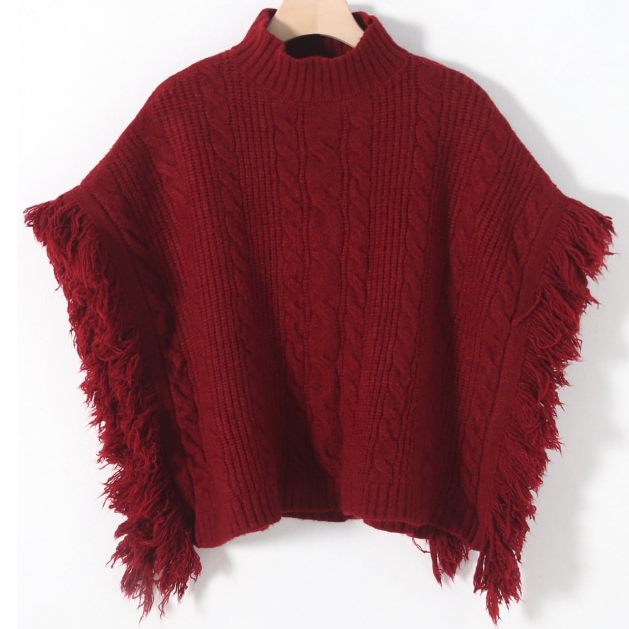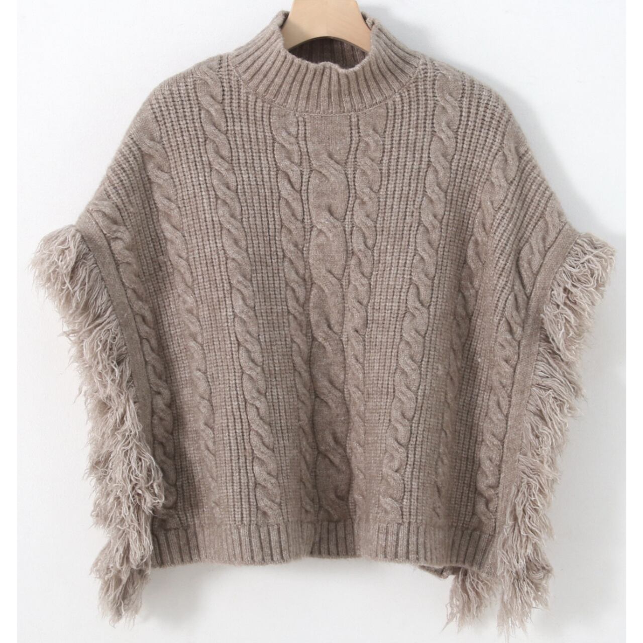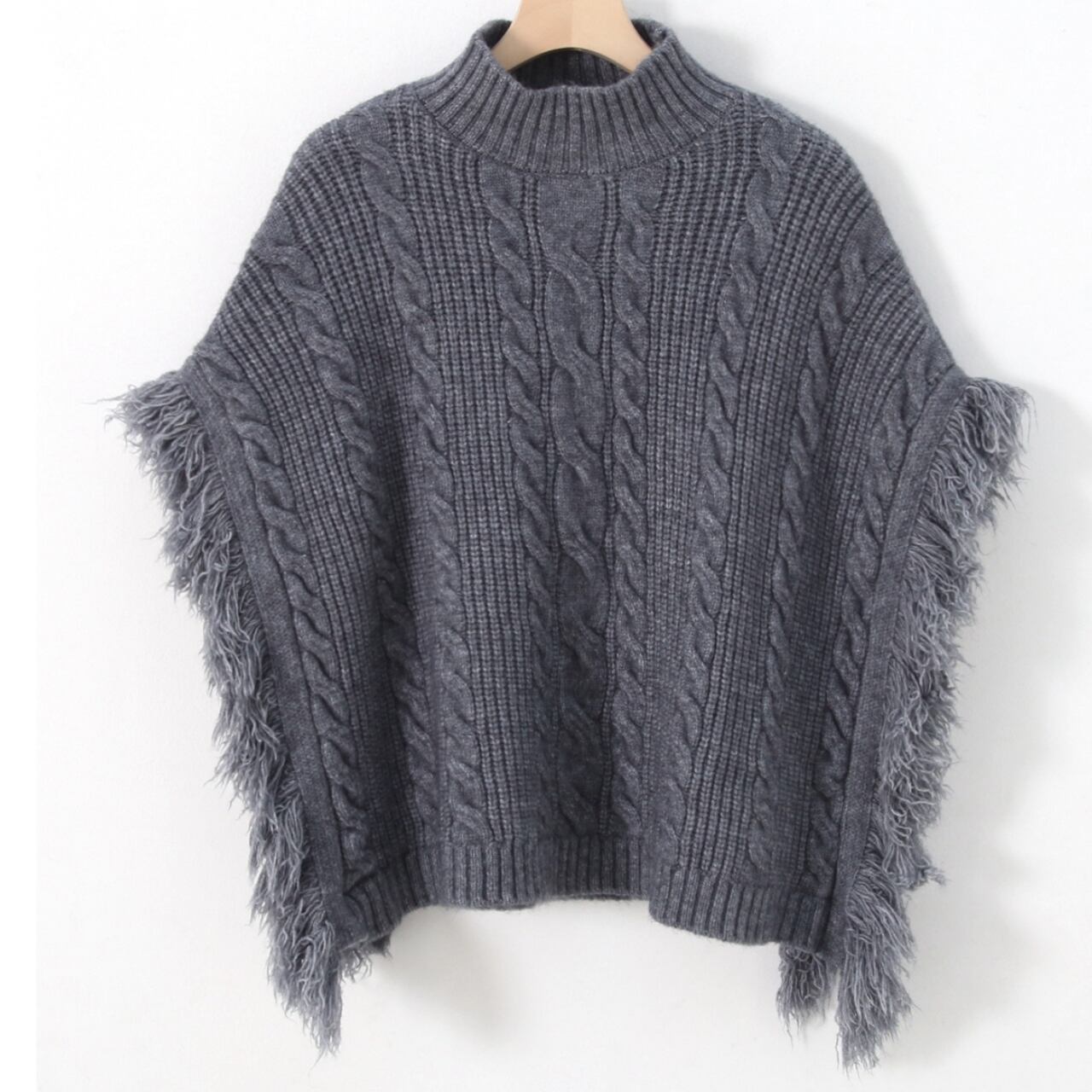 ボヘミアンポンチョ風ニット。風通しの良いボヘミアンスタイルが魅力の一枚で、着こなしに自由さを与えます。ナチュラルなテクスチャーとデザインが、カジュアルからアーバンスタイルまで多様に楽しめるアイテムです。心地よい着心地で、デイリーユースにぴったりの一着です。