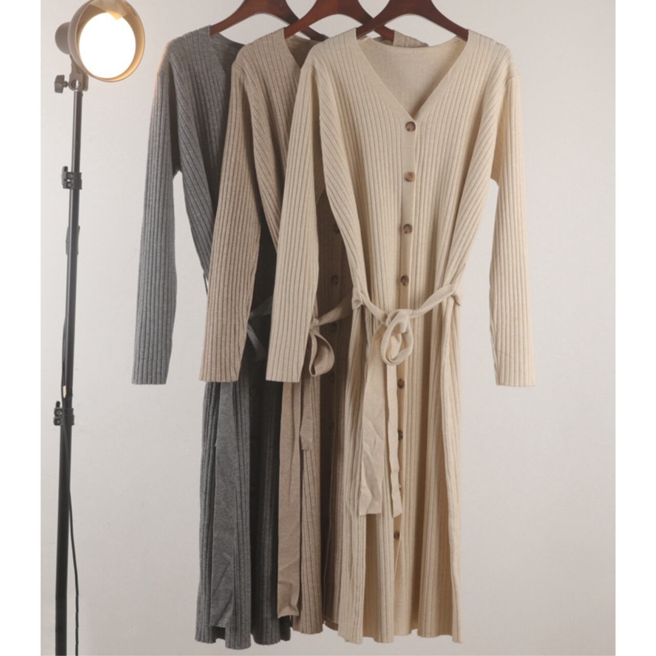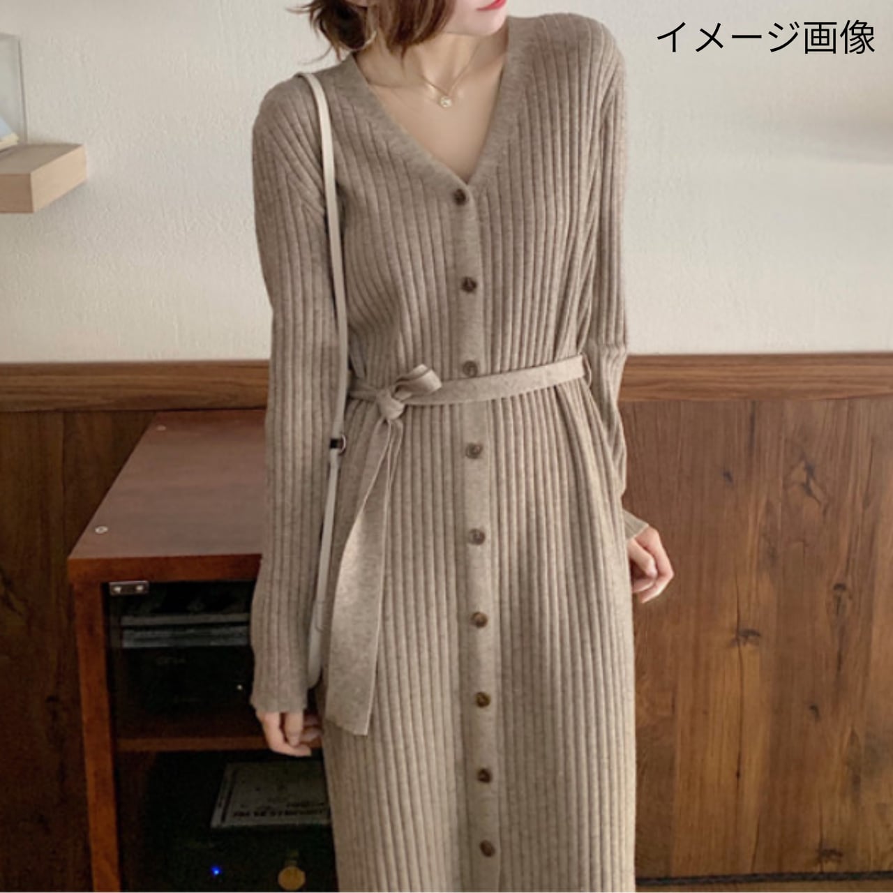 Vネックニットワンピース。流行を取り入れたVネックデザインが魅力的なニットワンピースです。柔らかな編み地が心地よく、シンプルながらもひときわスタイルを引き立てます。デイリースタイルはもちろん、特別な日のお出かけにもぴったりな一着。リラックスしたシルエットが女性らしさを引き立て、洗練された印象を与えます。