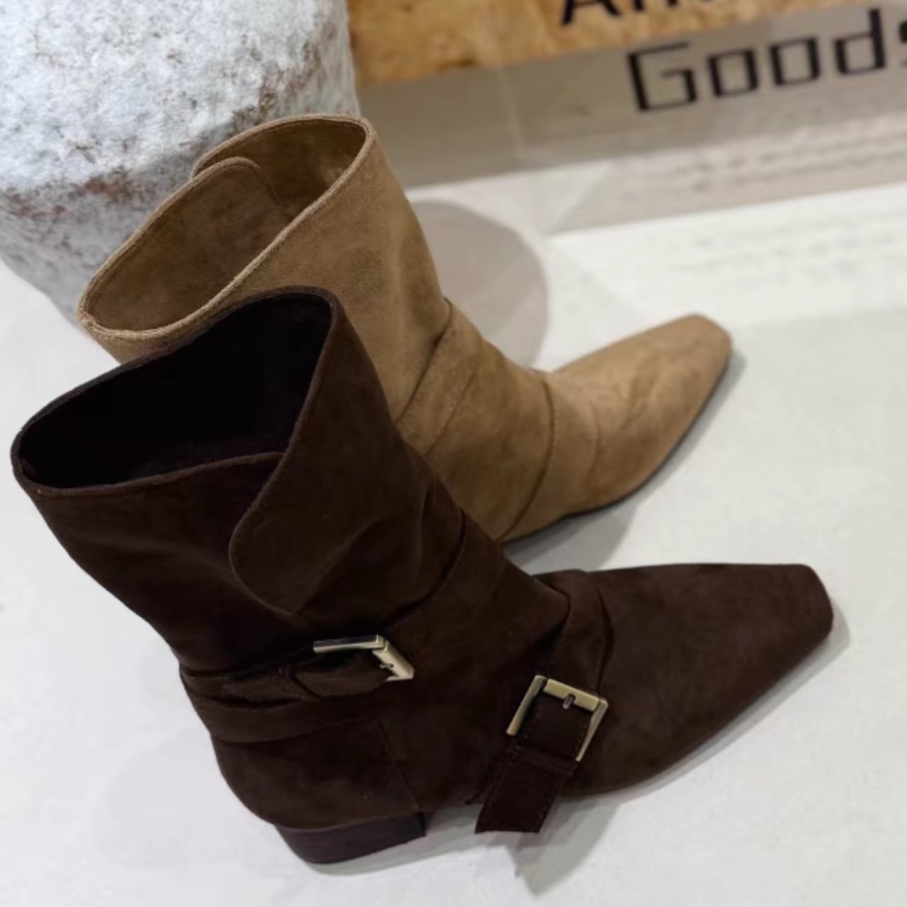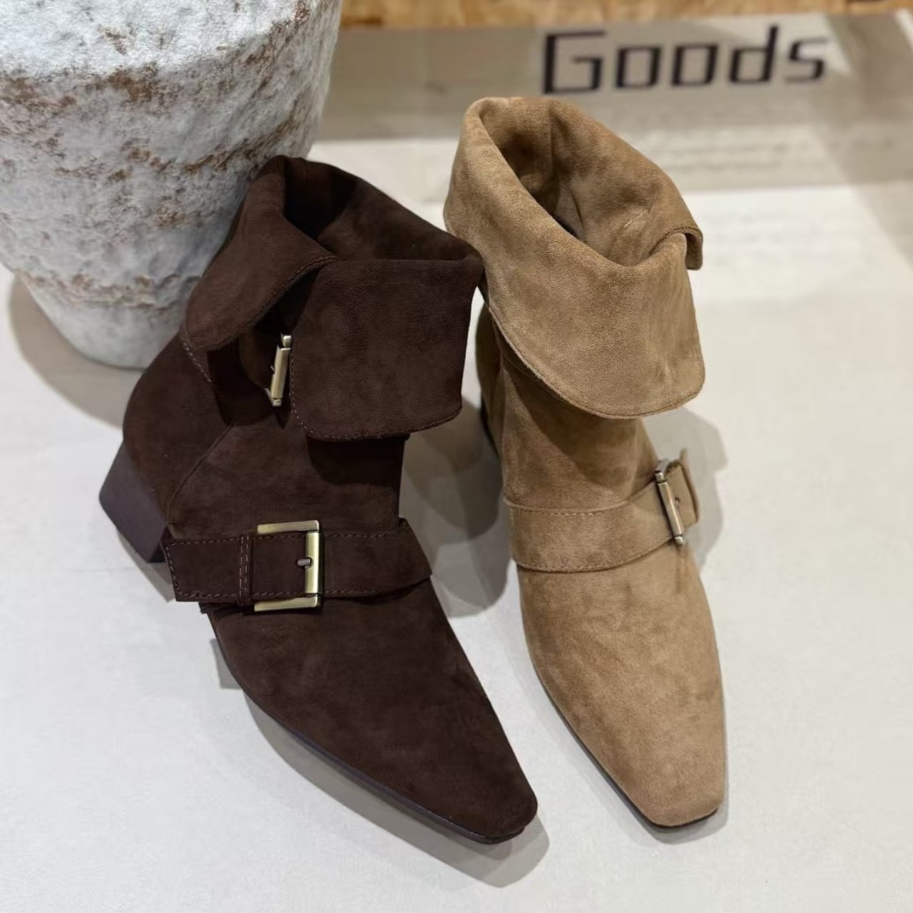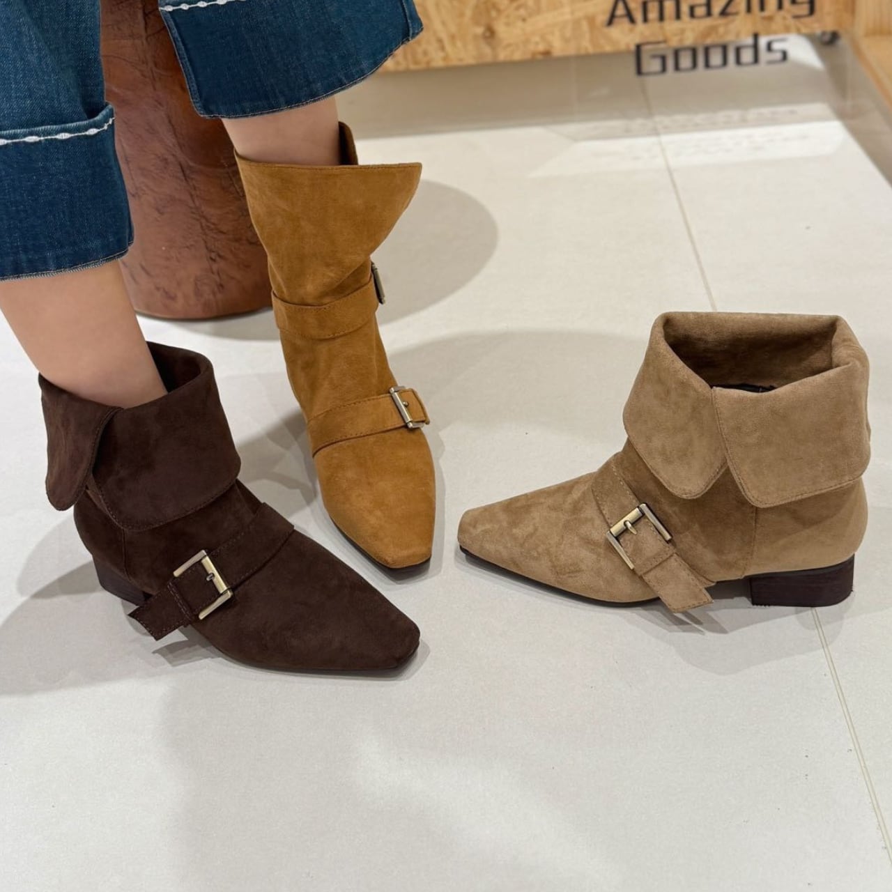 スクエアトゥー レトロ2WAYアンクルブーツ