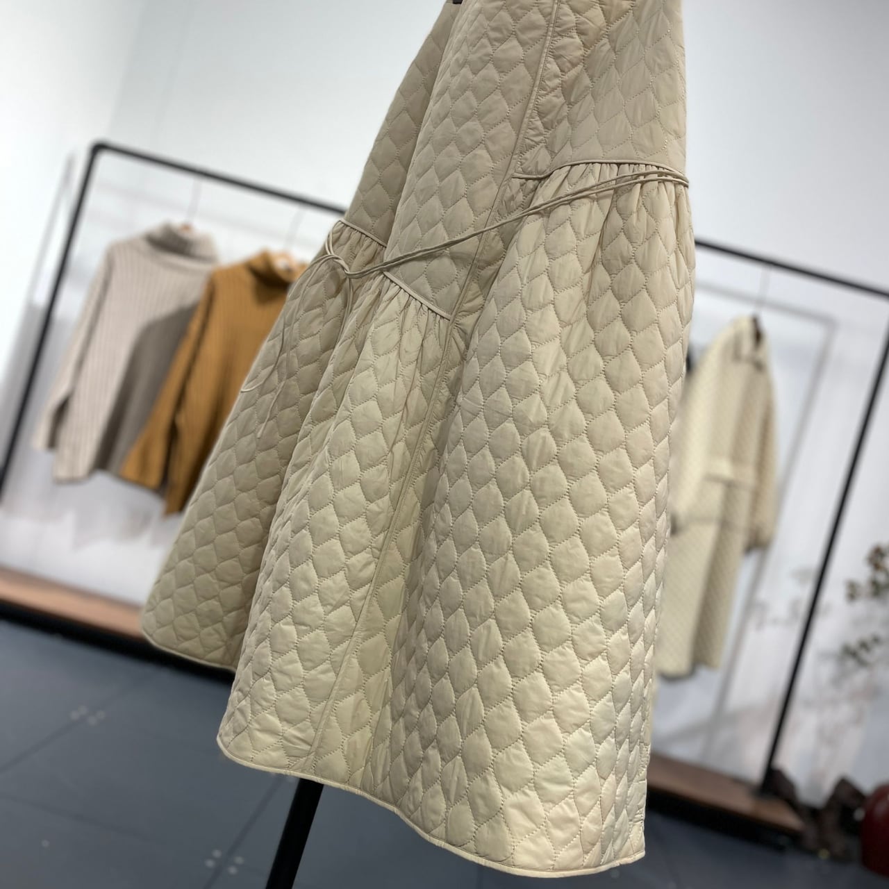 レディース キルティングスカート。スタイリッシュかつ暖かなキルティングデザインが特徴で、カジュアルな日常使いから特別なシーンまで幅広く対応できます。軽やかな素材感と女性らしいシルエットが、どんなコーディネートにも華やかさをプラスします。是非この秋冬のコーディネートに加えて、快適かつお洒落な着こなしを楽しんでください!