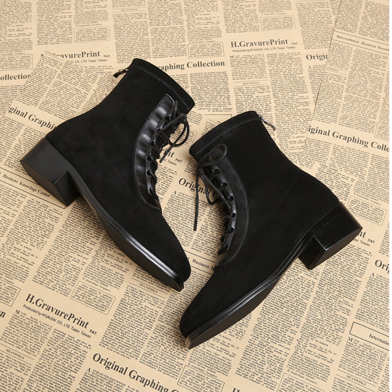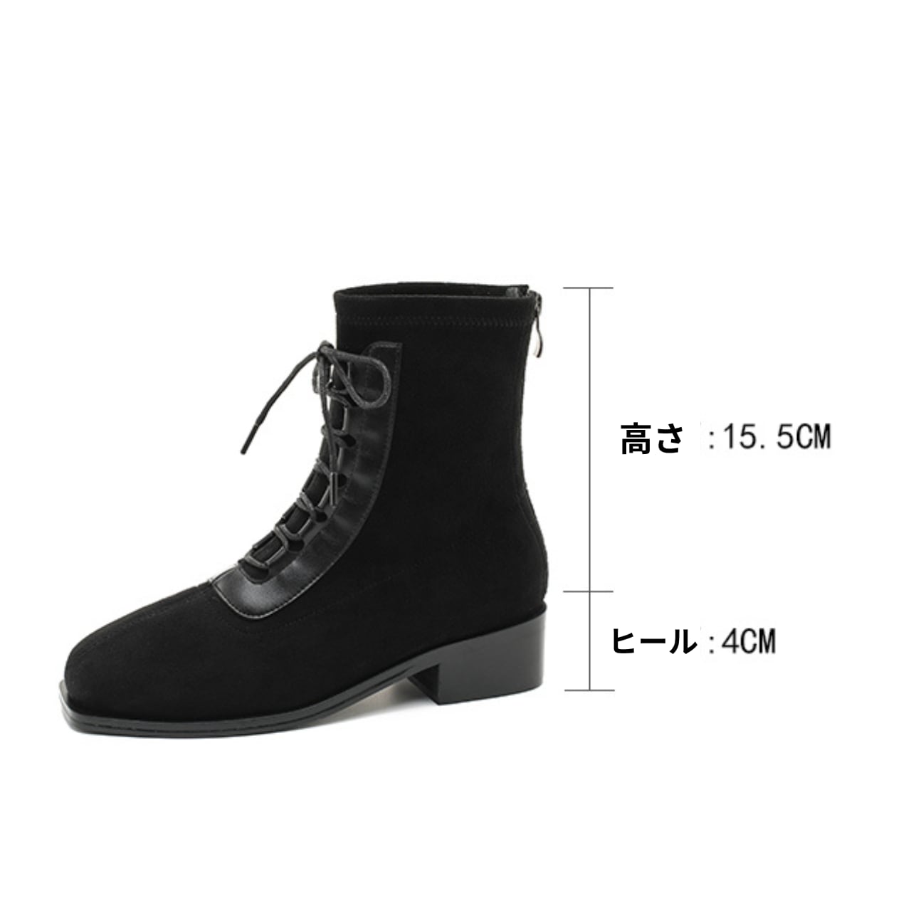 レースアップ ショート丈 バックジップ ブーツ S-0018