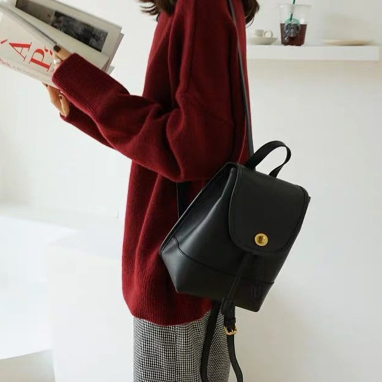 腰丈のデザインが、カジュアルながらも女性らしさを演出します。