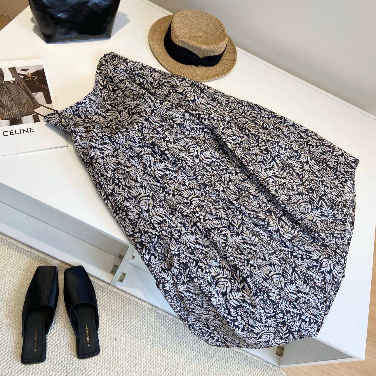 ミモレ丈なので、上品に着こなせます。