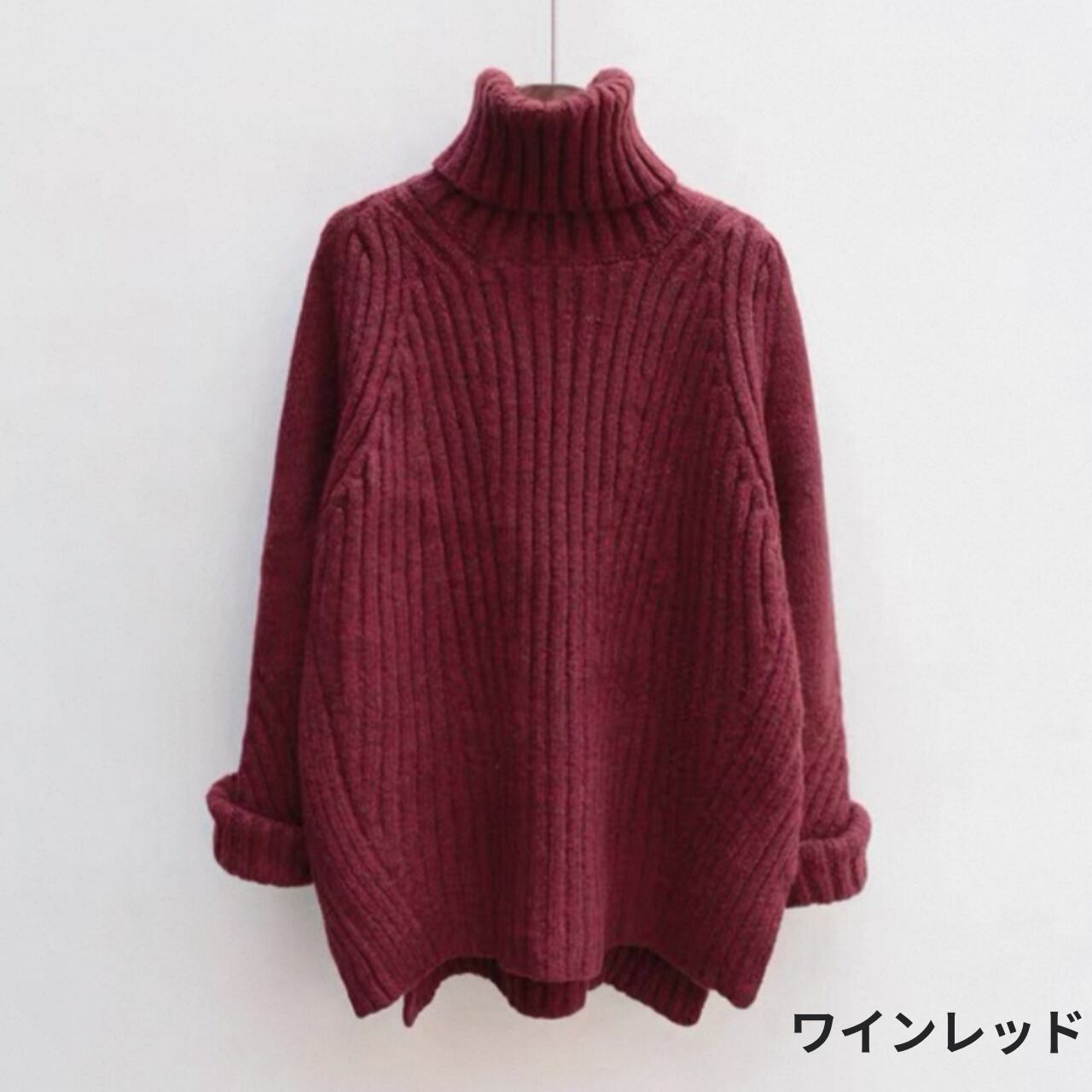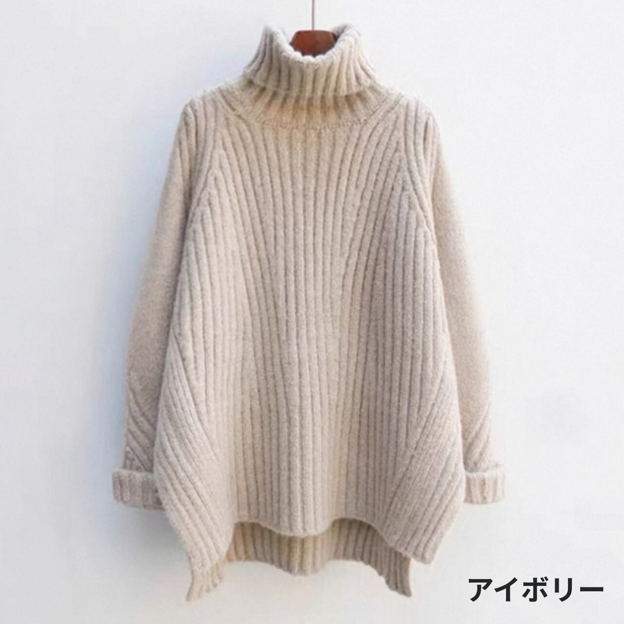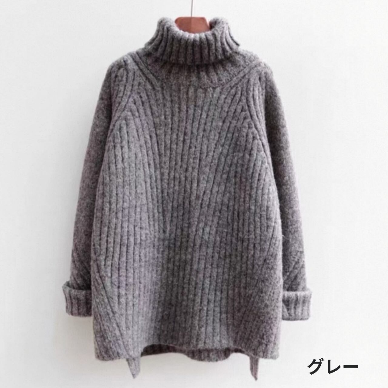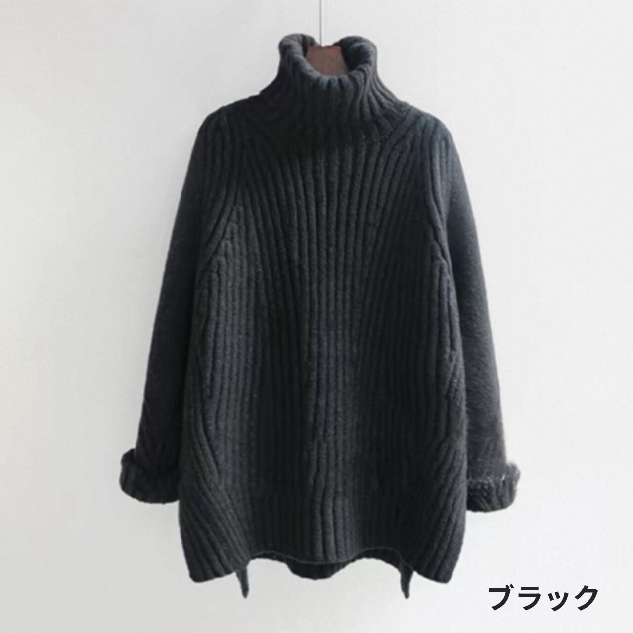 柔らかなニット素材が心地よい、長袖オーバーサイズニットチュニック。
