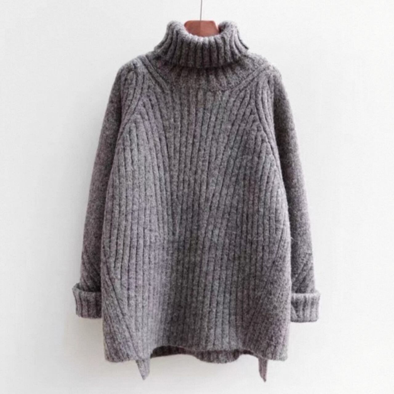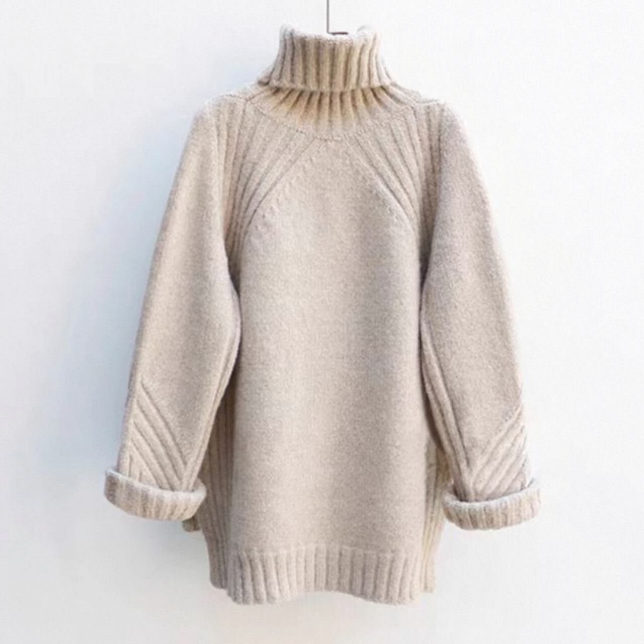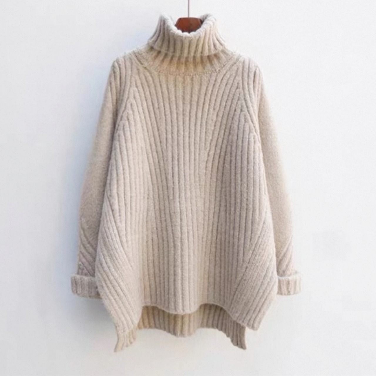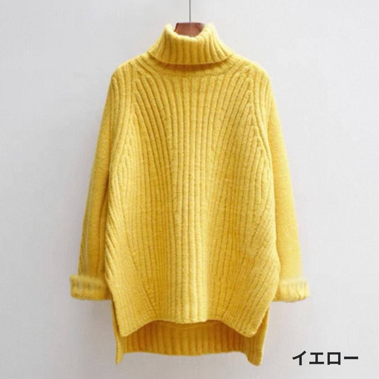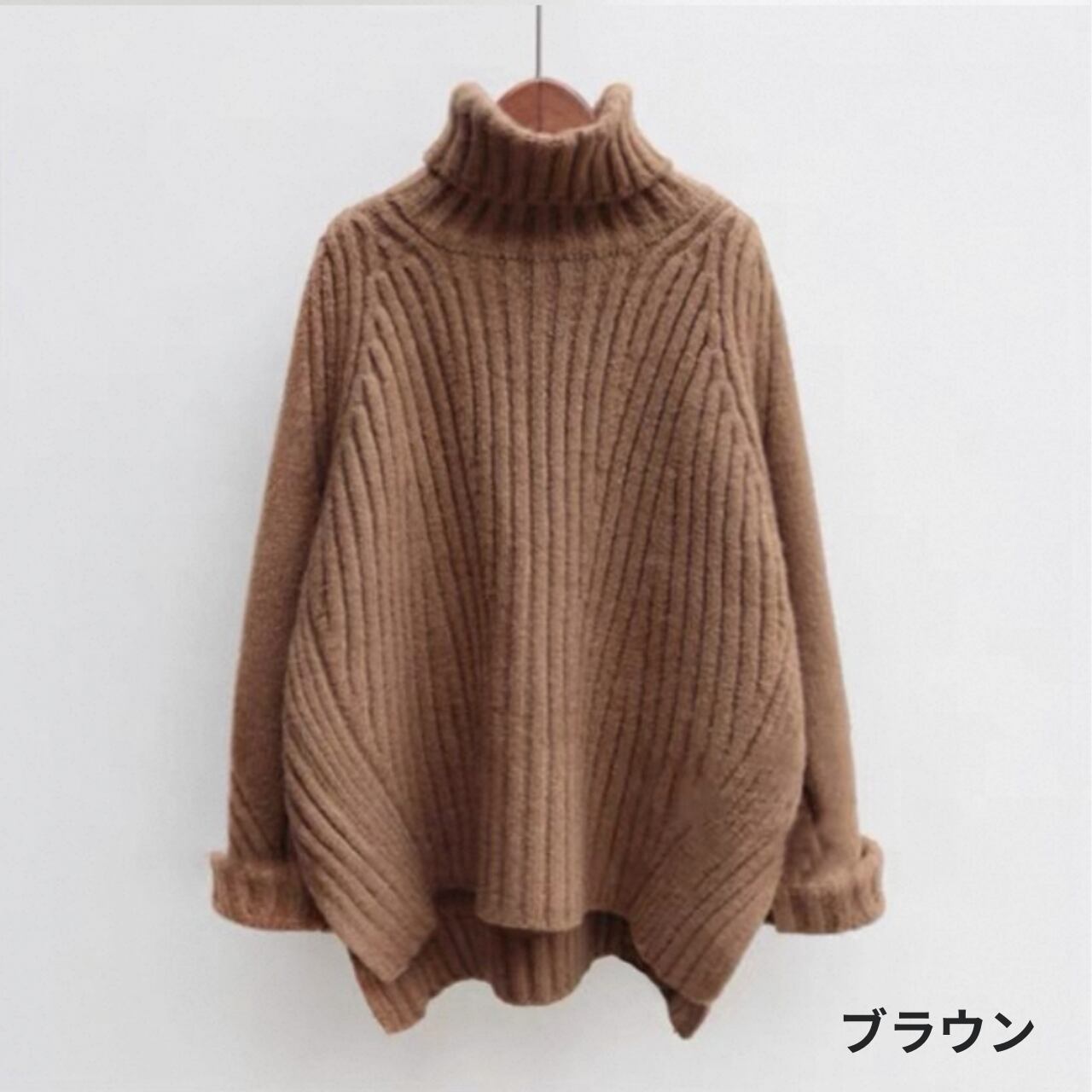 柔らかなニット素材が心地よい、長袖オーバーサイズニットチュニック。