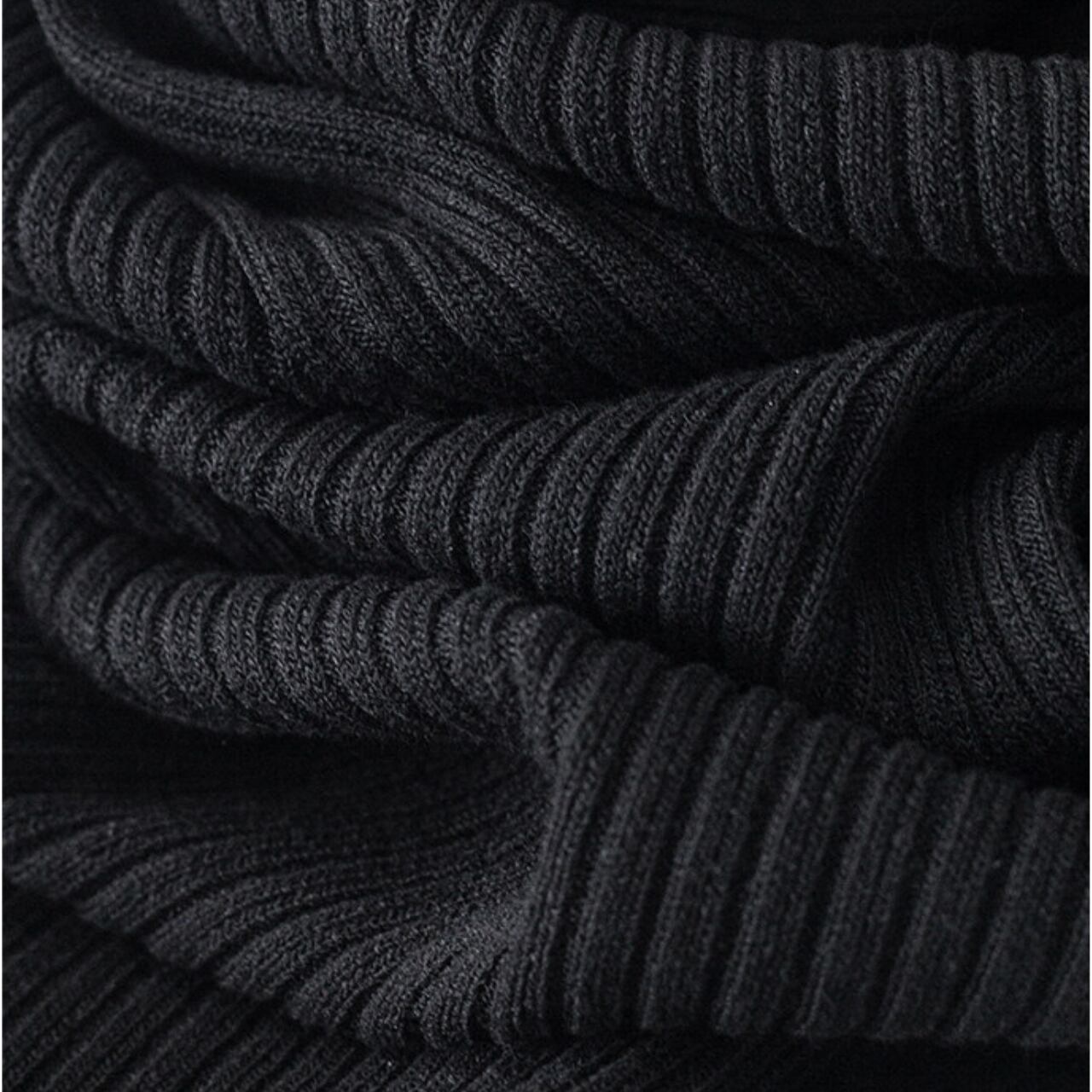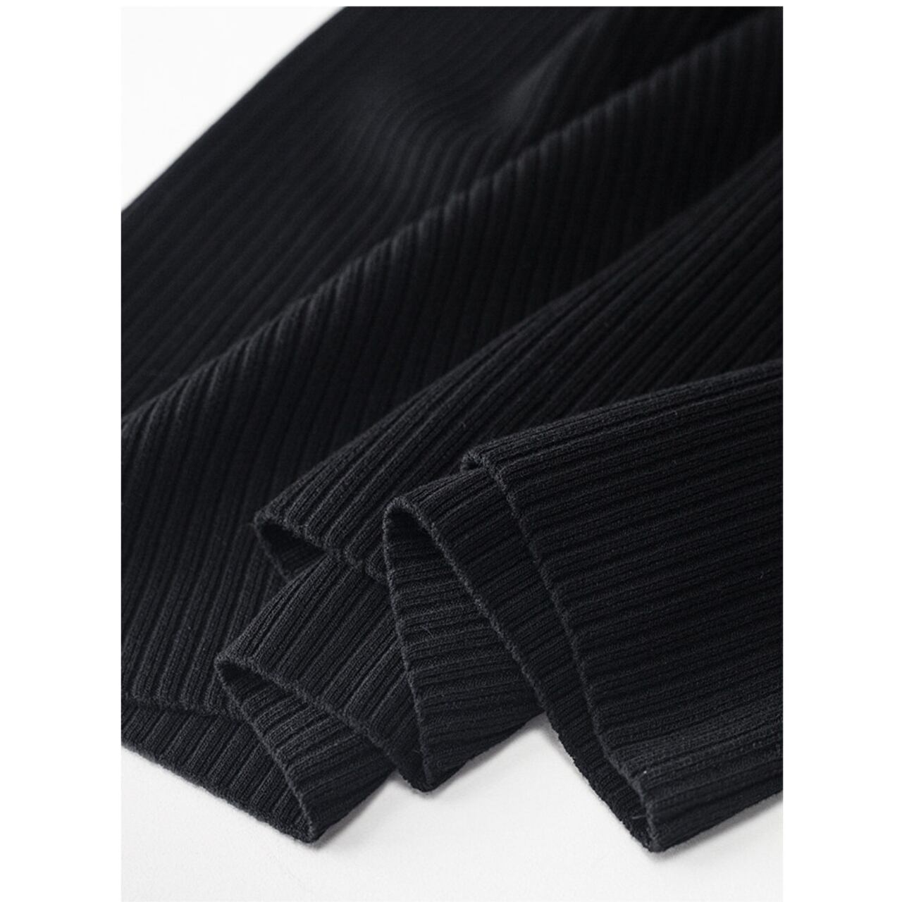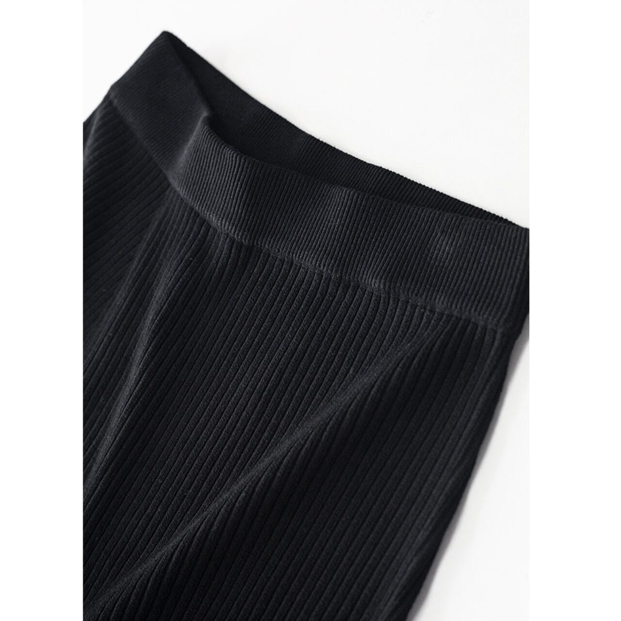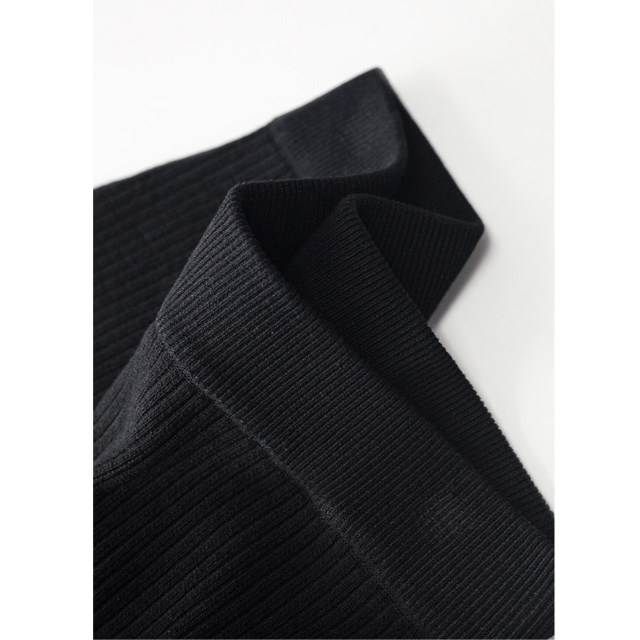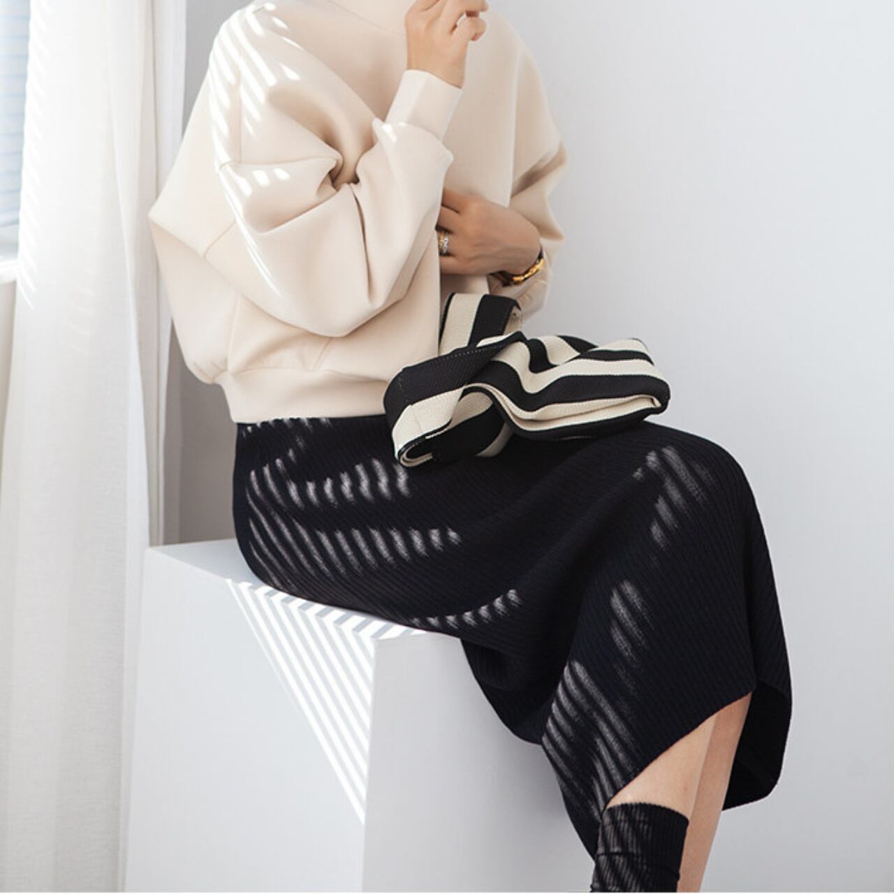 リブ編みの縦ラインが、スタイルをすっきりと見せてくれるミモレ丈のタイトスカート。