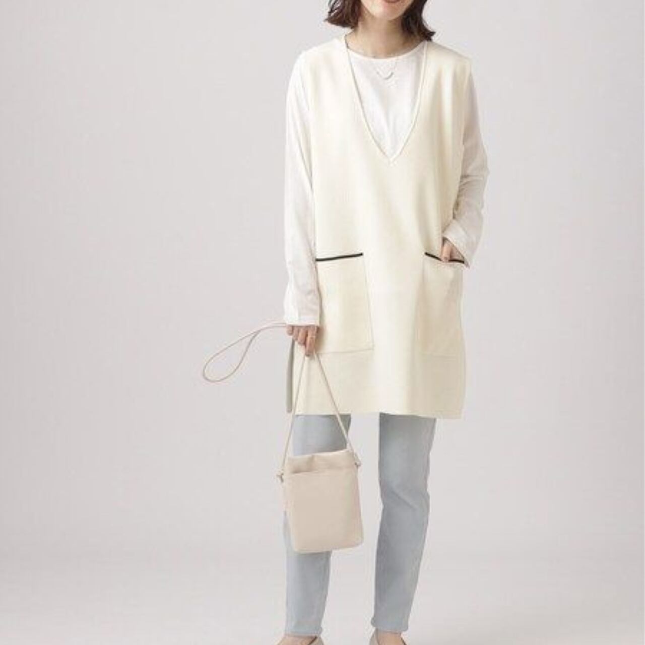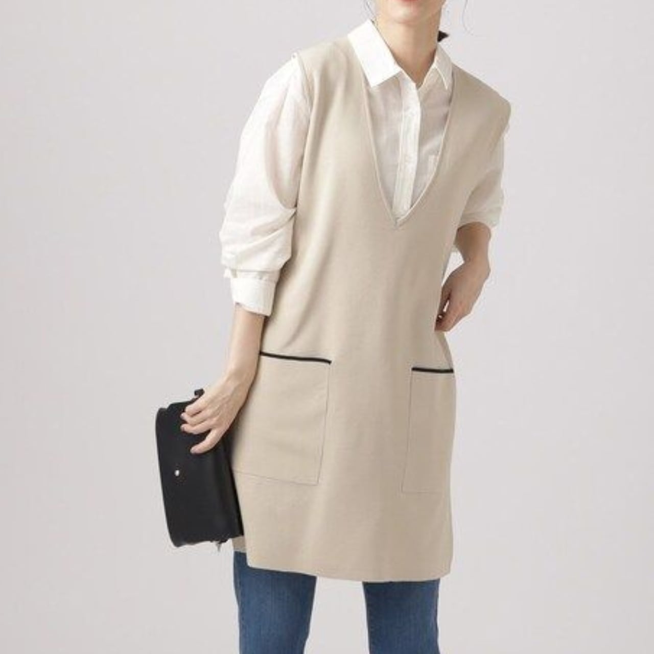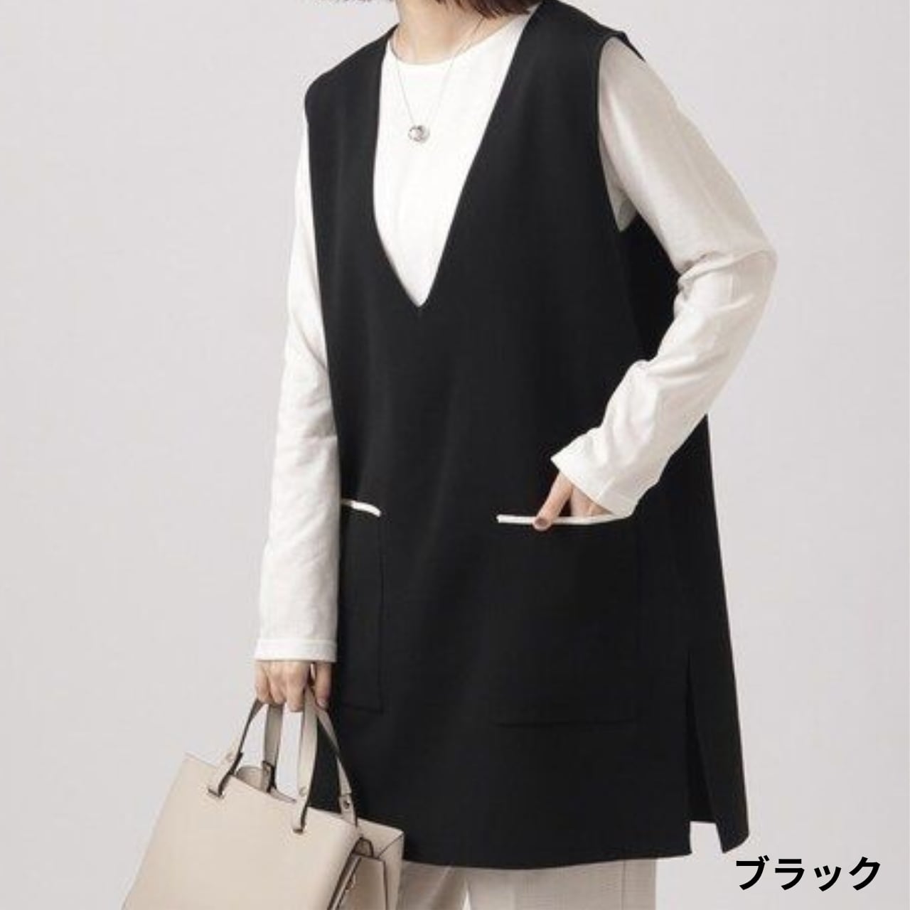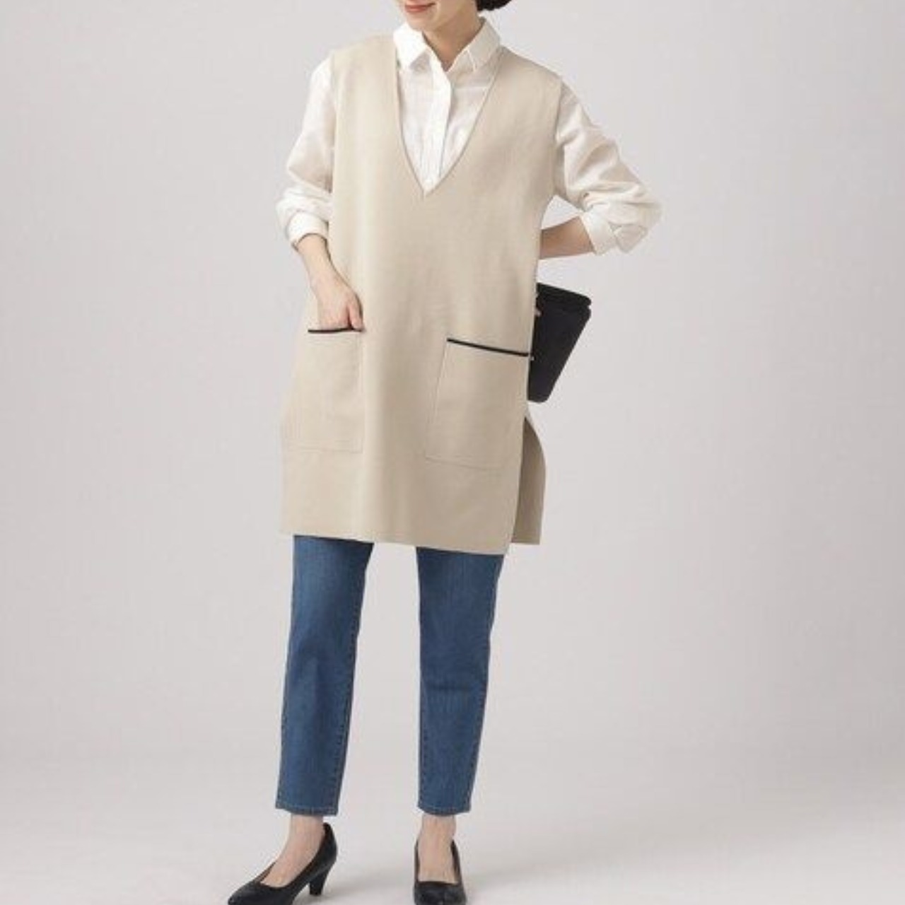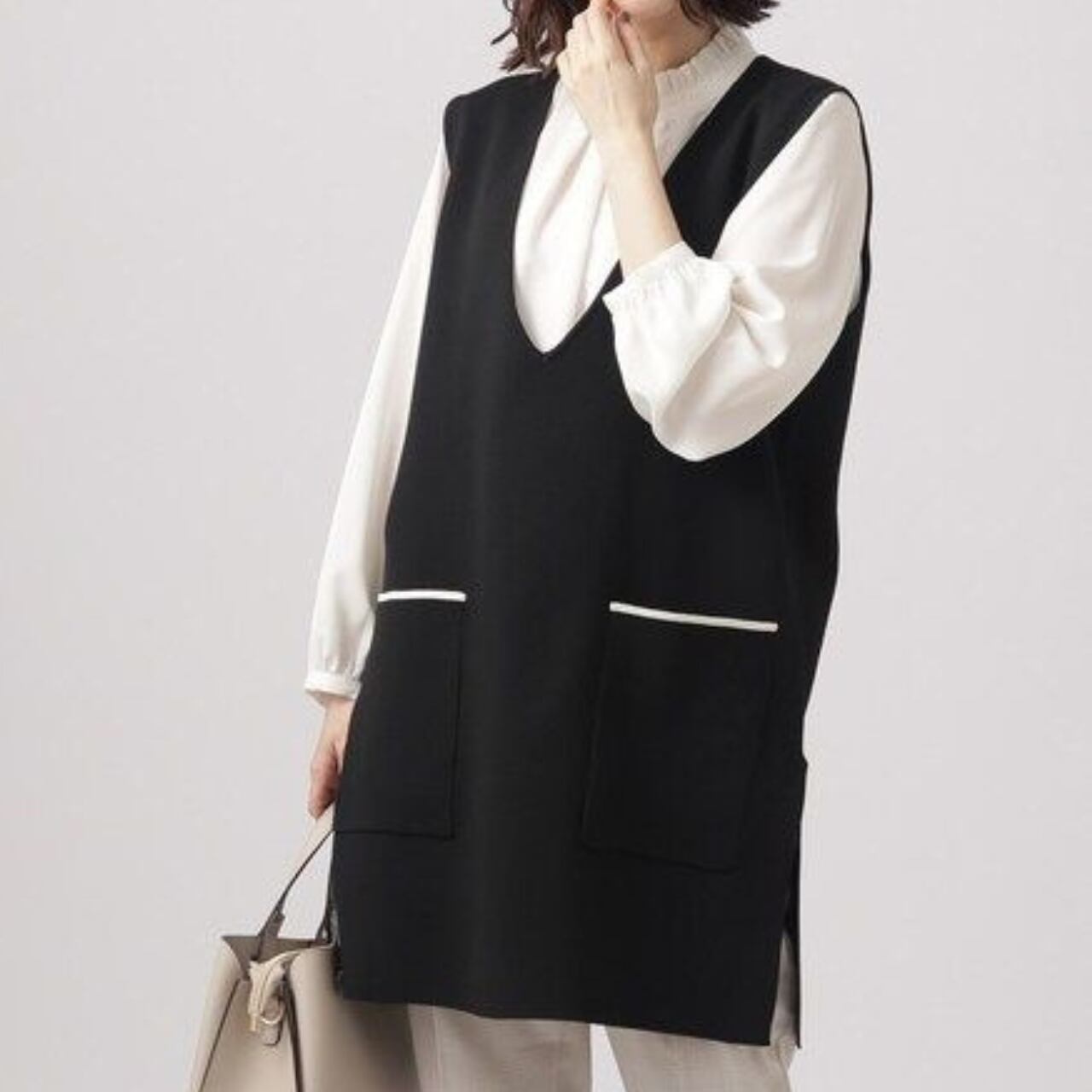 パッチポケット ミディ丈 Vネック ニットベスト / 00045