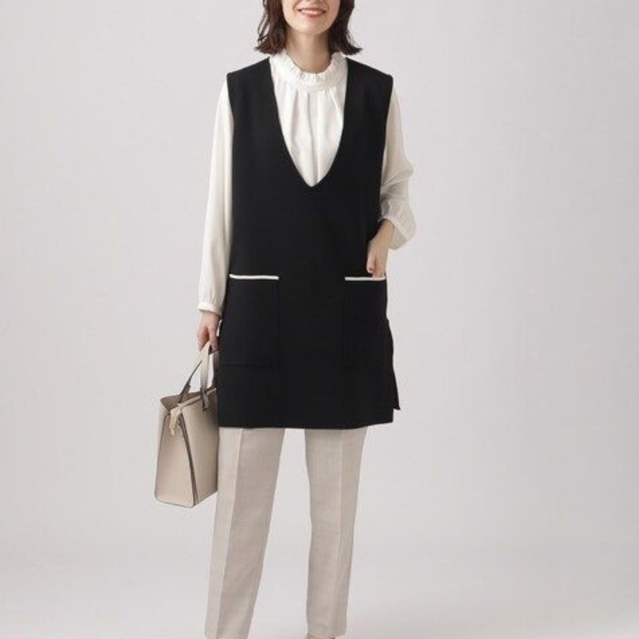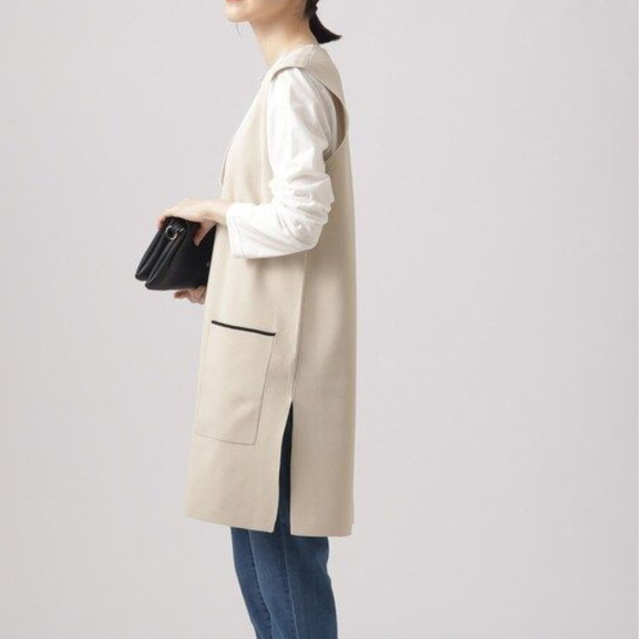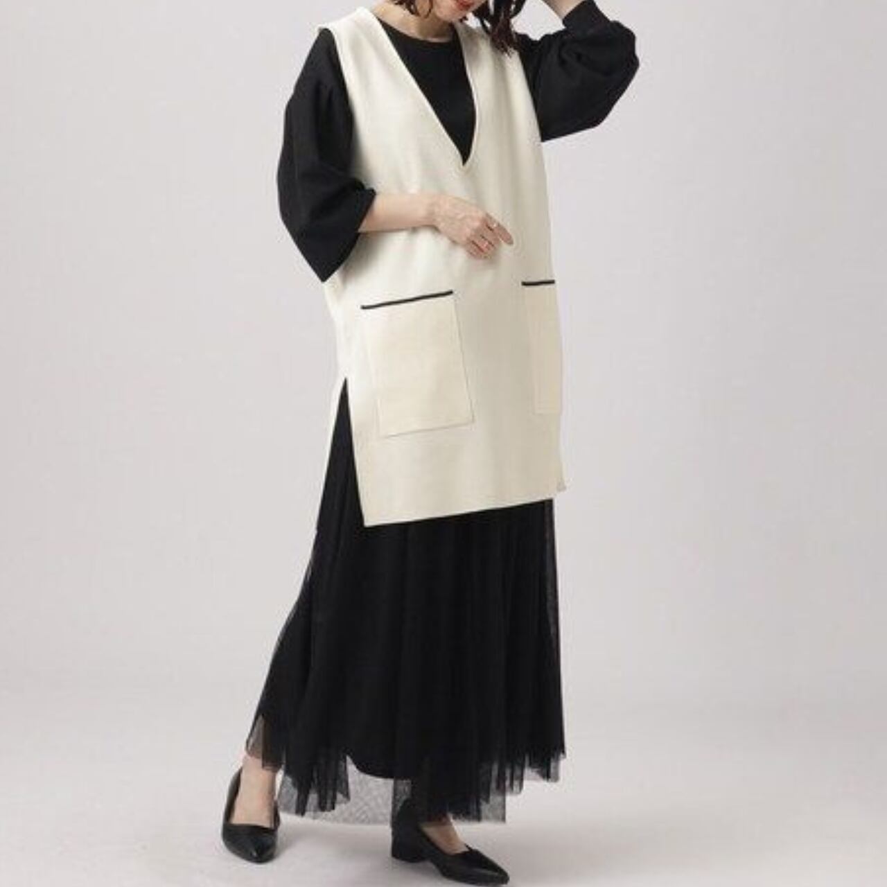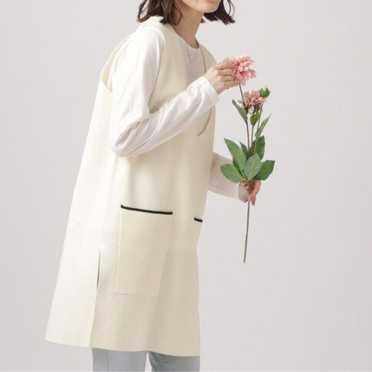 パッチポケット ミディ丈 Vネック ニットベスト / 00045