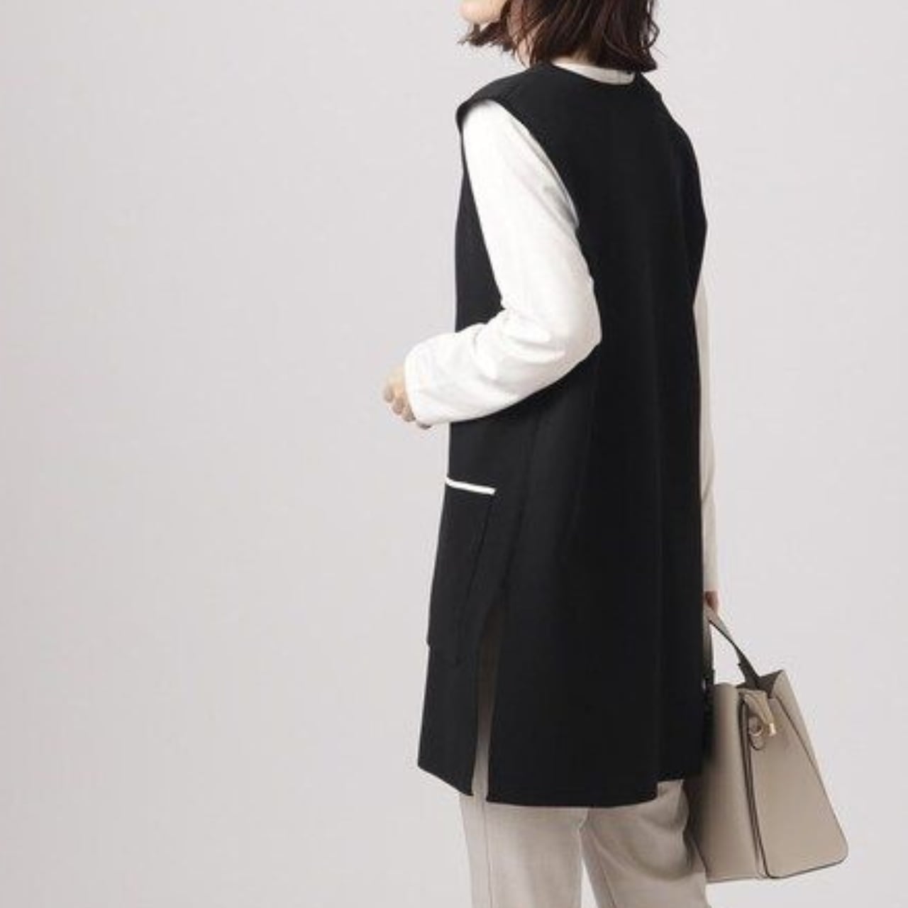 ミディ丈なので、スカートやパンツスタイルにも合わせやすく、様々なシーンで活躍します。