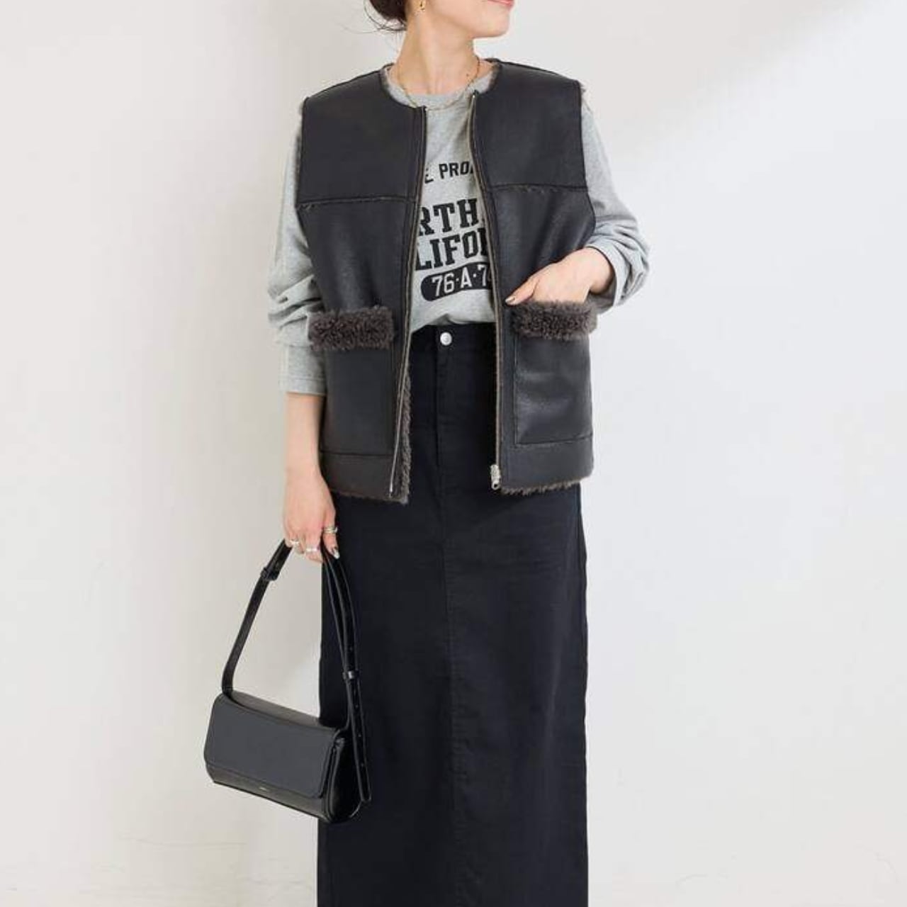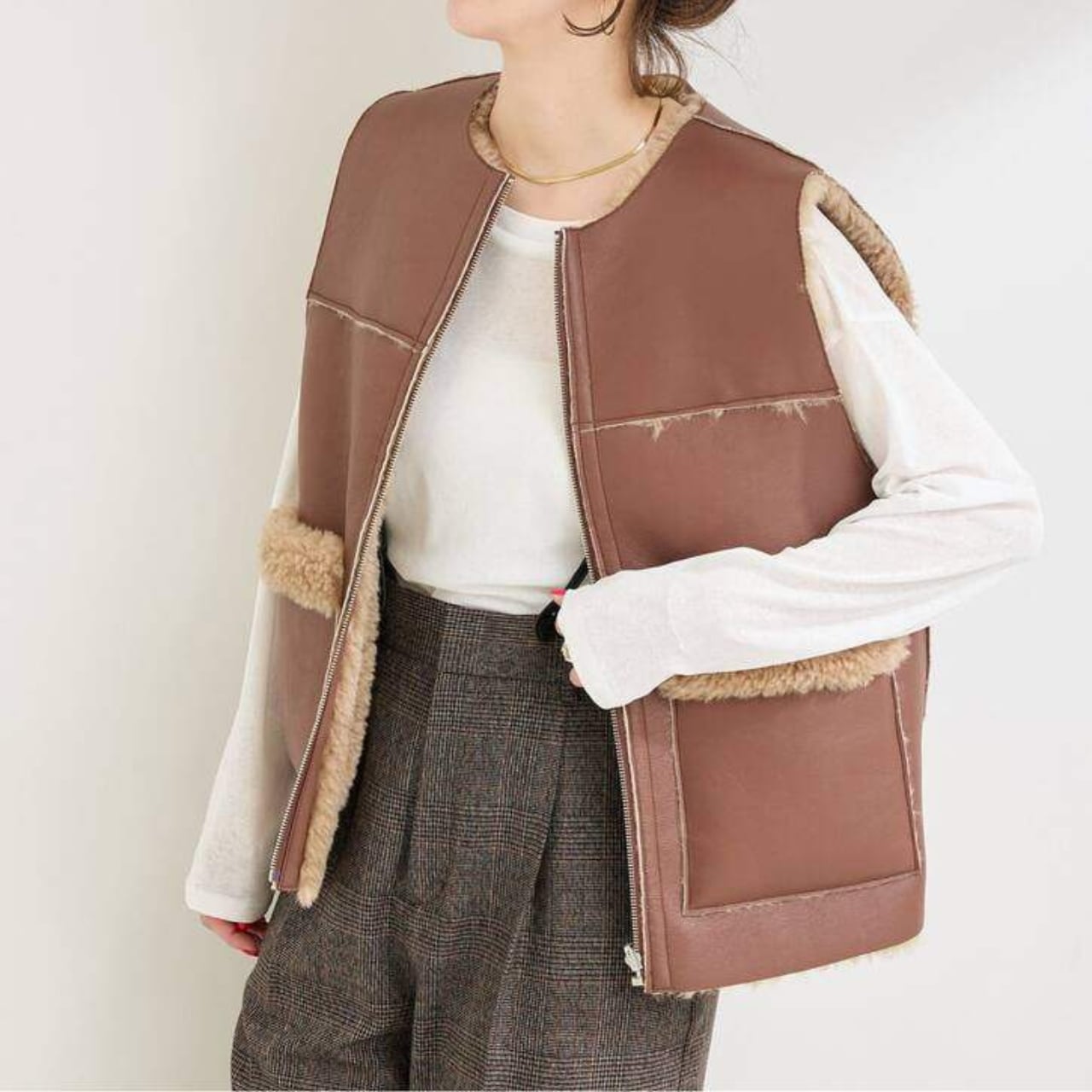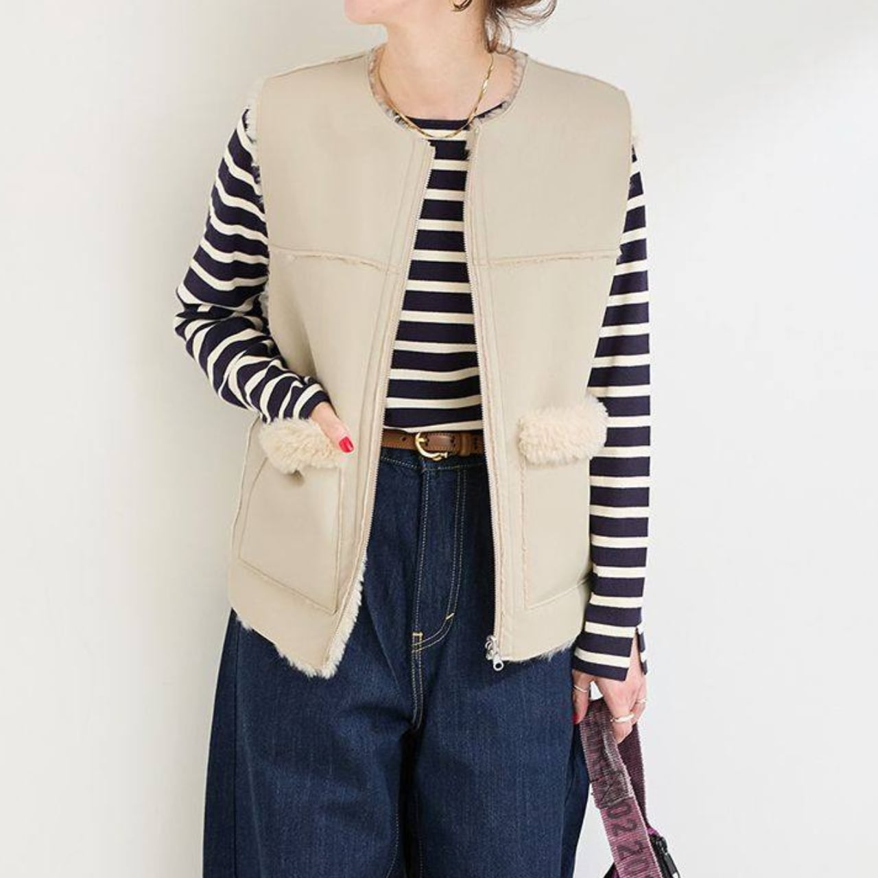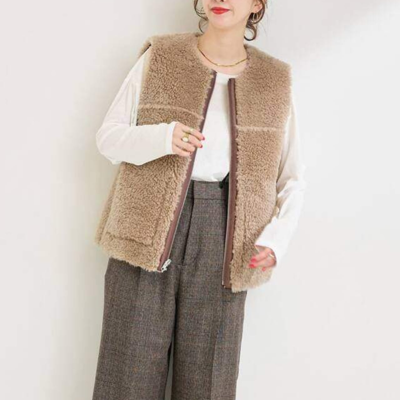 ジップアップ 腰丈2WAY ボア ベスト / 00052