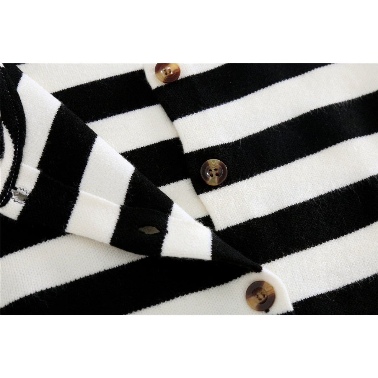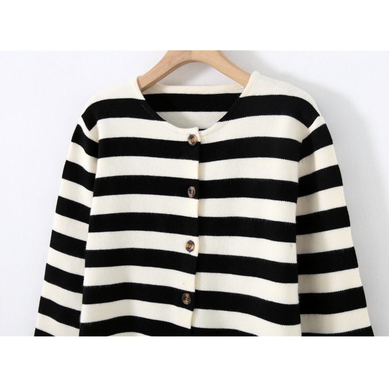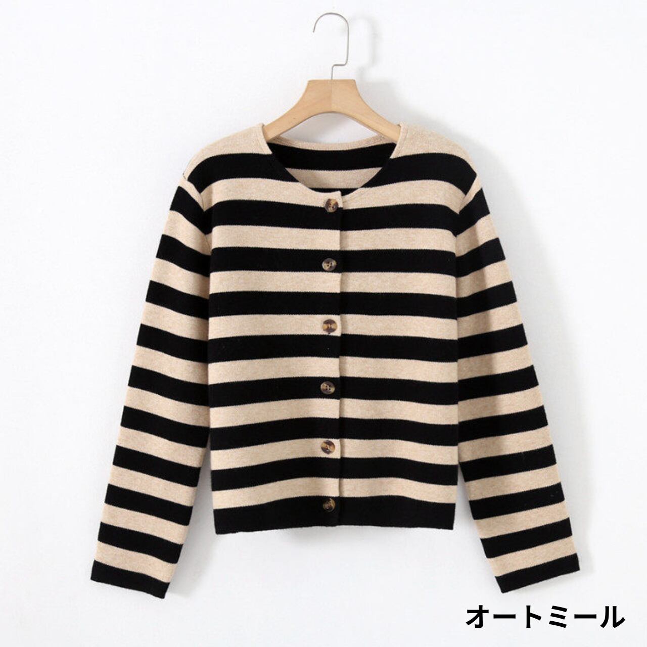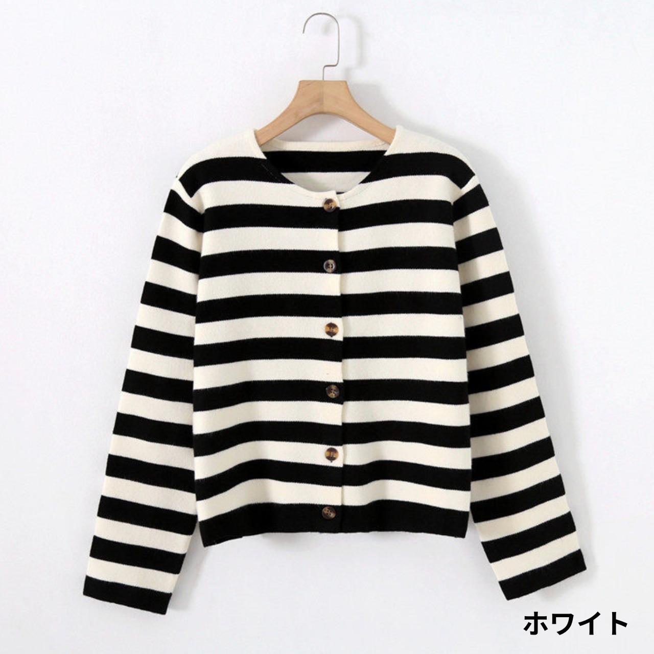 ボーダー柄 ボタンフロント 長袖 ニットカーディガン / 00053