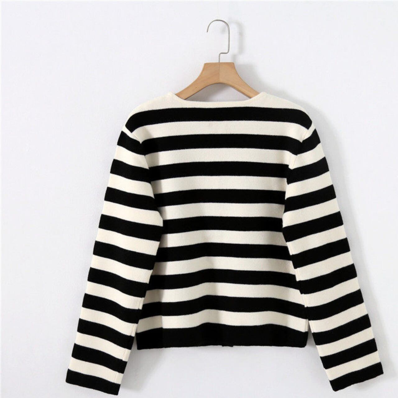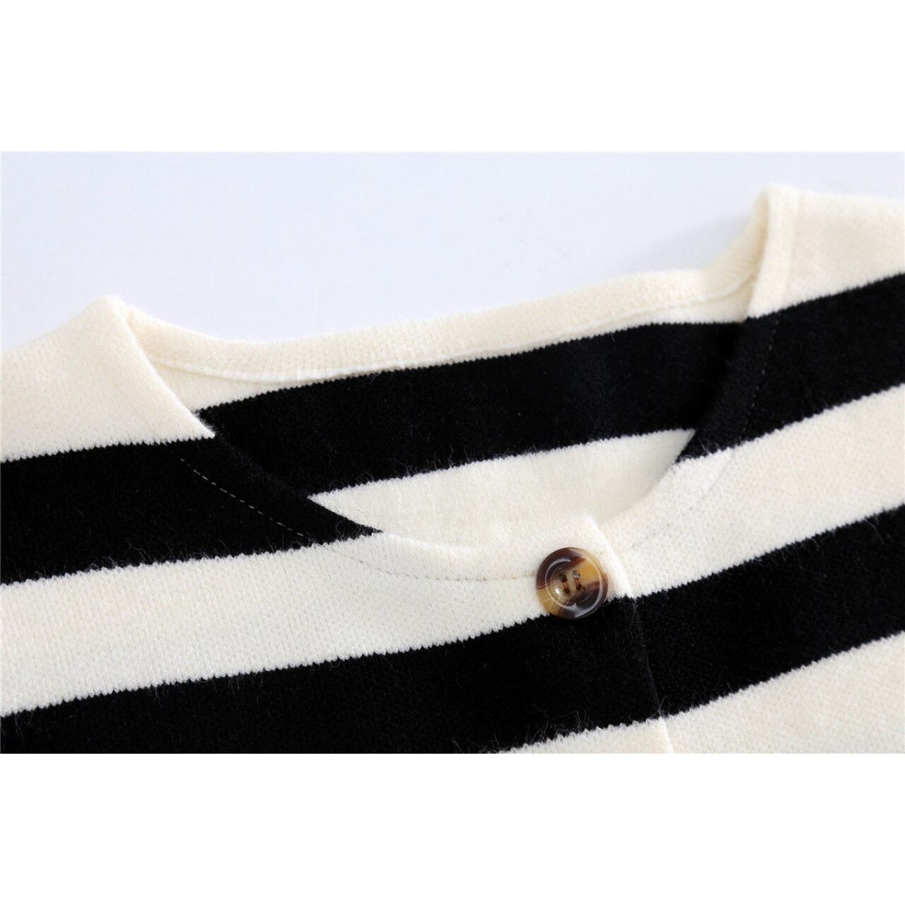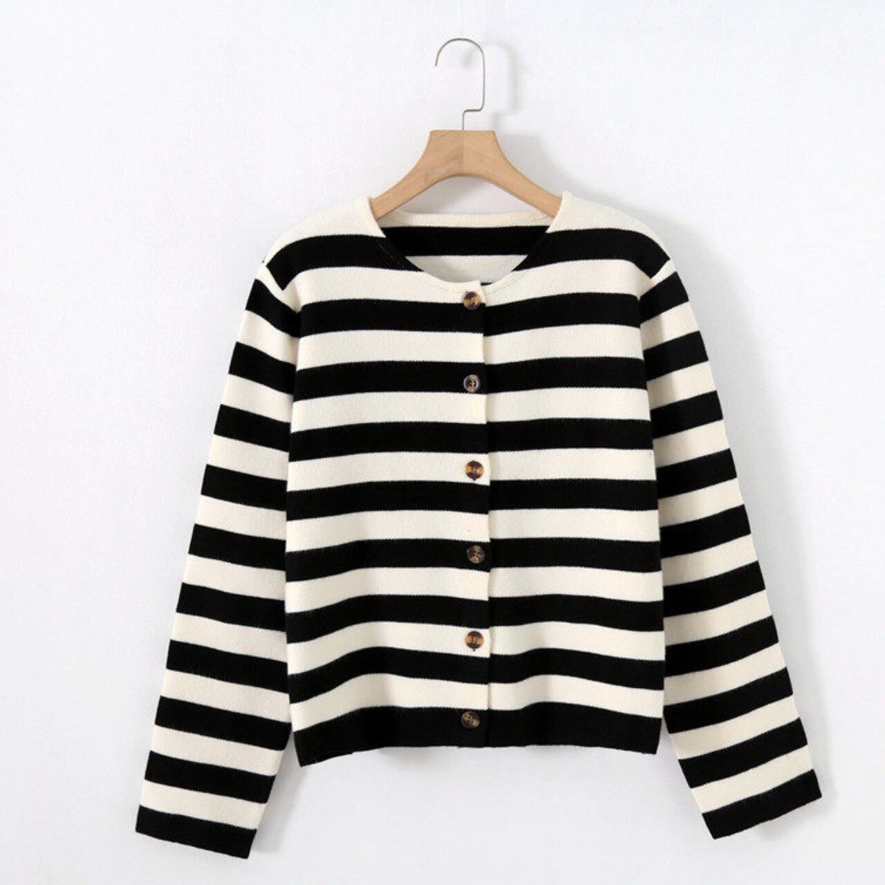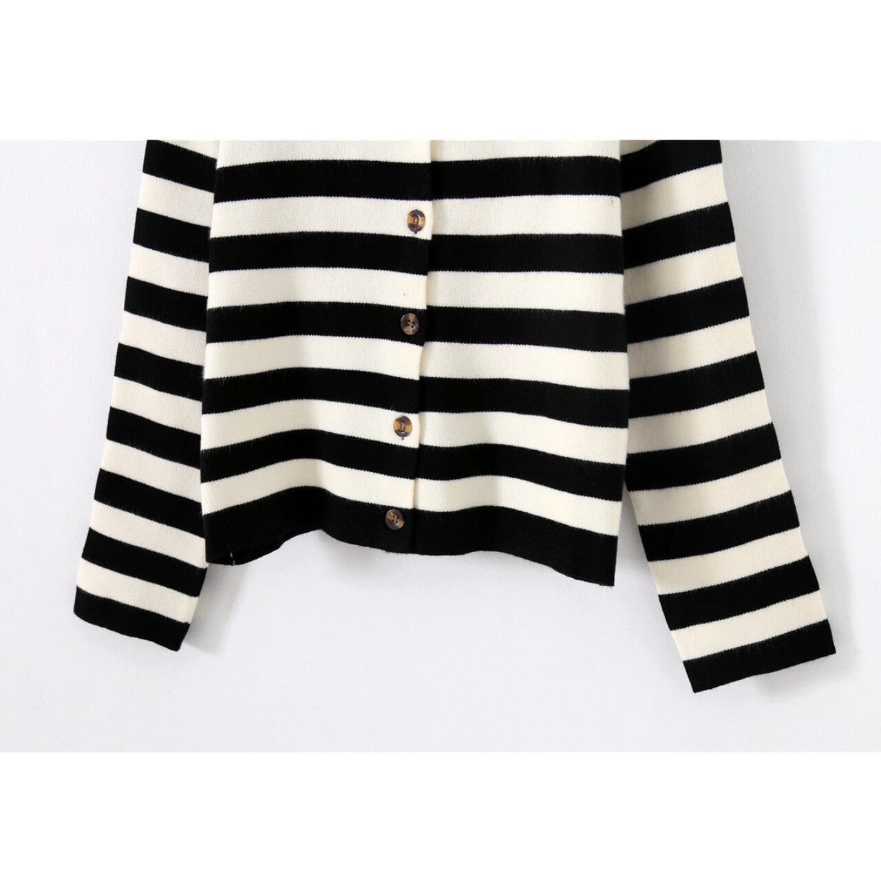 ボーダー柄 ボタンフロント 長袖 ニットカーディガン / 00053