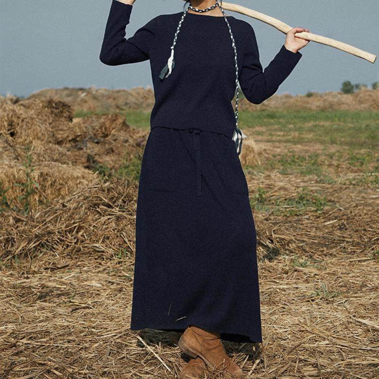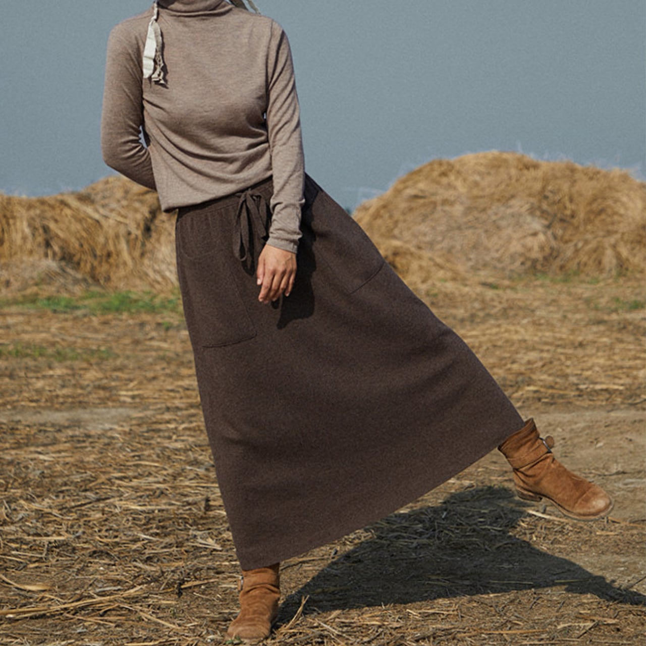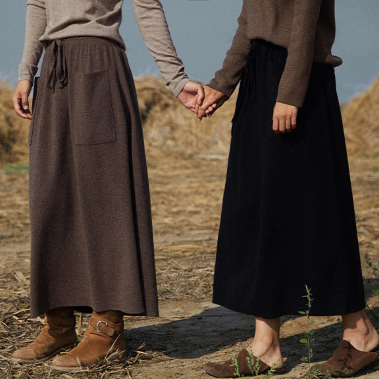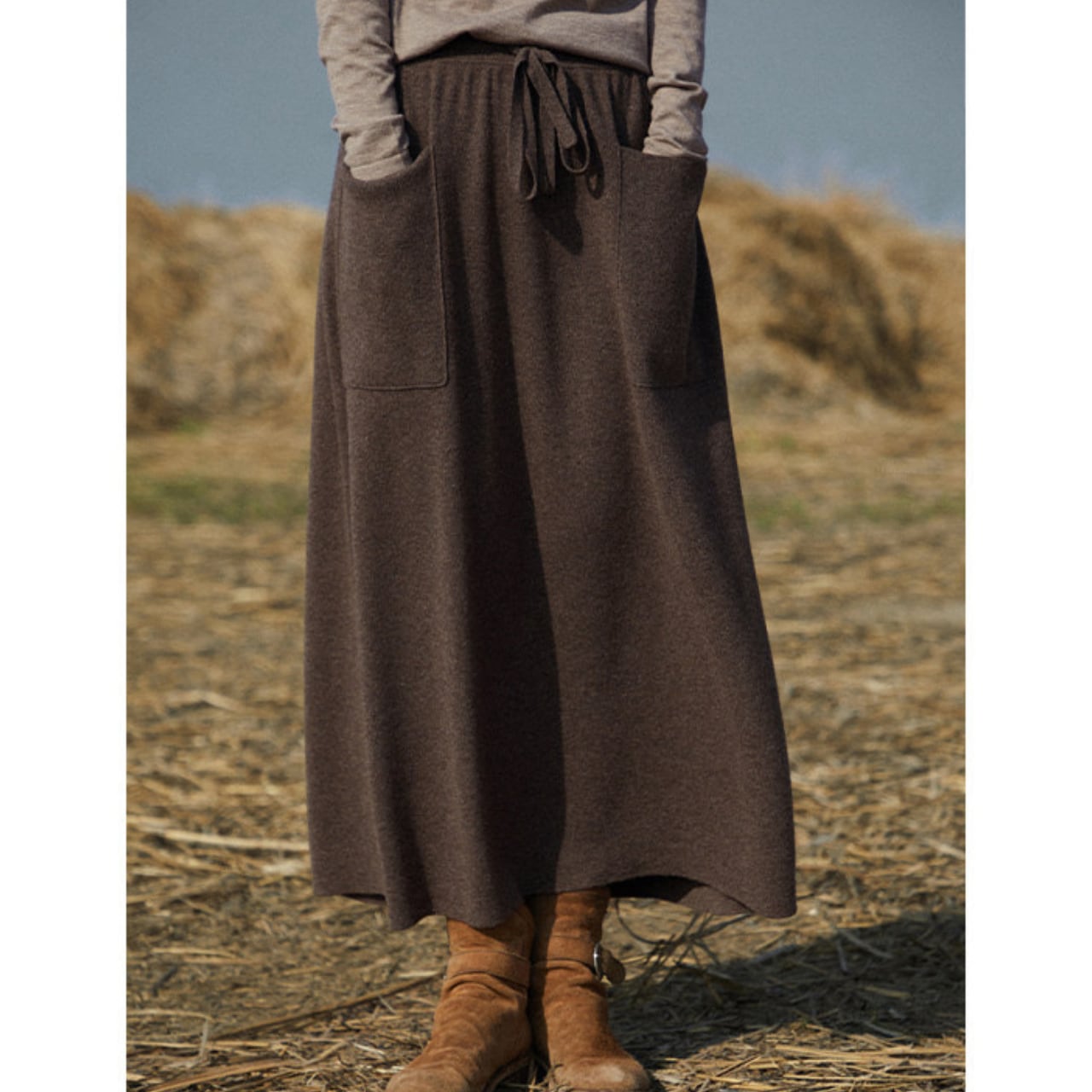 ドローストリング パッチポケット ミモレ丈 スカート / 00054