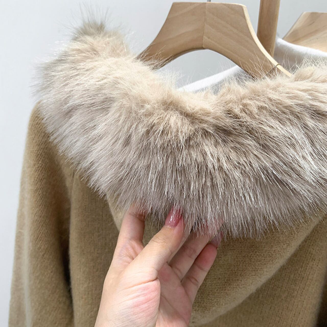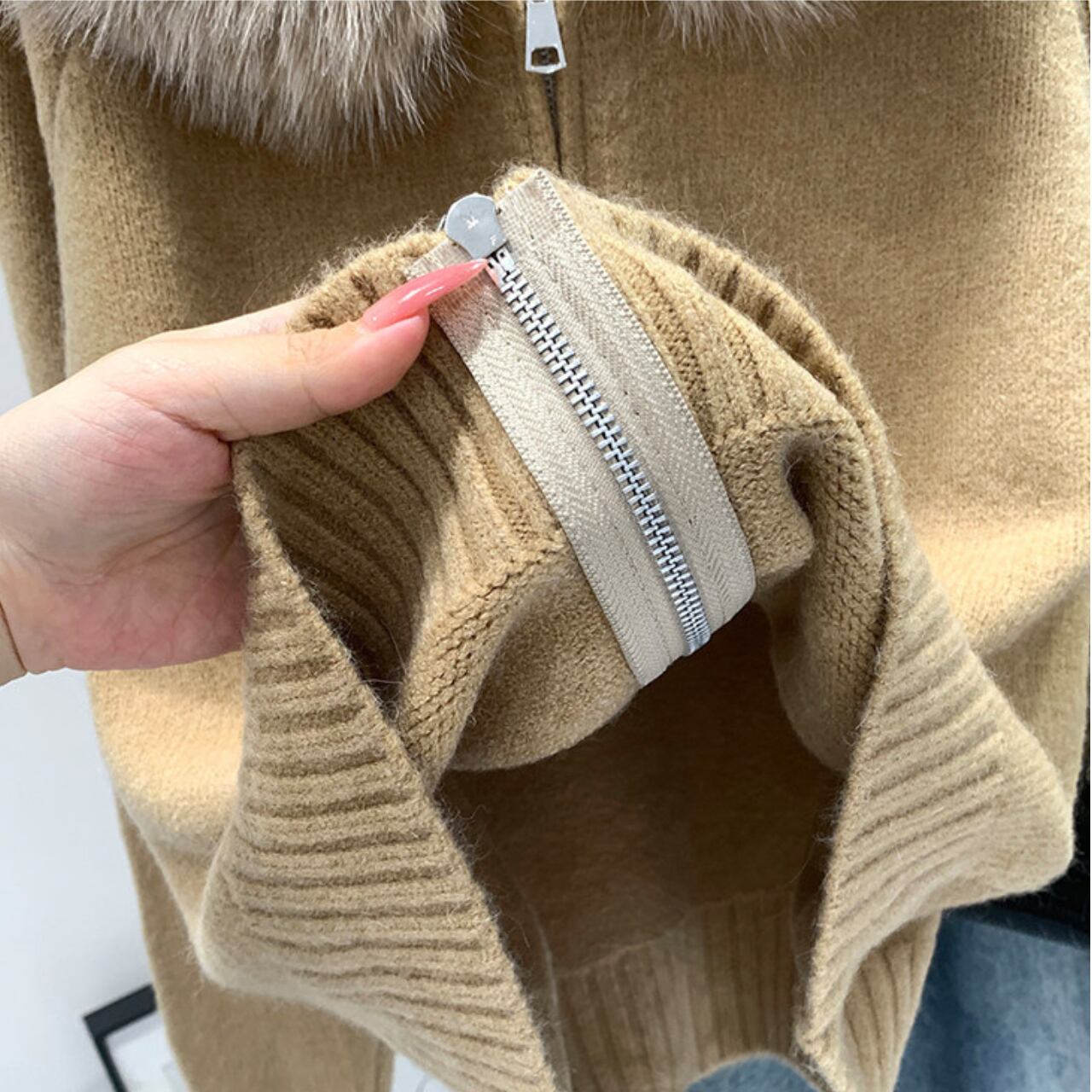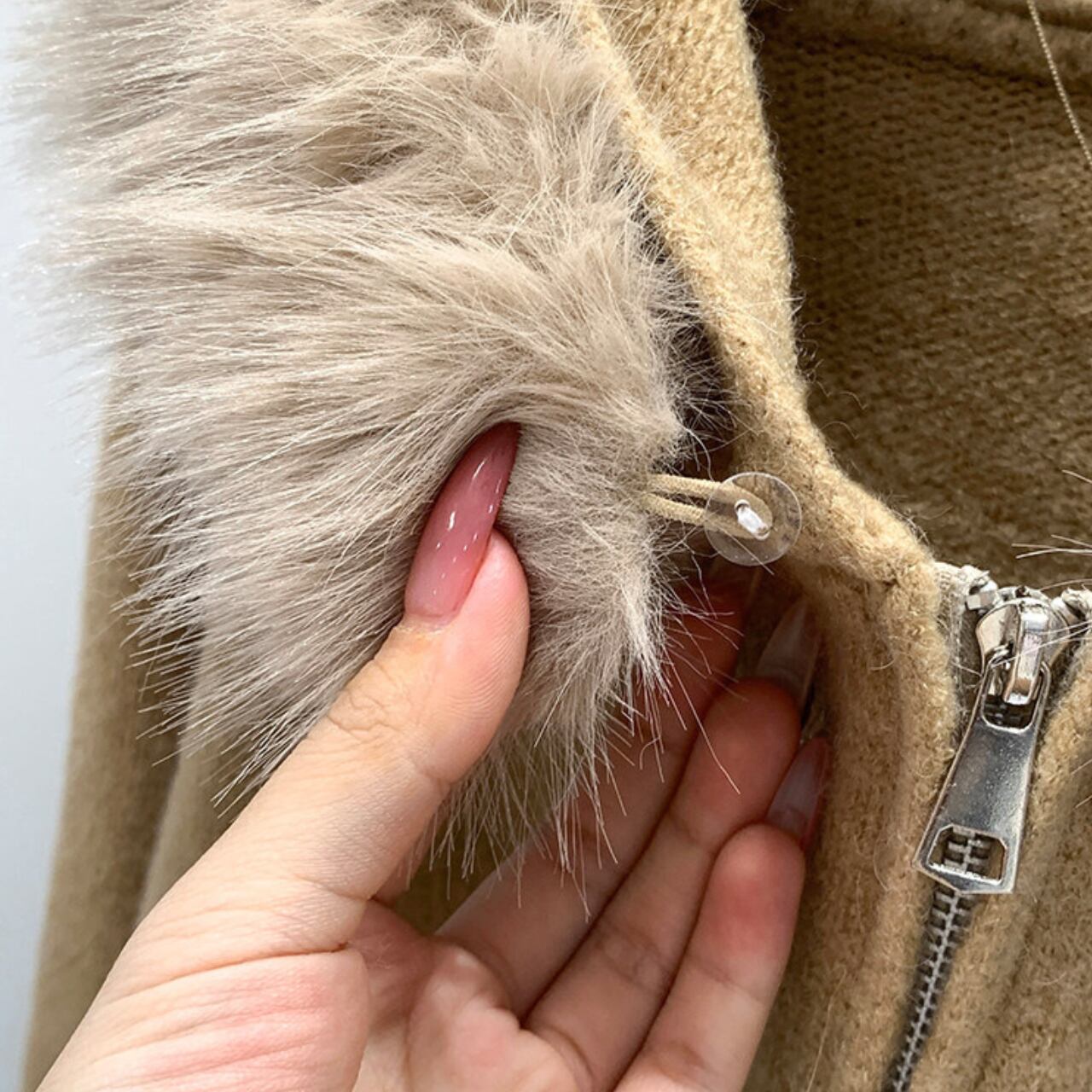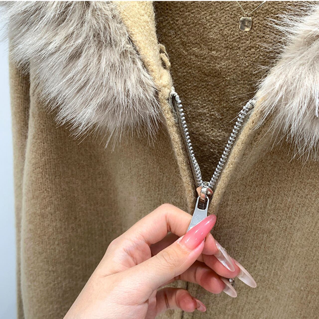 ファーカラー ジップアップ 長袖 ニットカーディガン / 00057