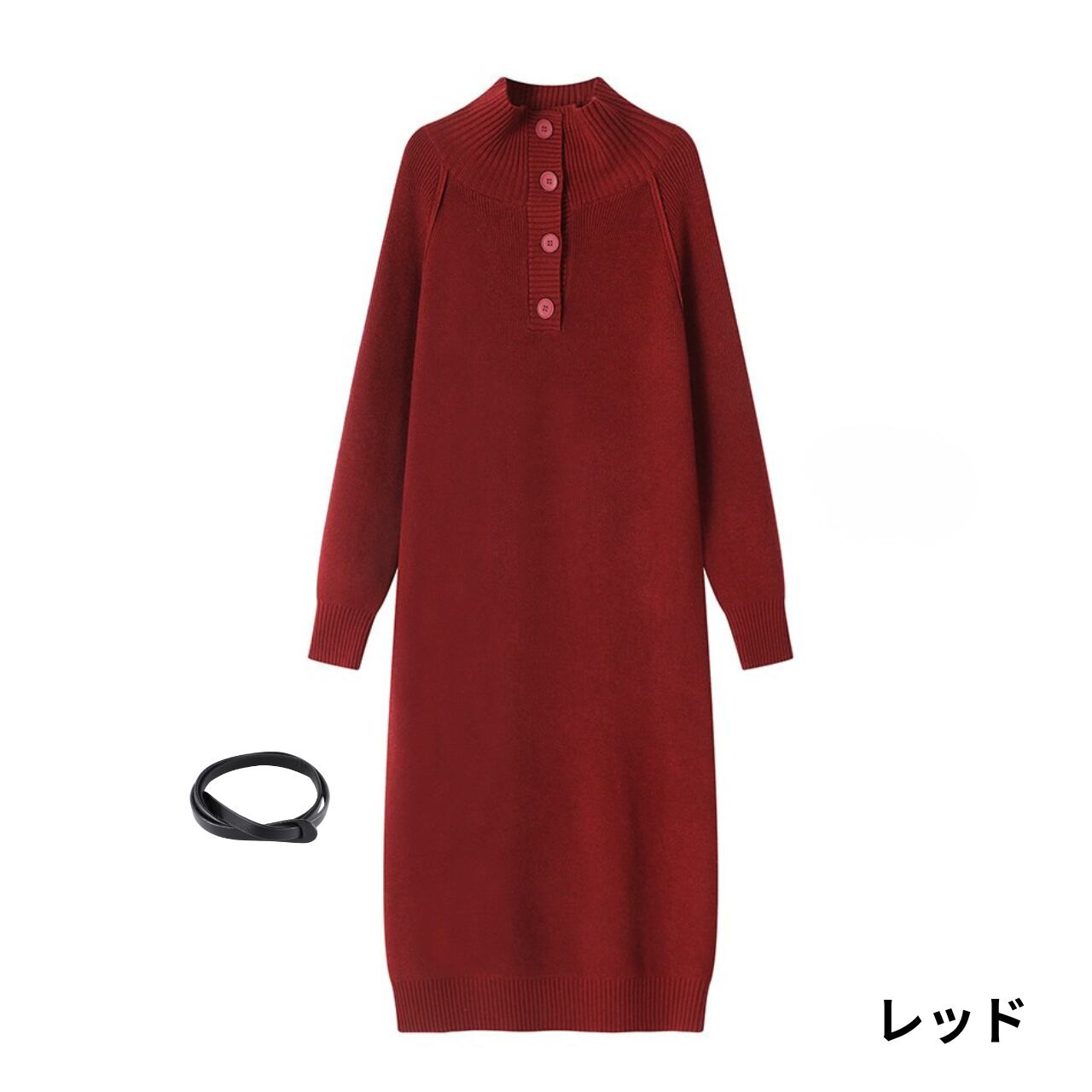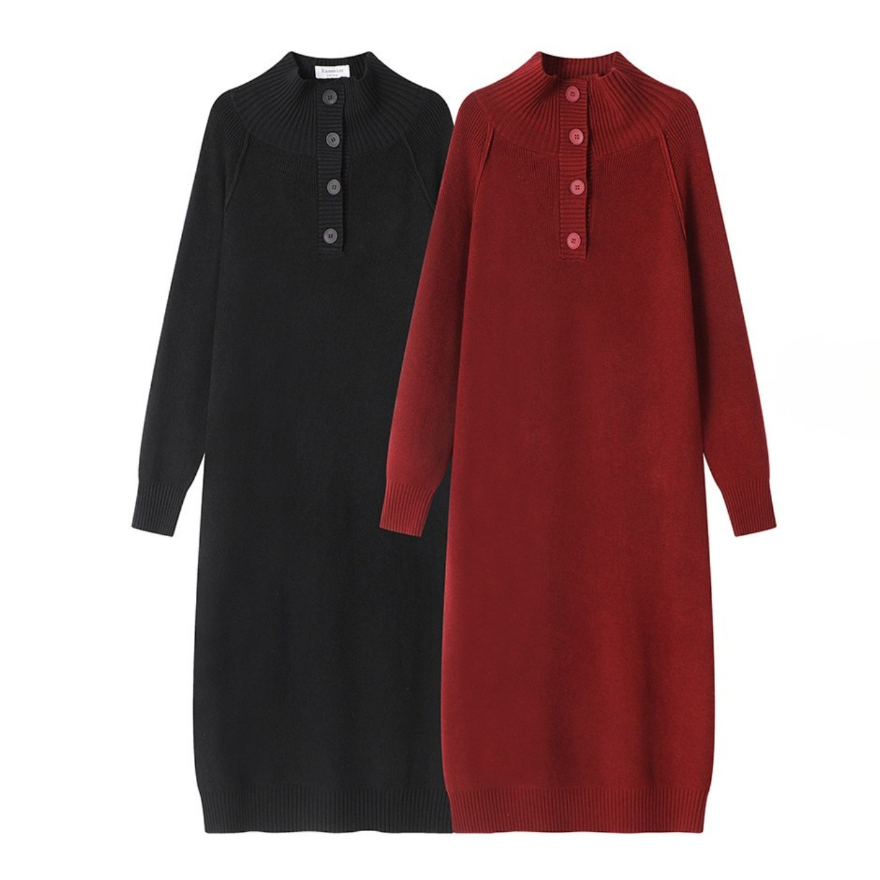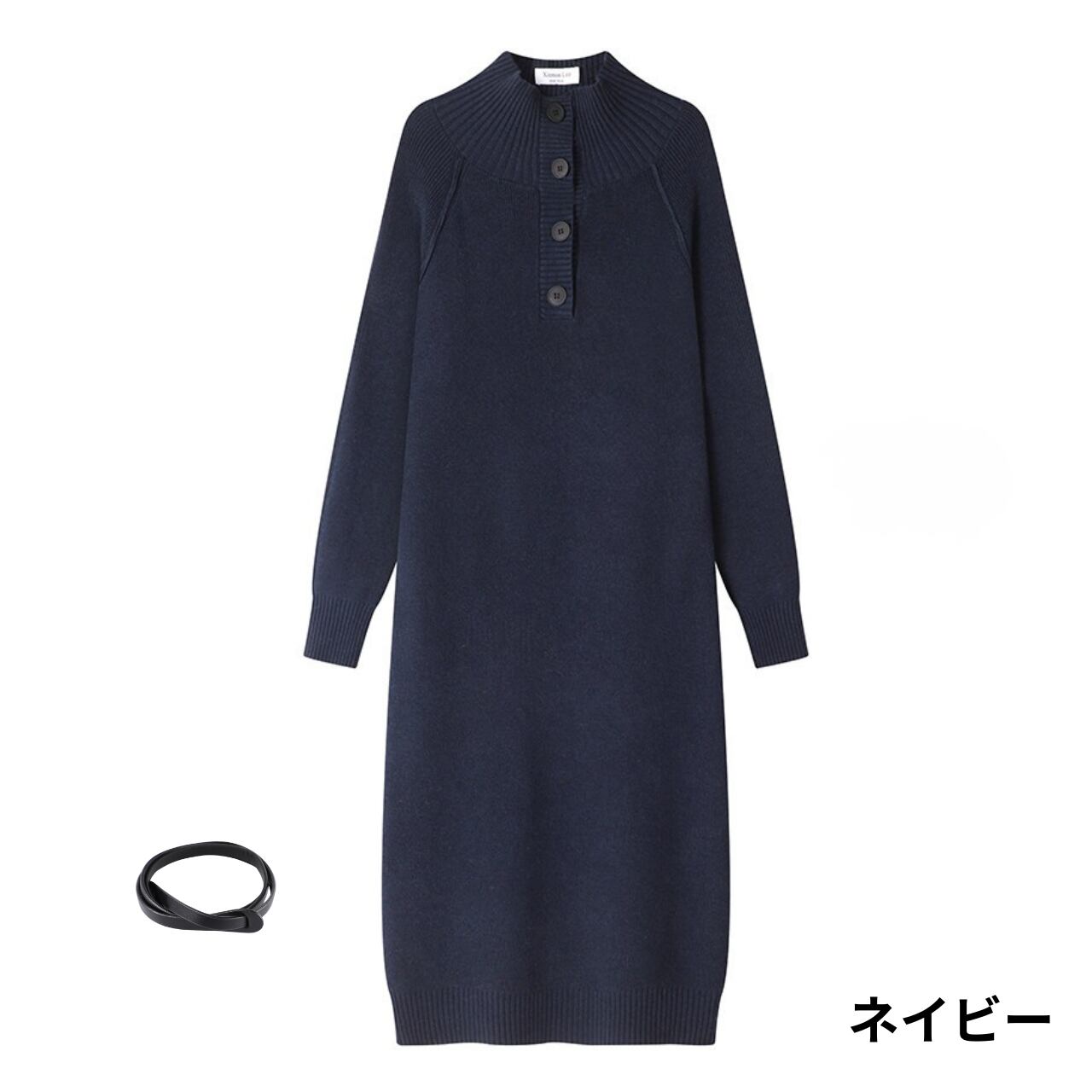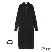 ボタンフロント 長袖 ストレート ニットワンピース / 00058