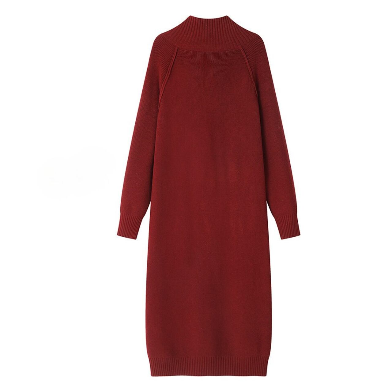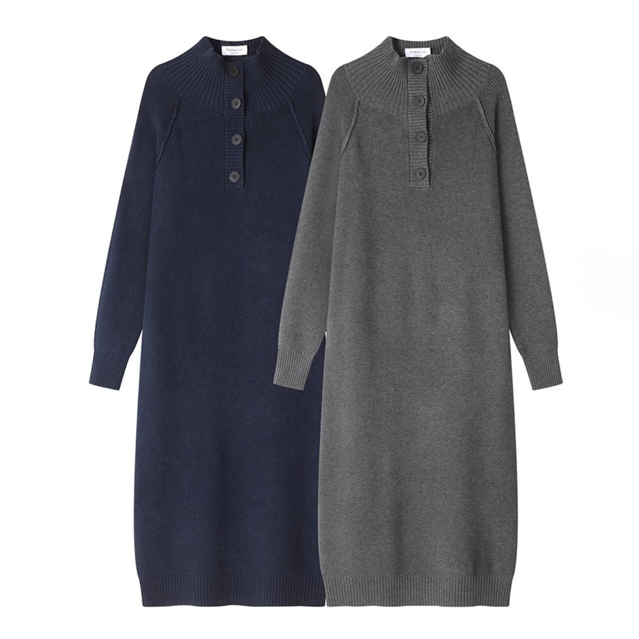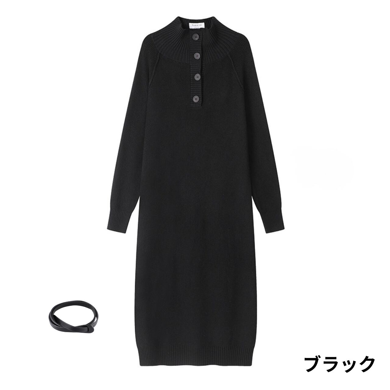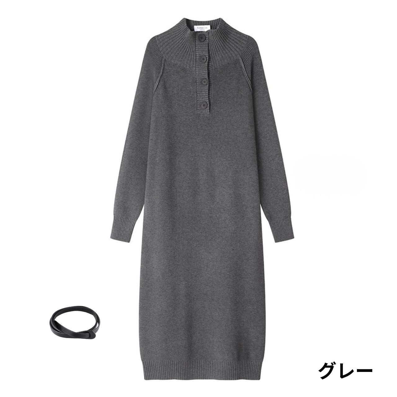 ボタンフロント 長袖 ストレート ニットワンピース / 00058