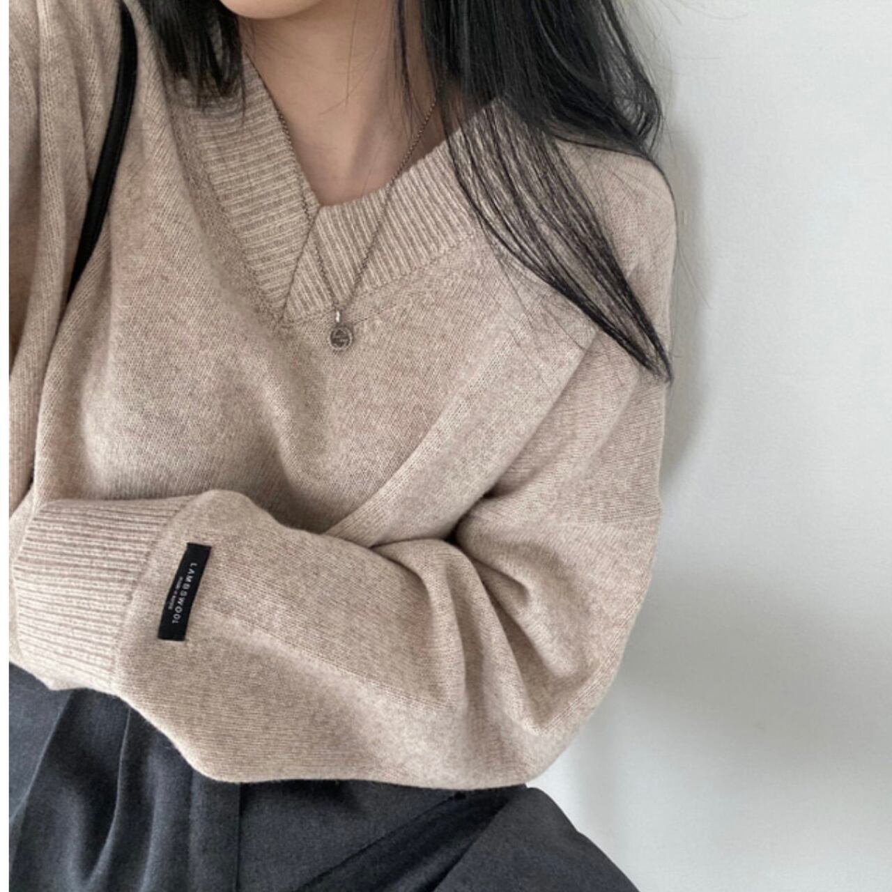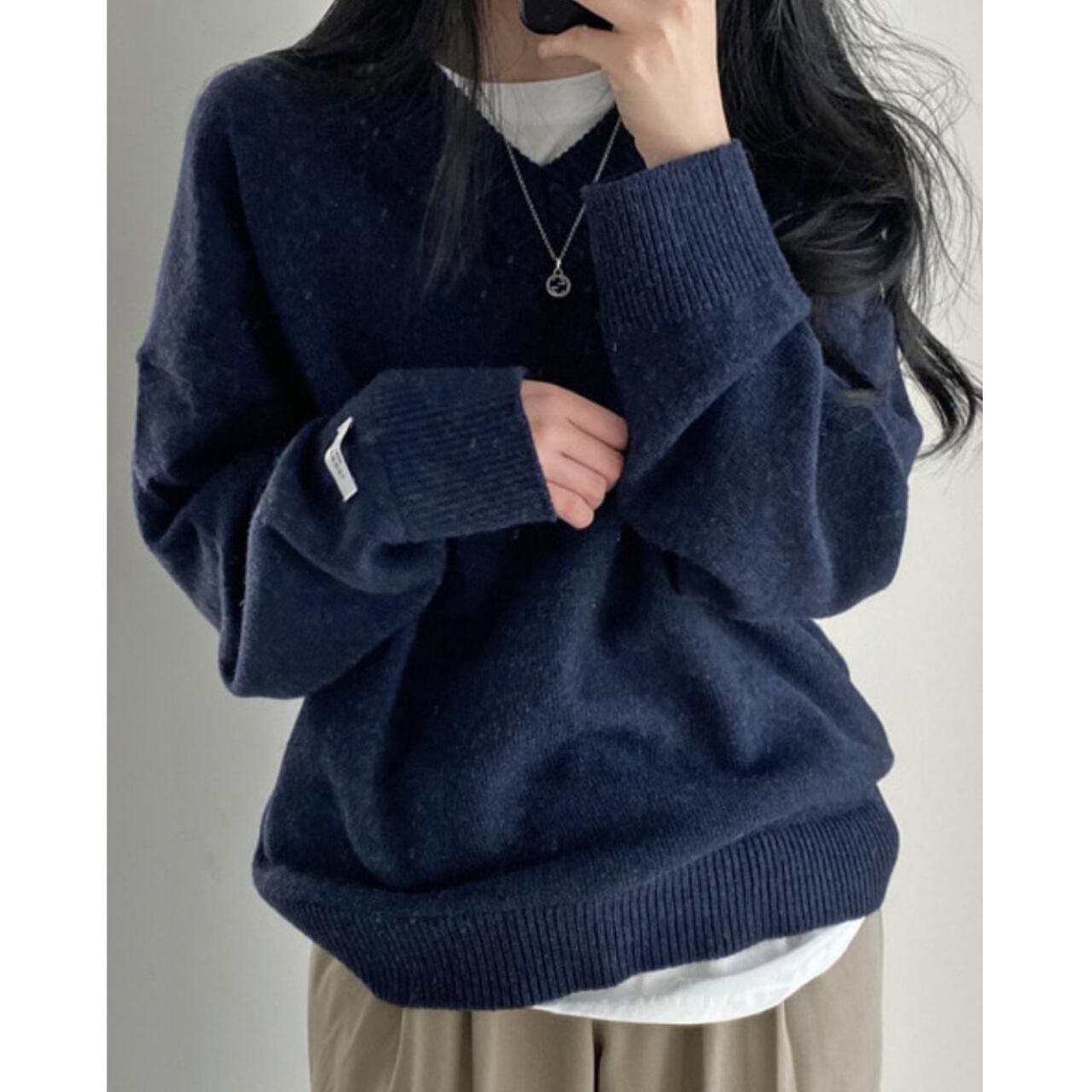 深めのVネックが特徴のニットプルオーバー。