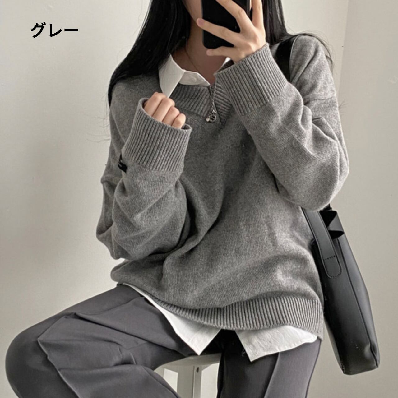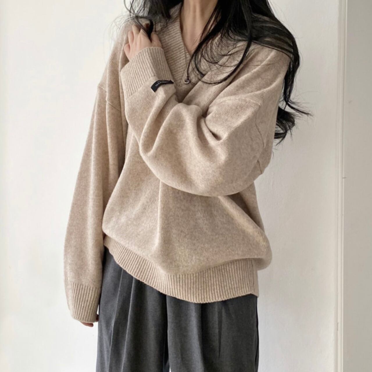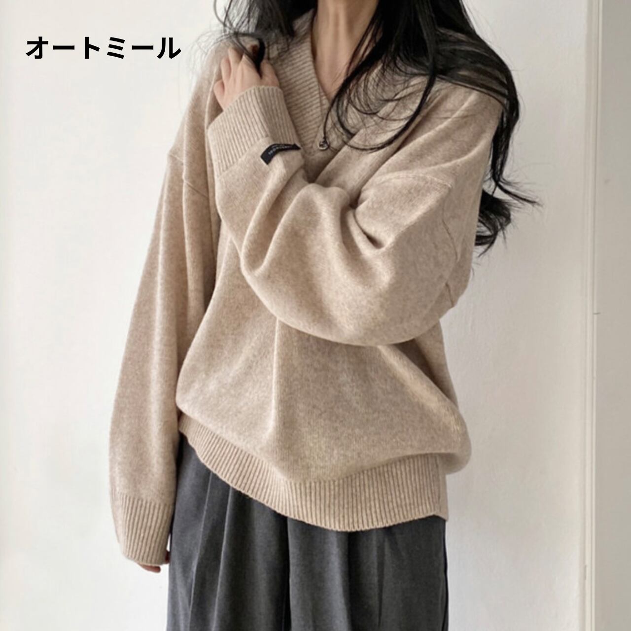 長袖 Vネック ニット プルオーバー / 00064