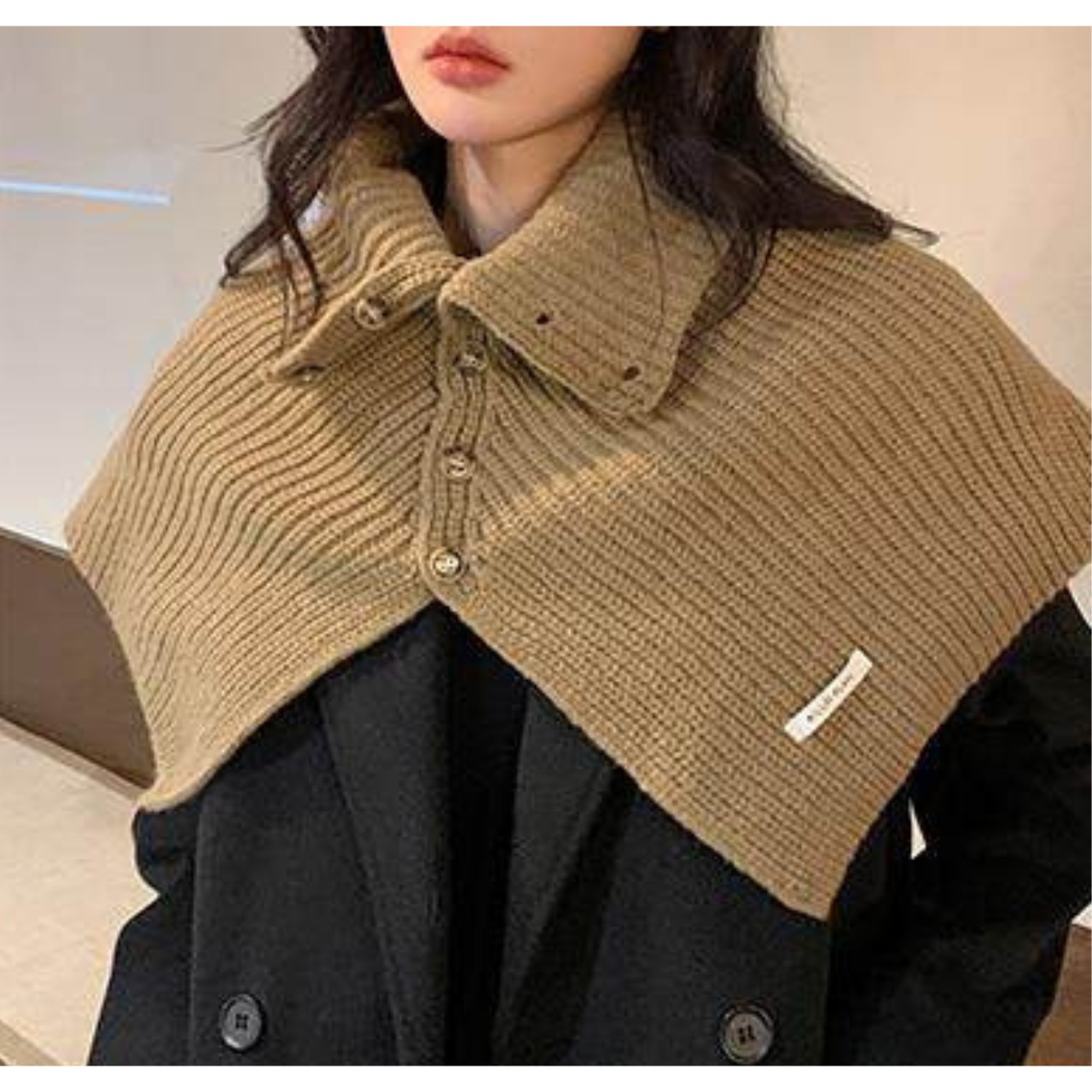 ボタン付き ハイネック ニットストール / 00076