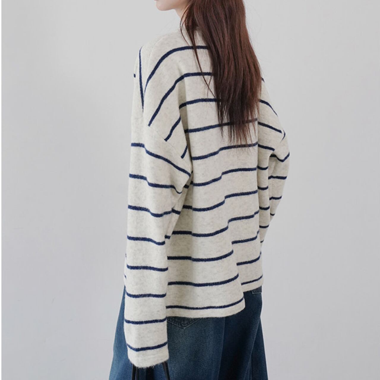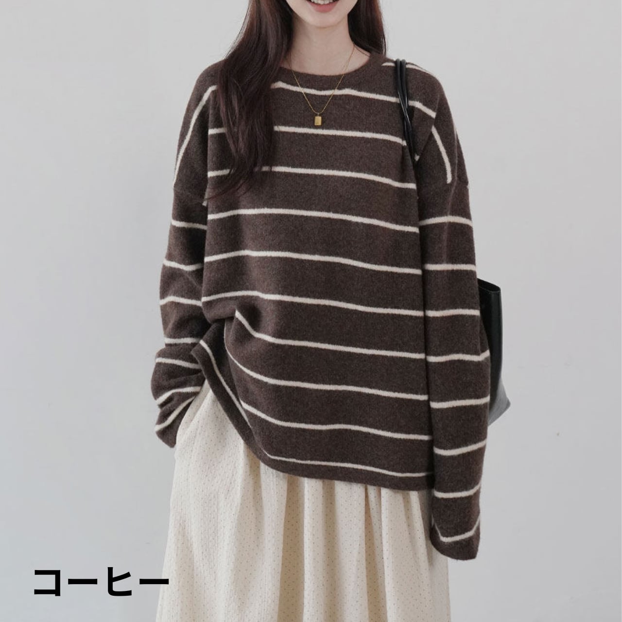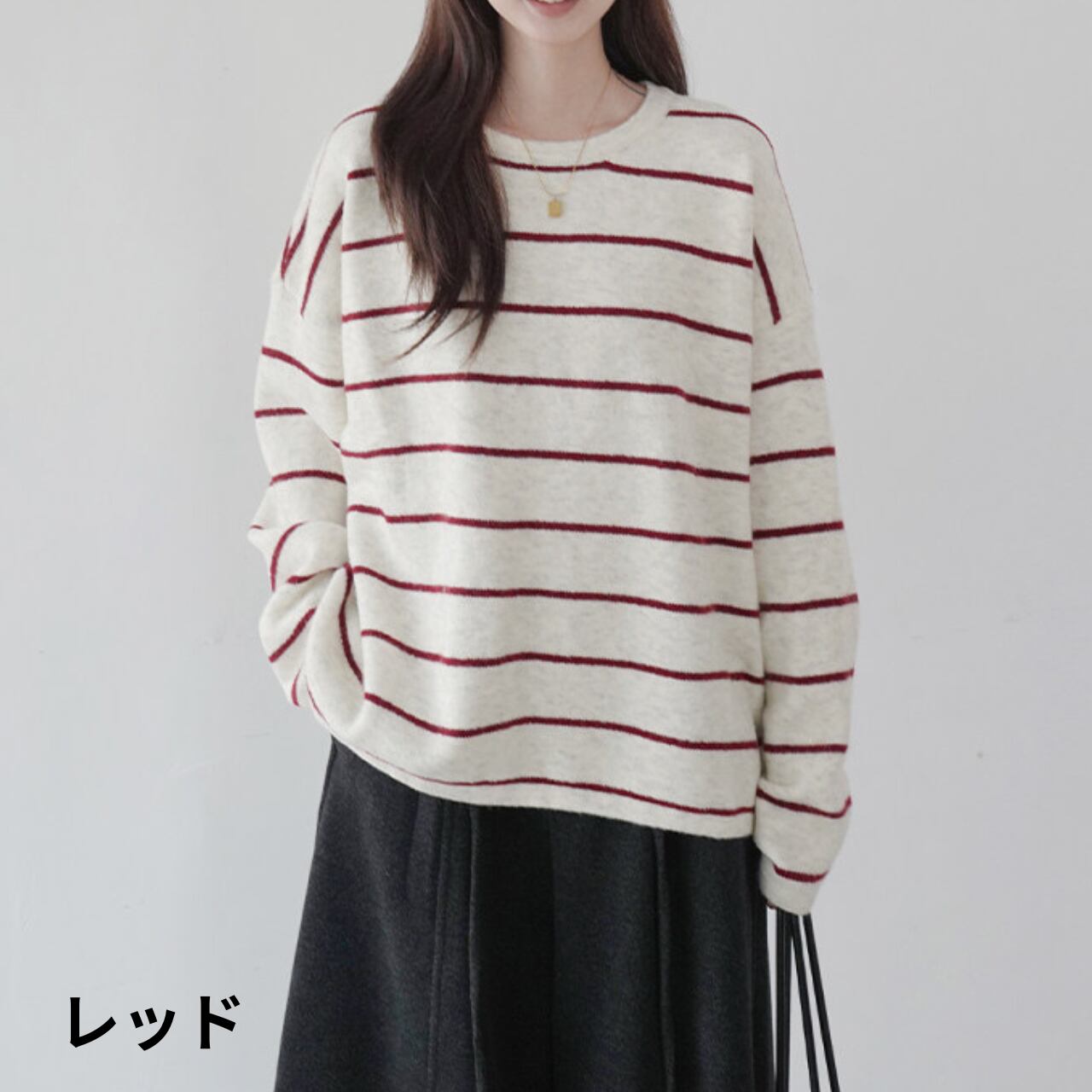 ボーダー柄 長袖 ヒップ丈 ニット / 00086