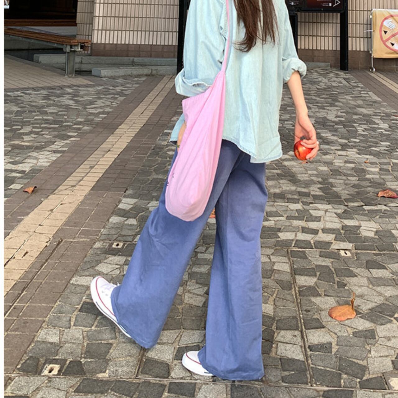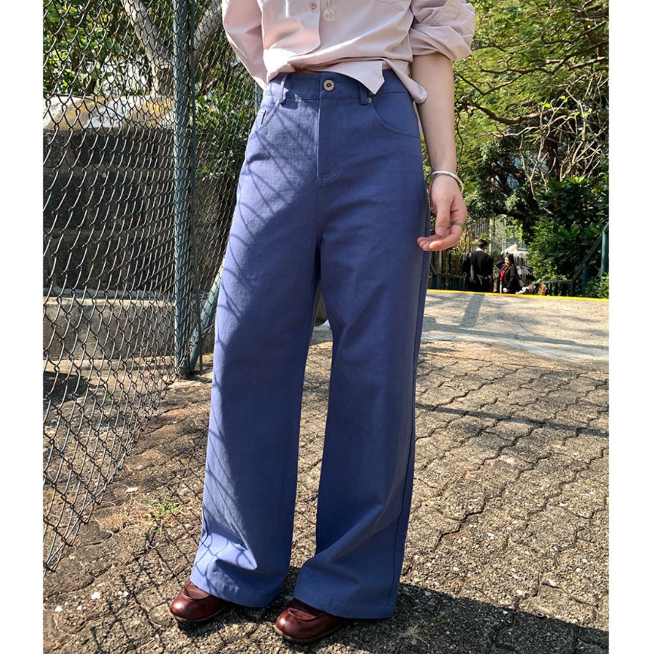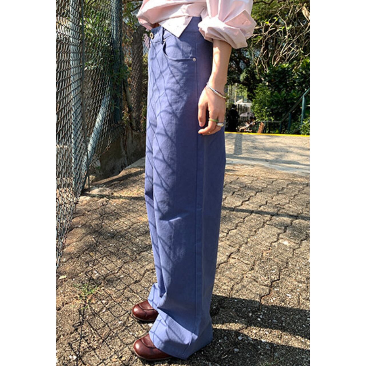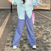 ワイド 無地 ストレート フルレングス パンツ / 00091