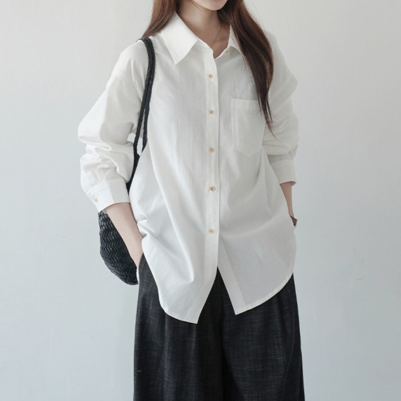 シャツカラー 長袖 オーバーサイズ シャツ / 00097