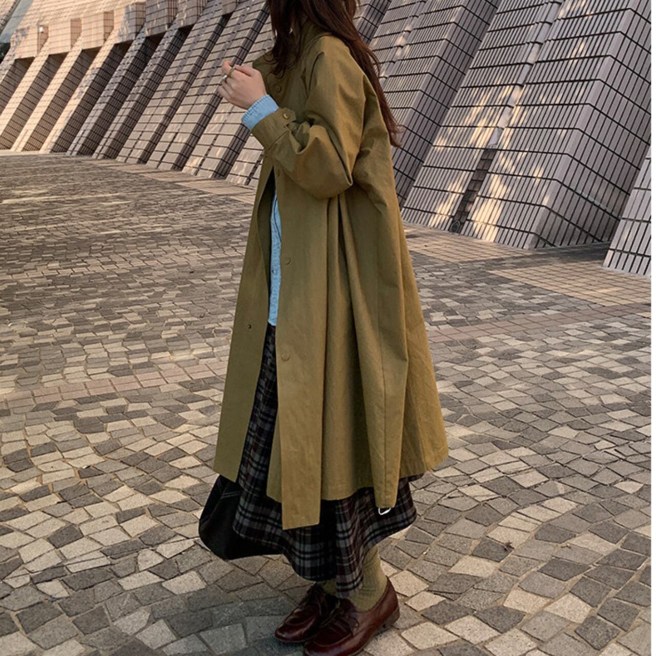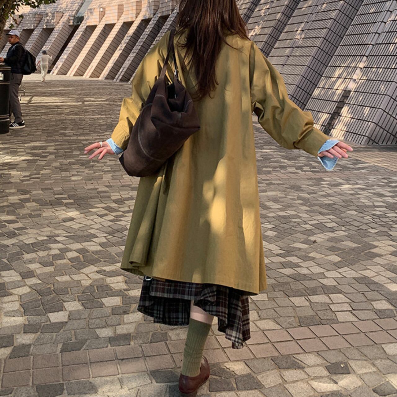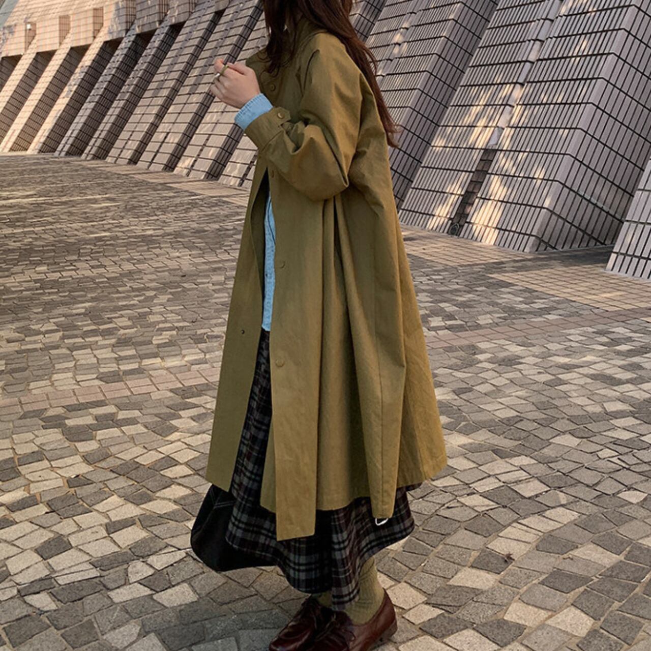 ロングシーズン活躍する長袖ロングコート。