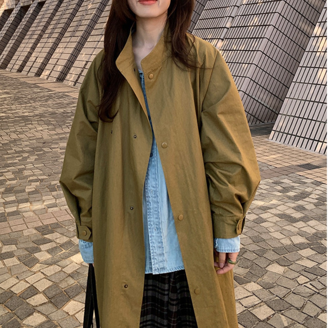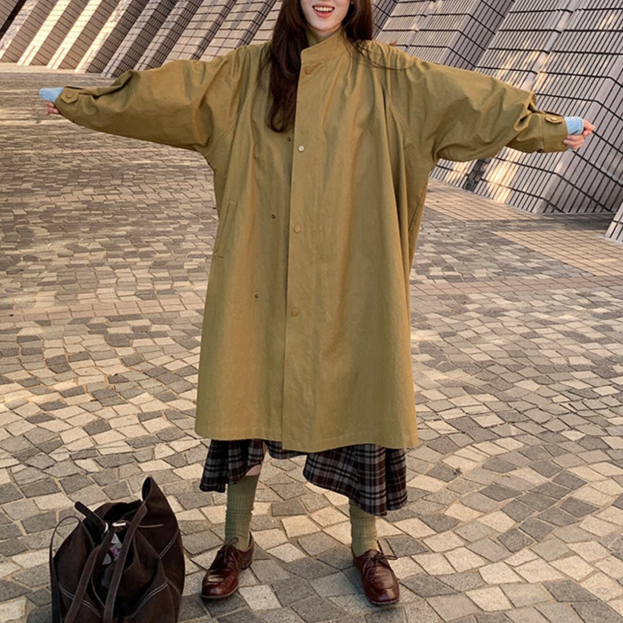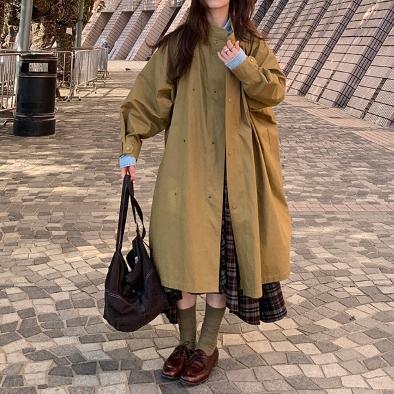 スタンドカラー ヒップ丈 長袖 ロングコート / 00098
