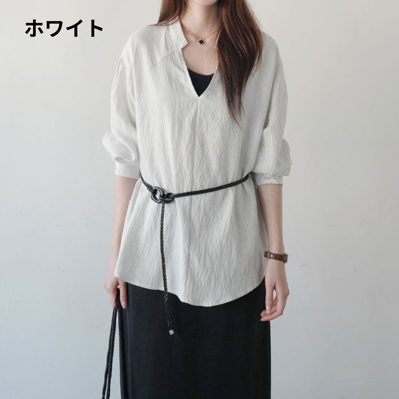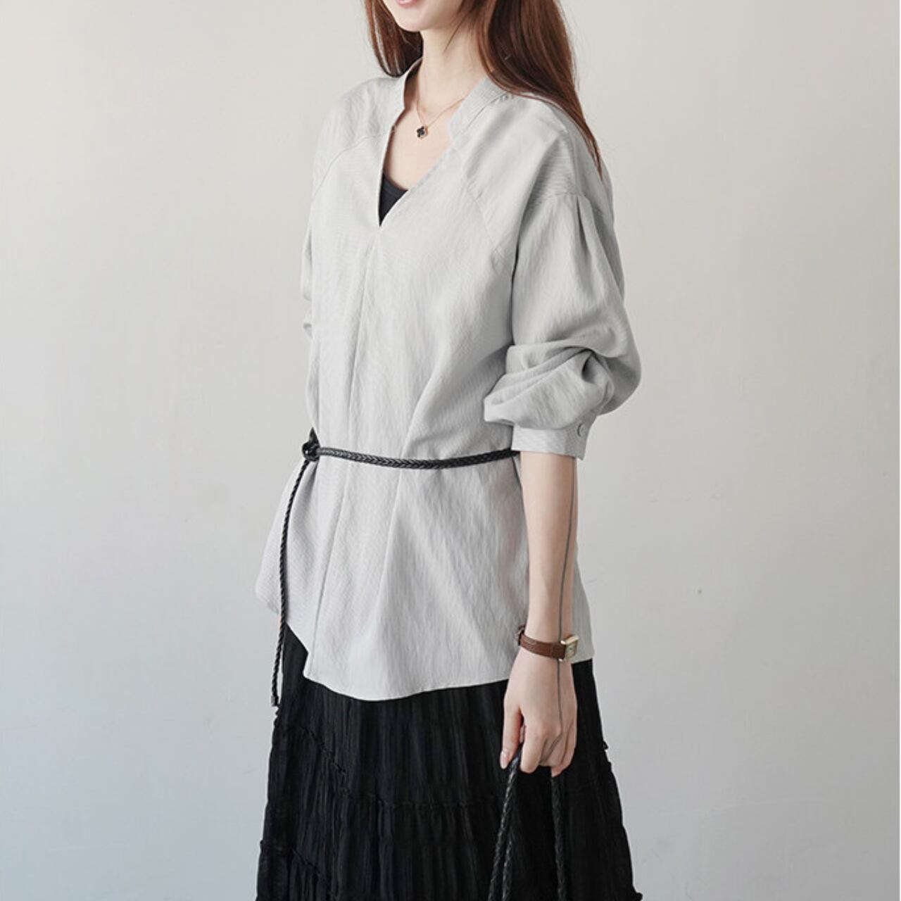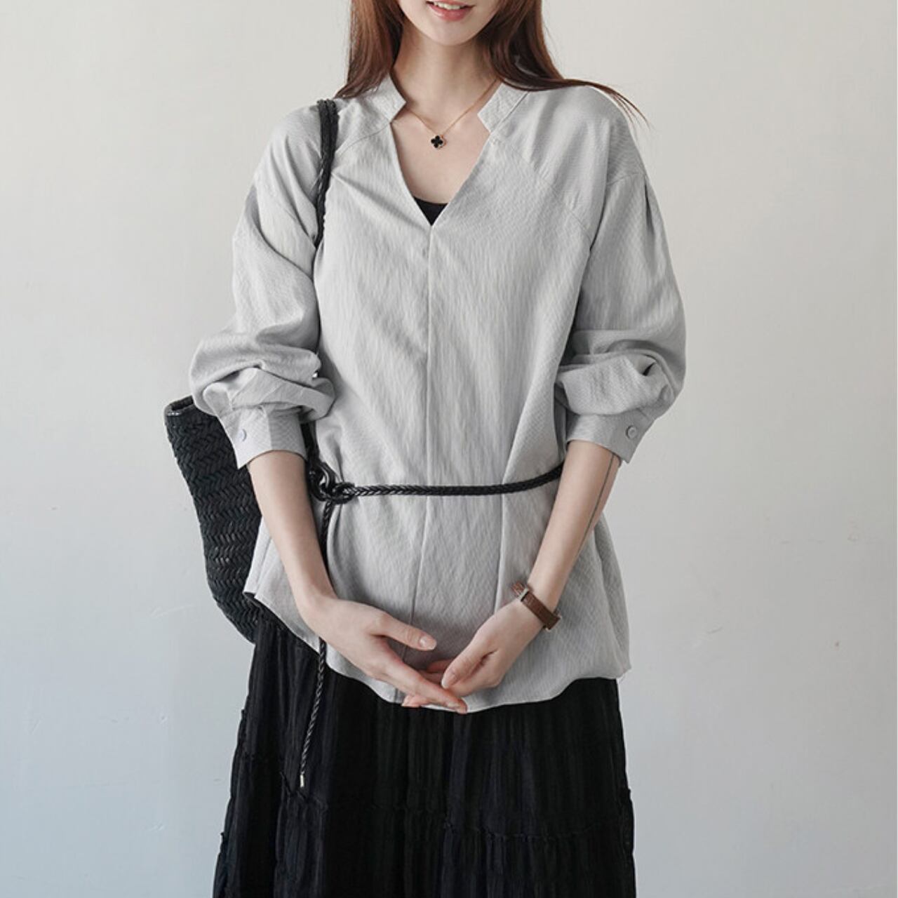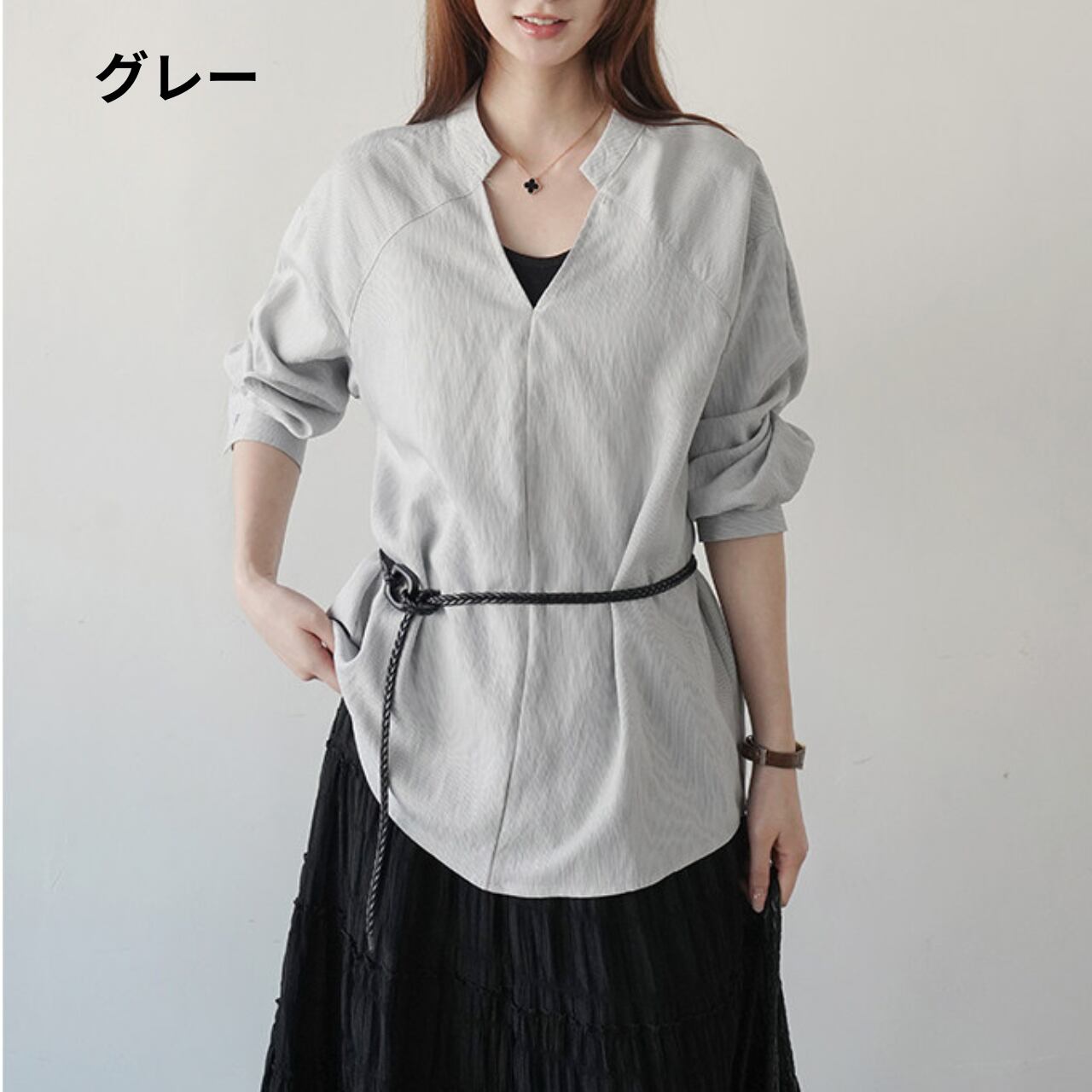 スキッパーネック 長袖 ヒップ丈 ブラウス / 00099