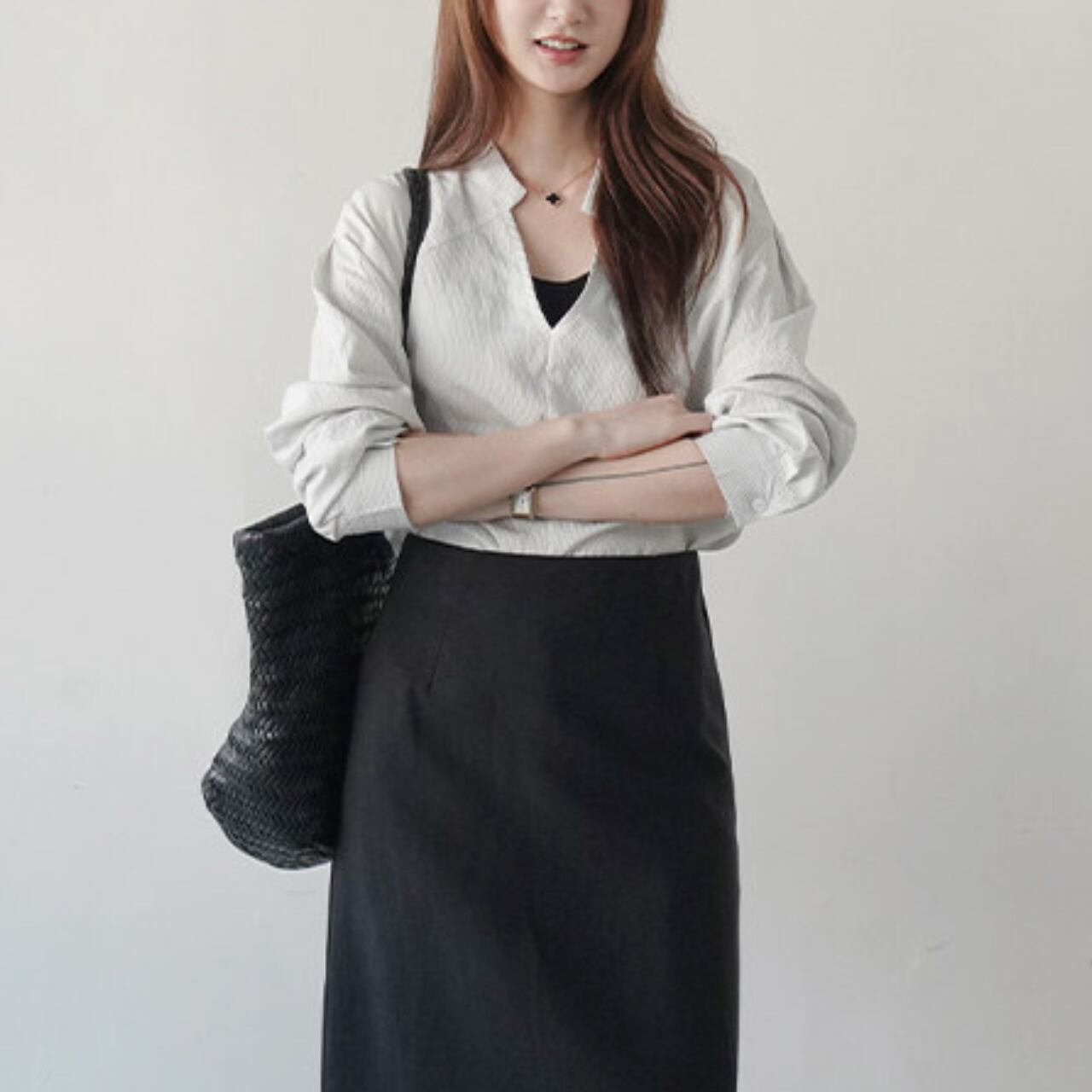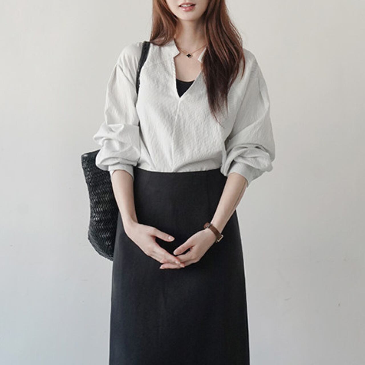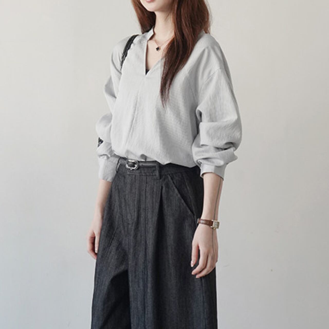 スキッパーネック 長袖 ヒップ丈 ブラウス / 00099
