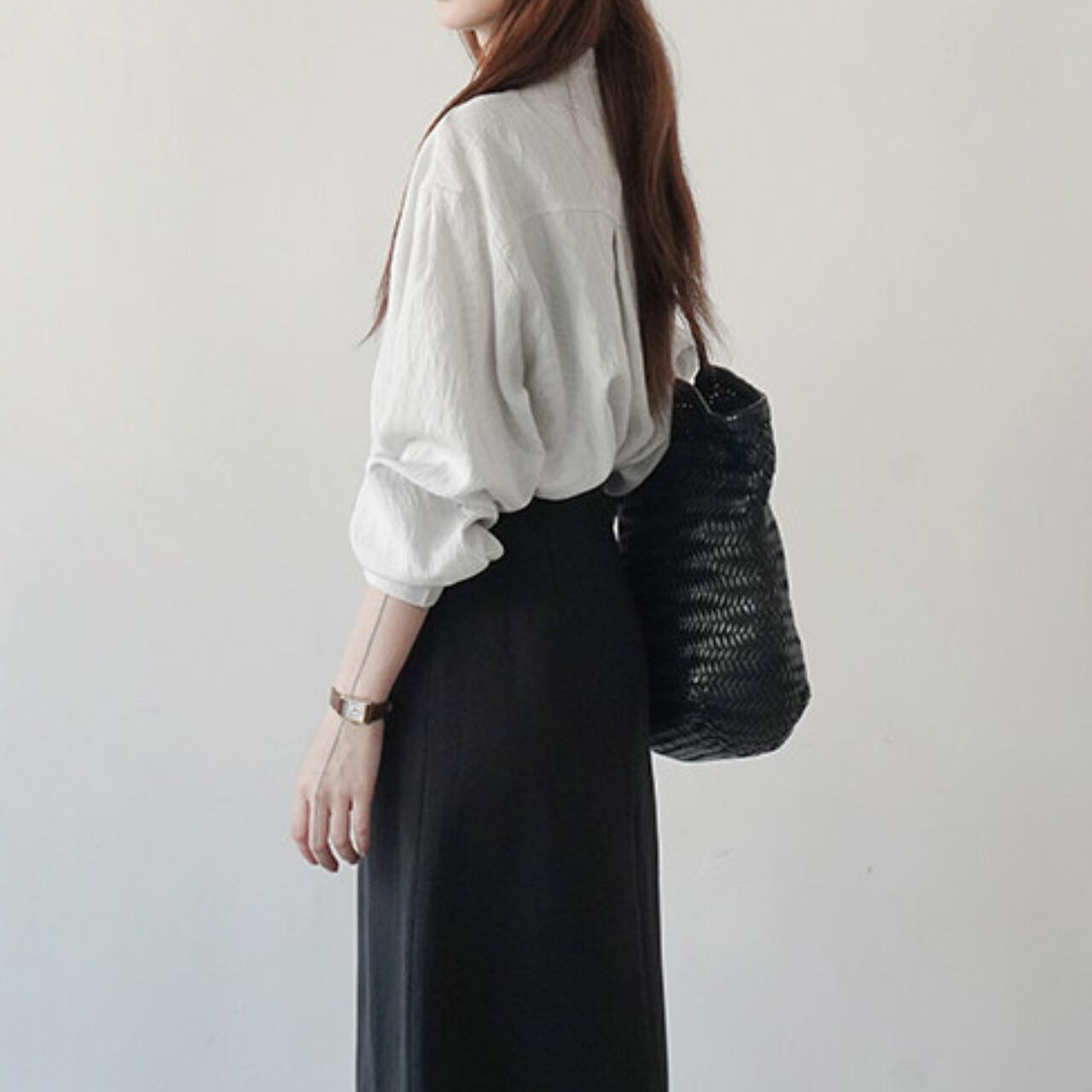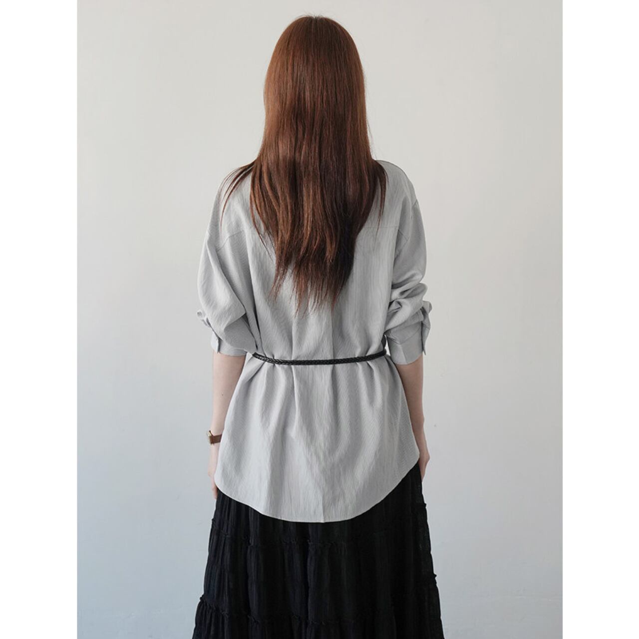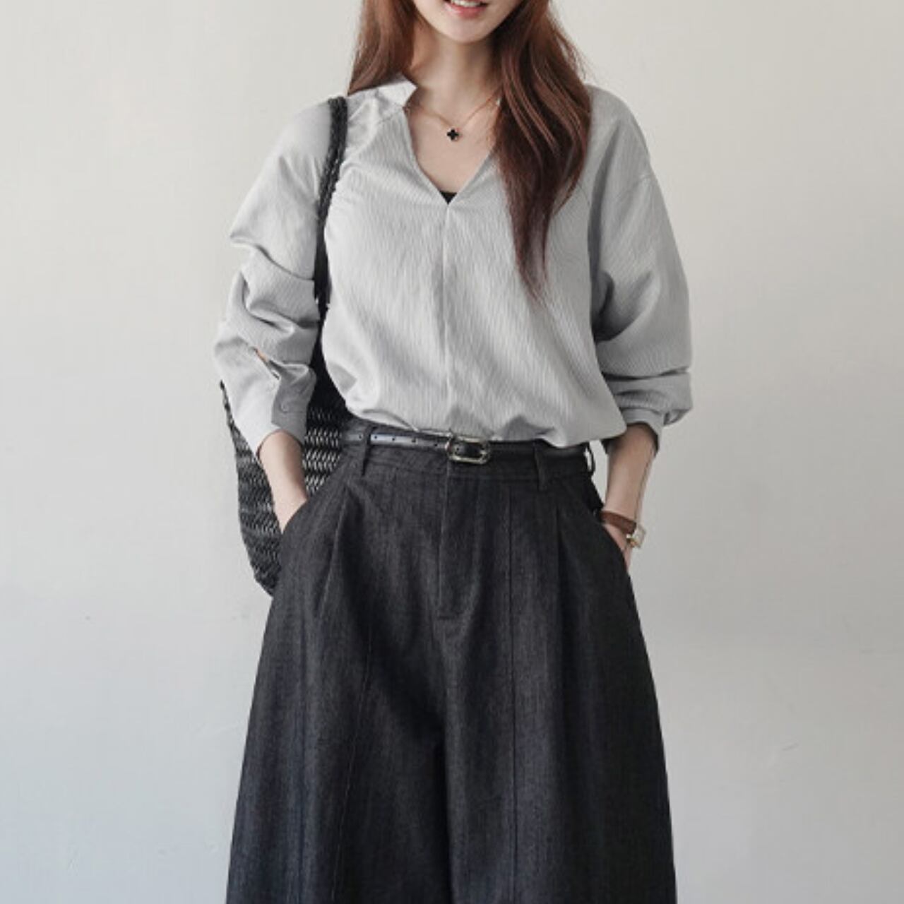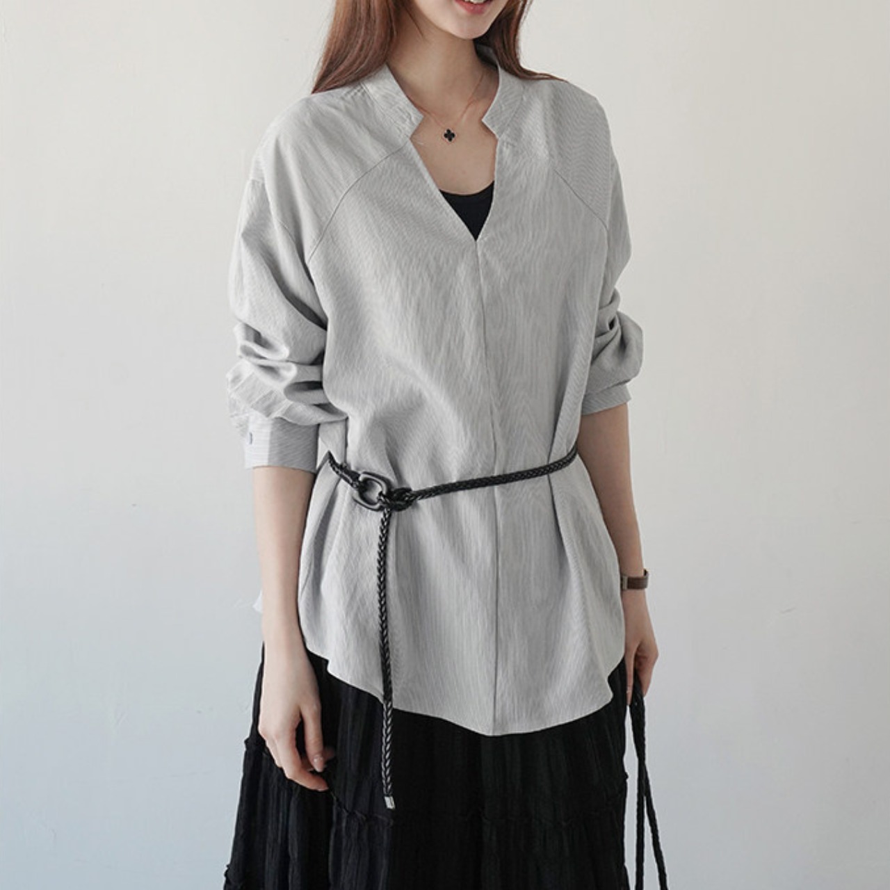 スキッパーネック 長袖 ヒップ丈 ブラウス / 00099