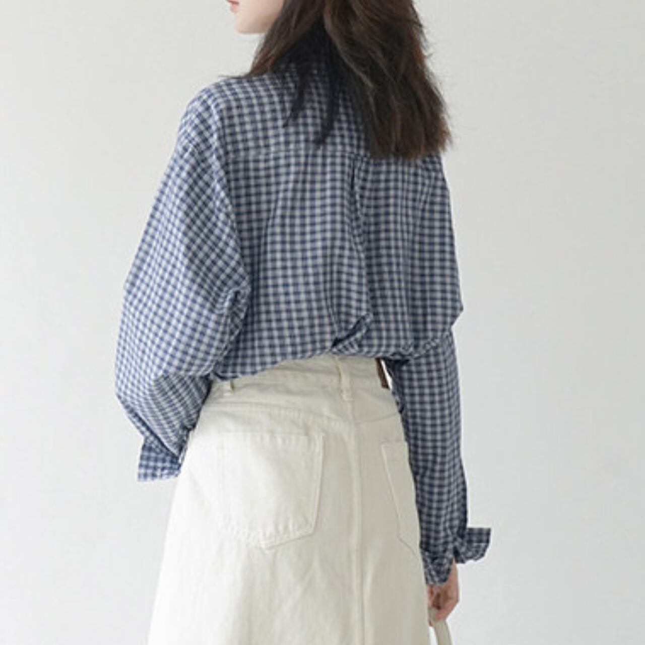 ギンガムチェックのリラックスシャツ。