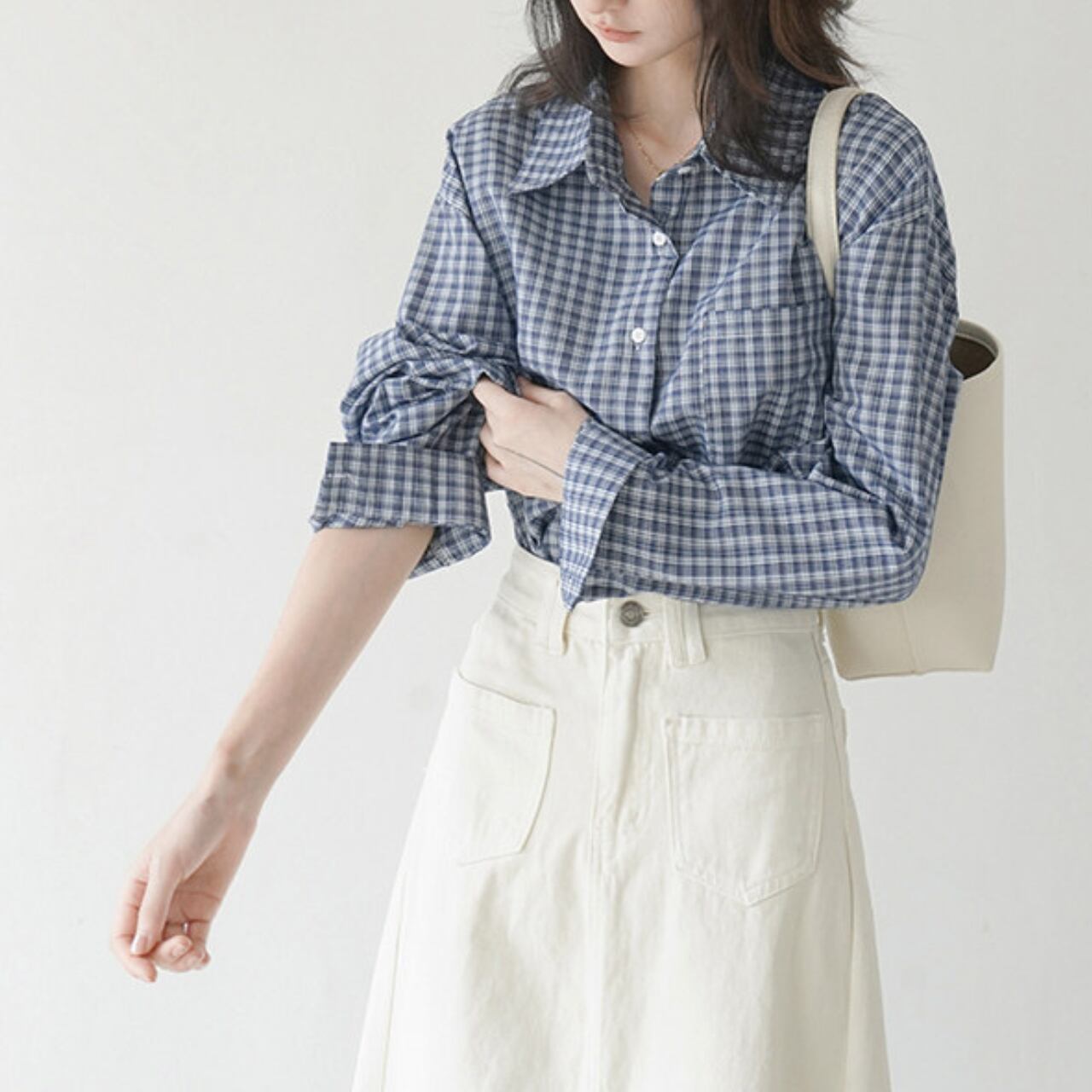 チェック柄 カラーシャツブラウス /00101