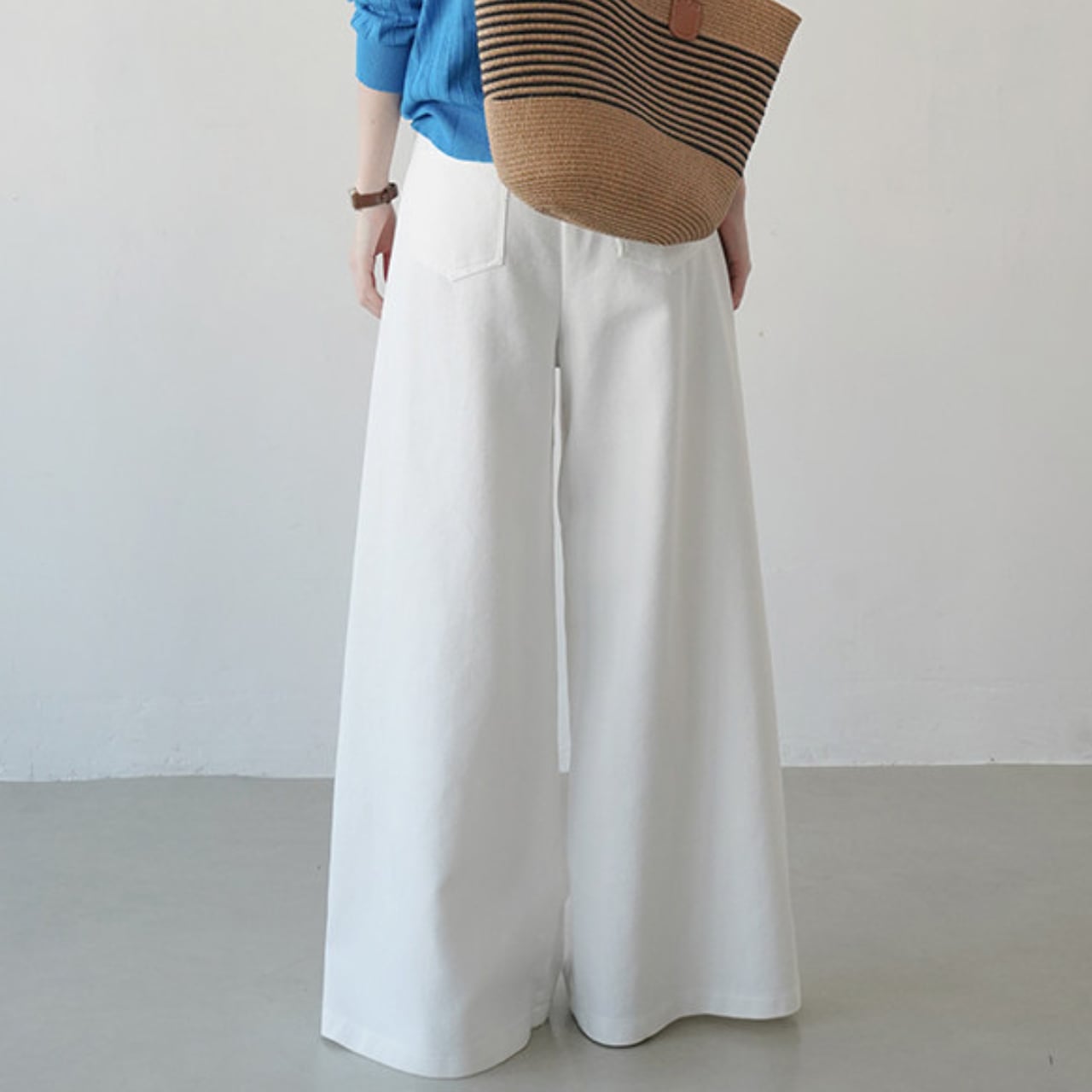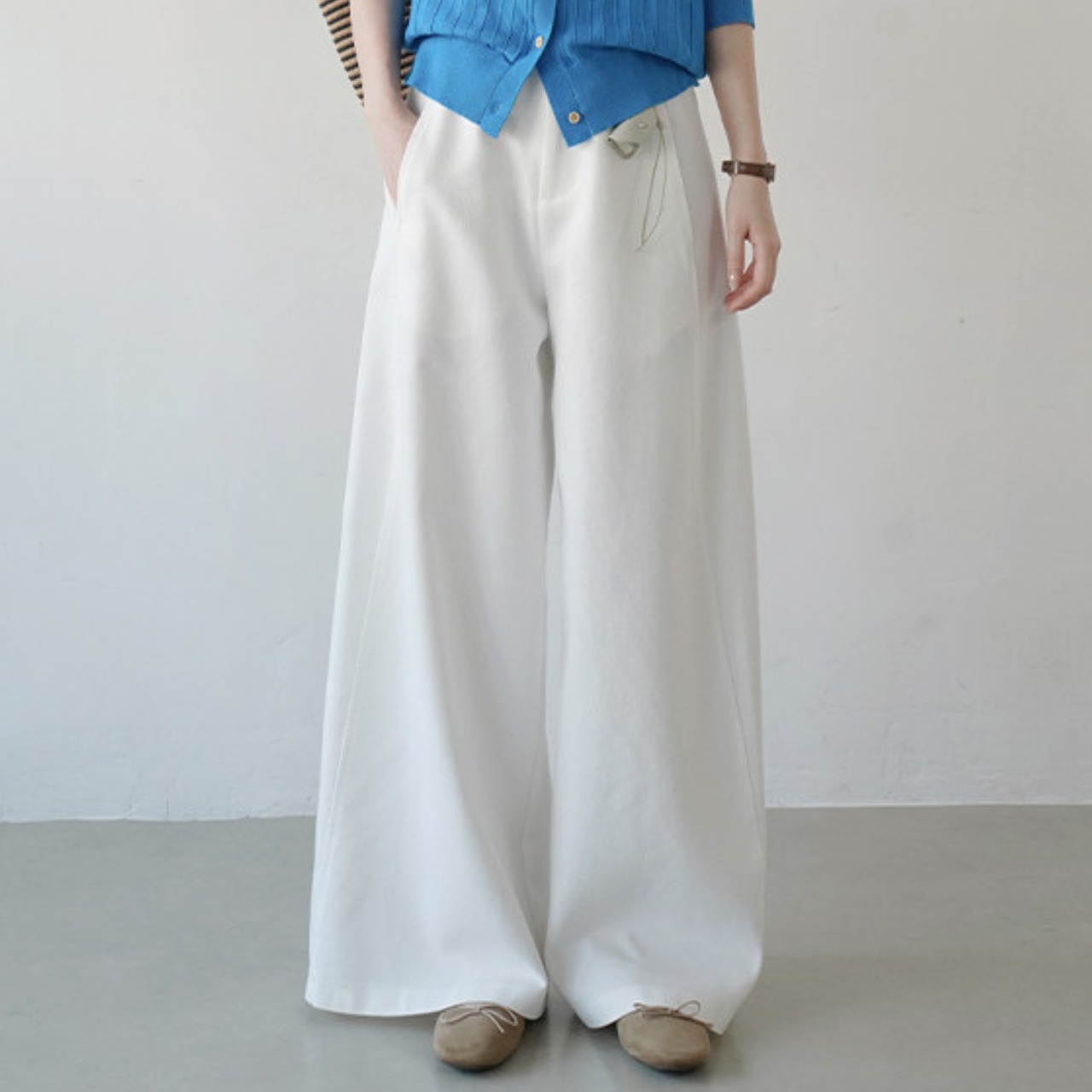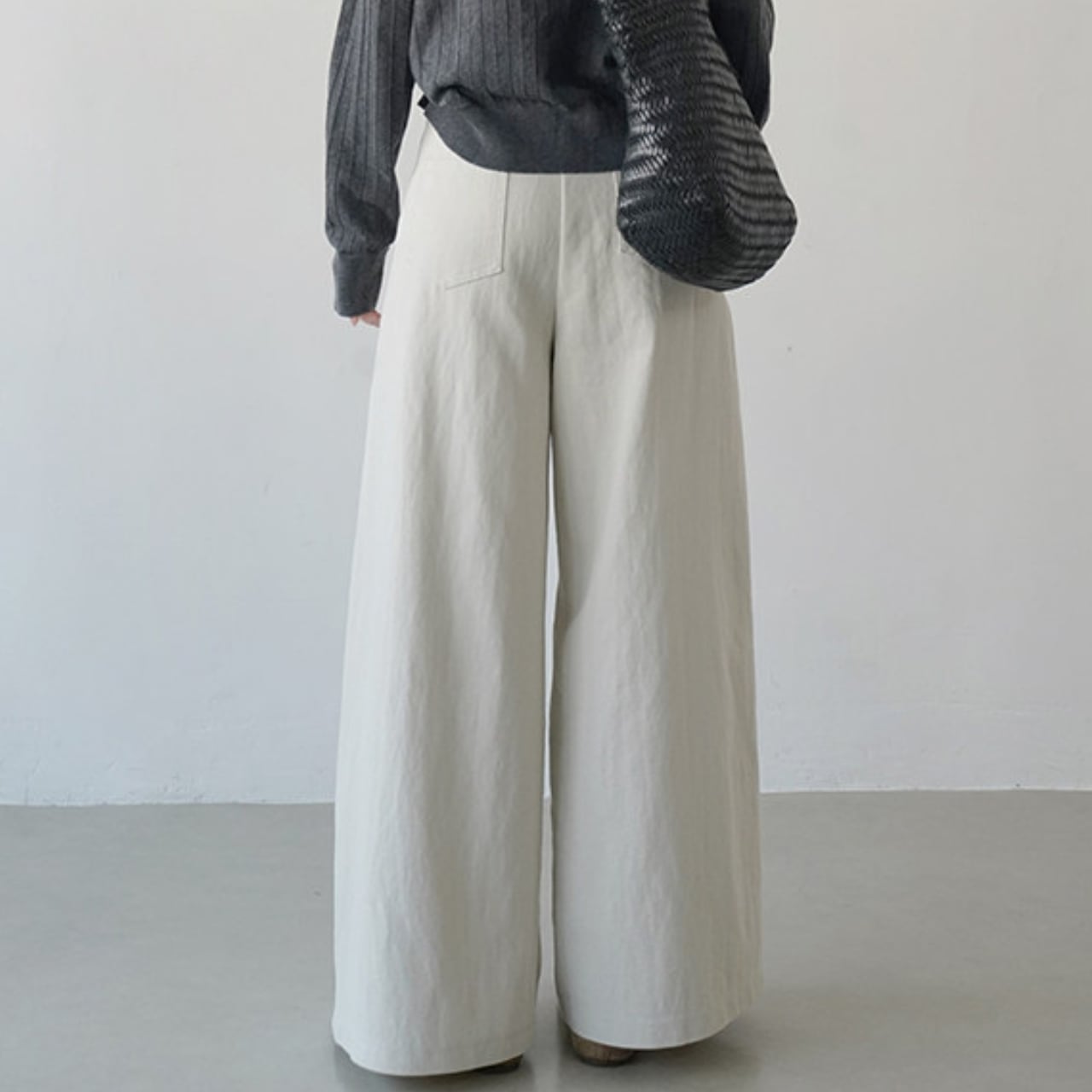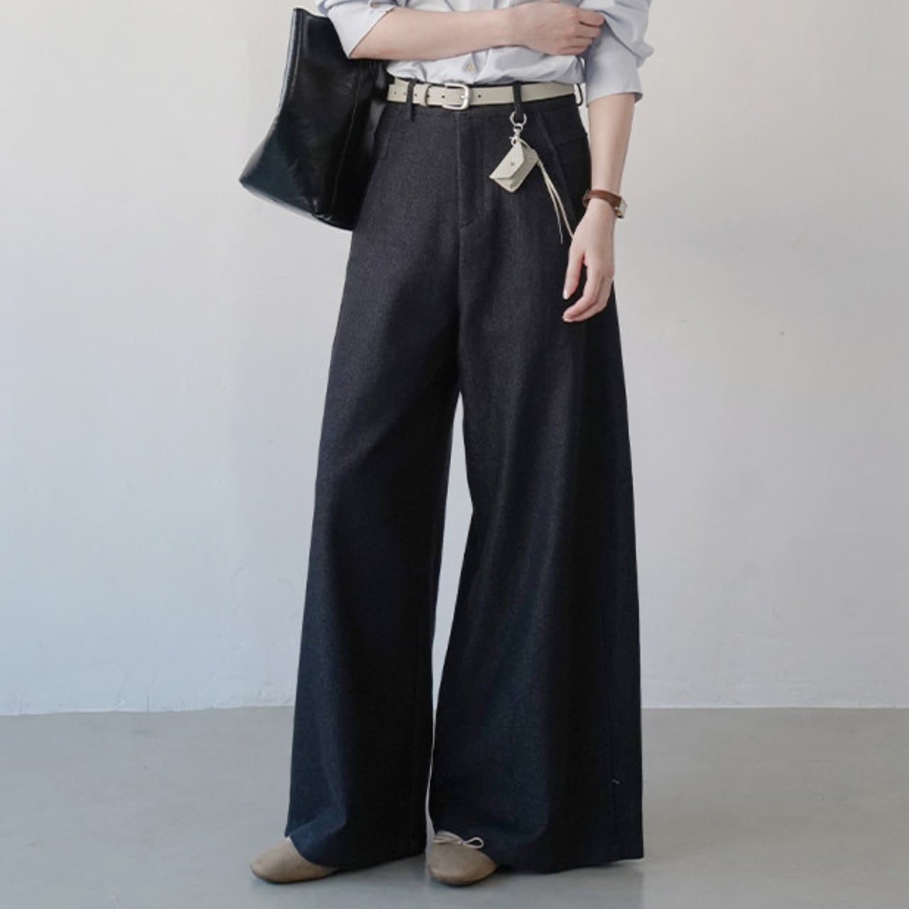 サイドのスリットがアクセントになったワイドレッグパンツ。