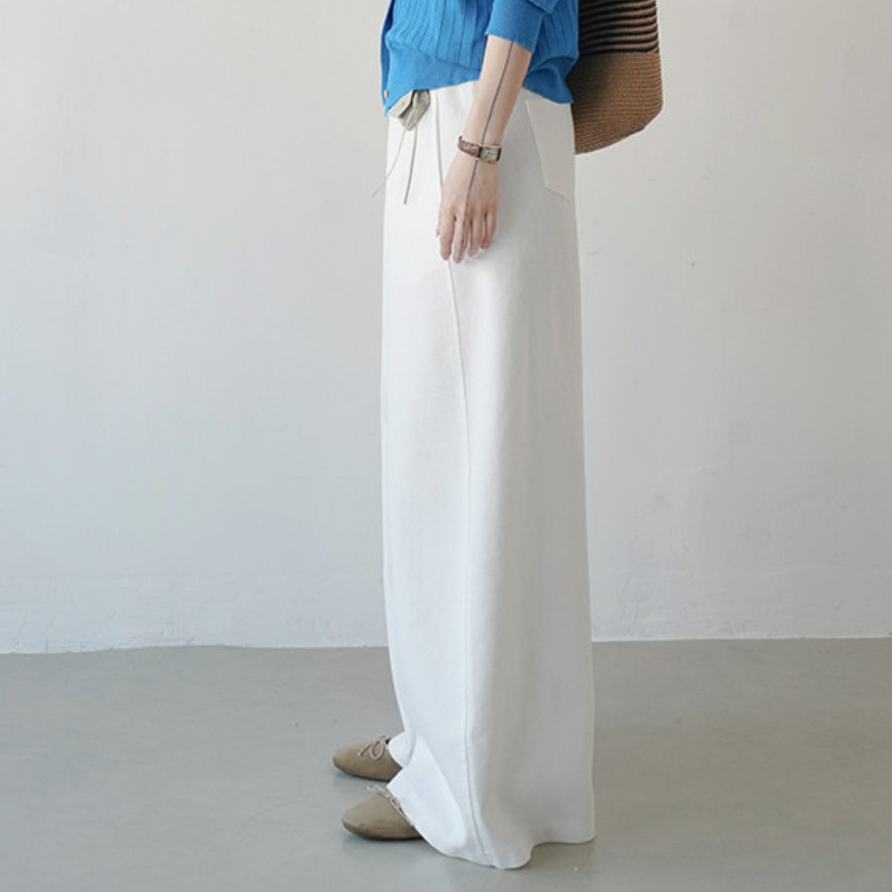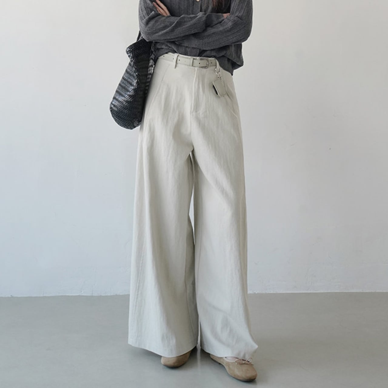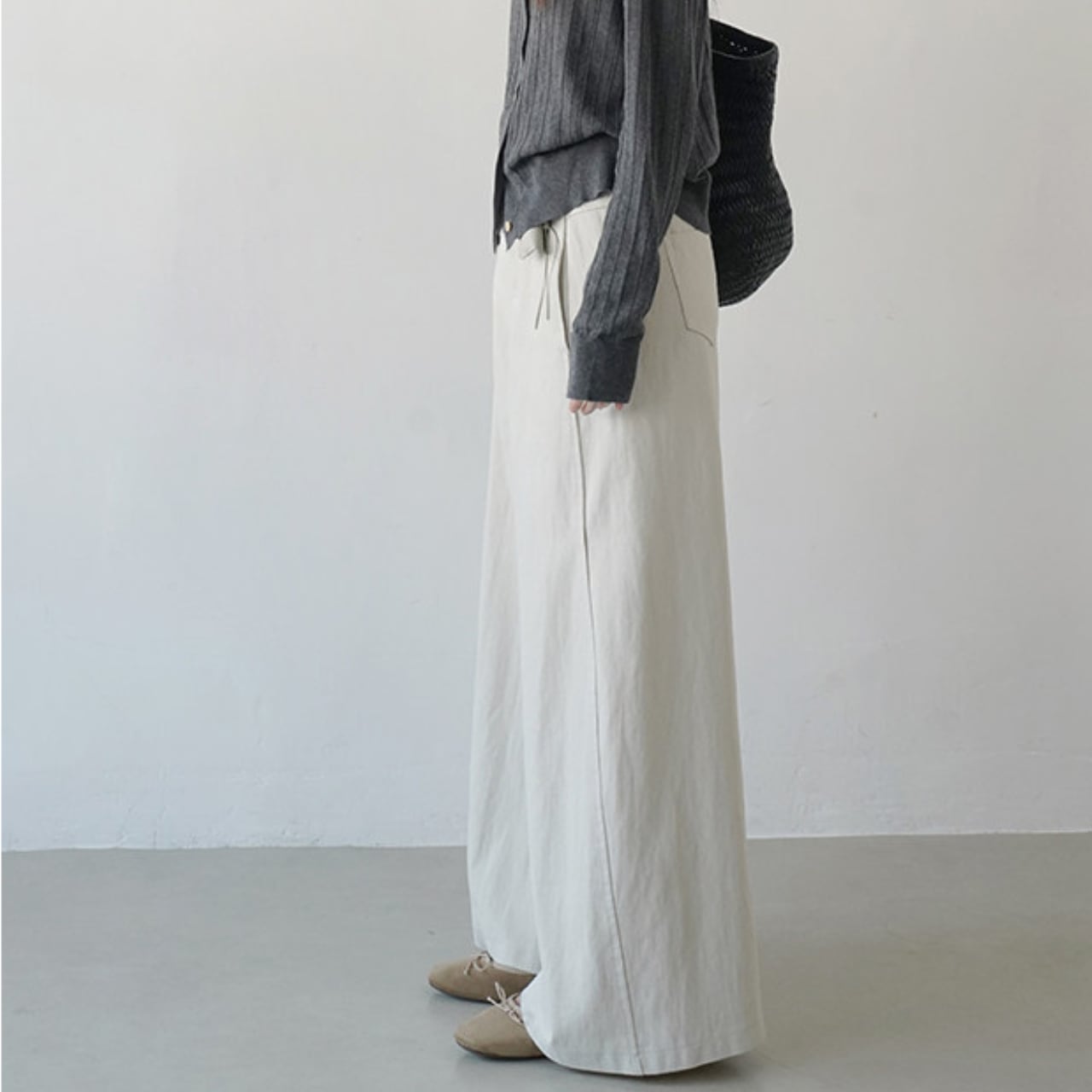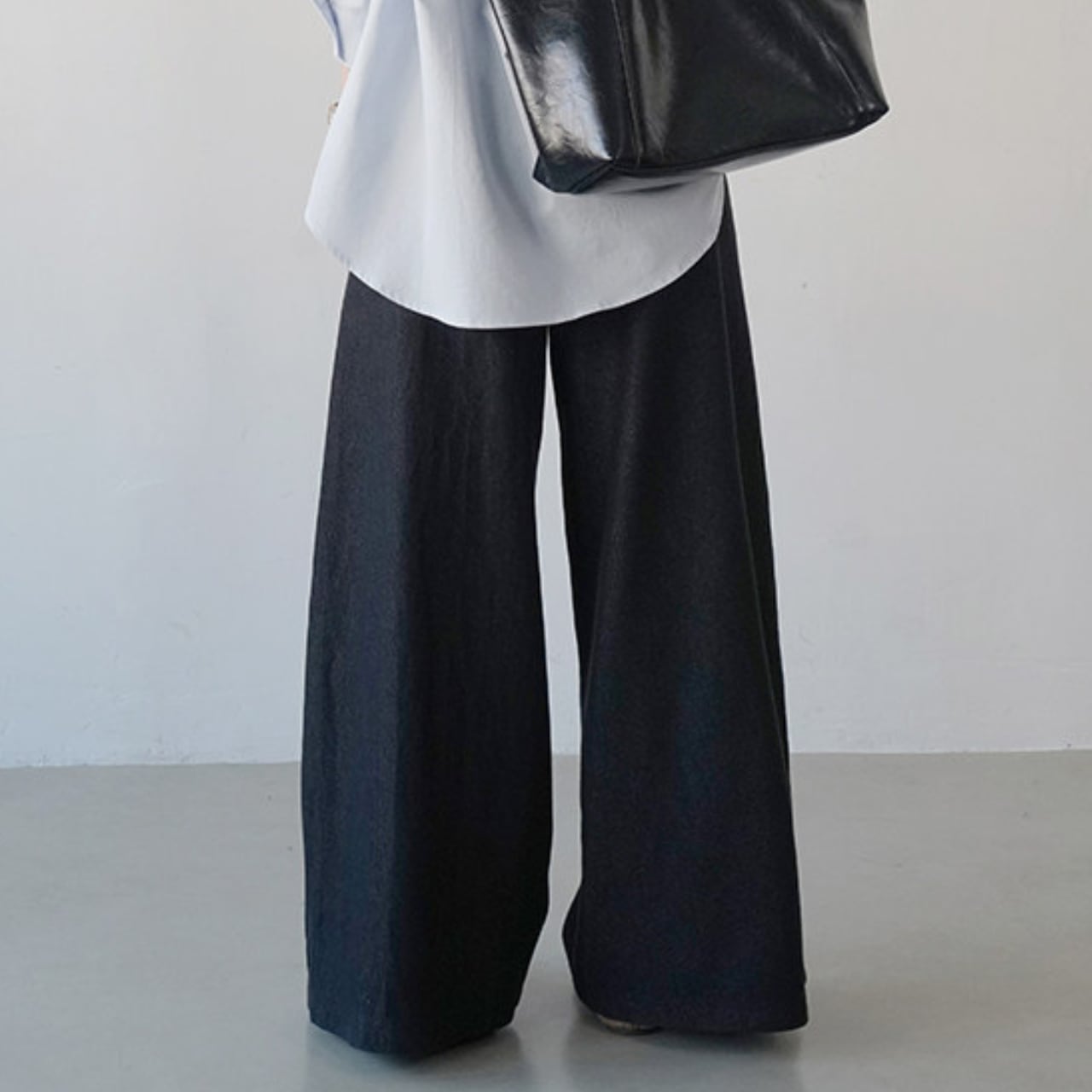 サイドのスリットがアクセントになったワイドレッグパンツ。