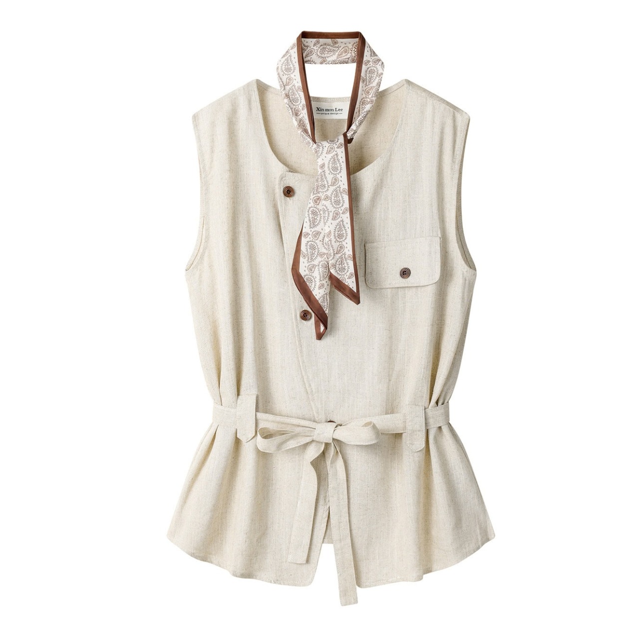 ベルトがアクセントのベスト。