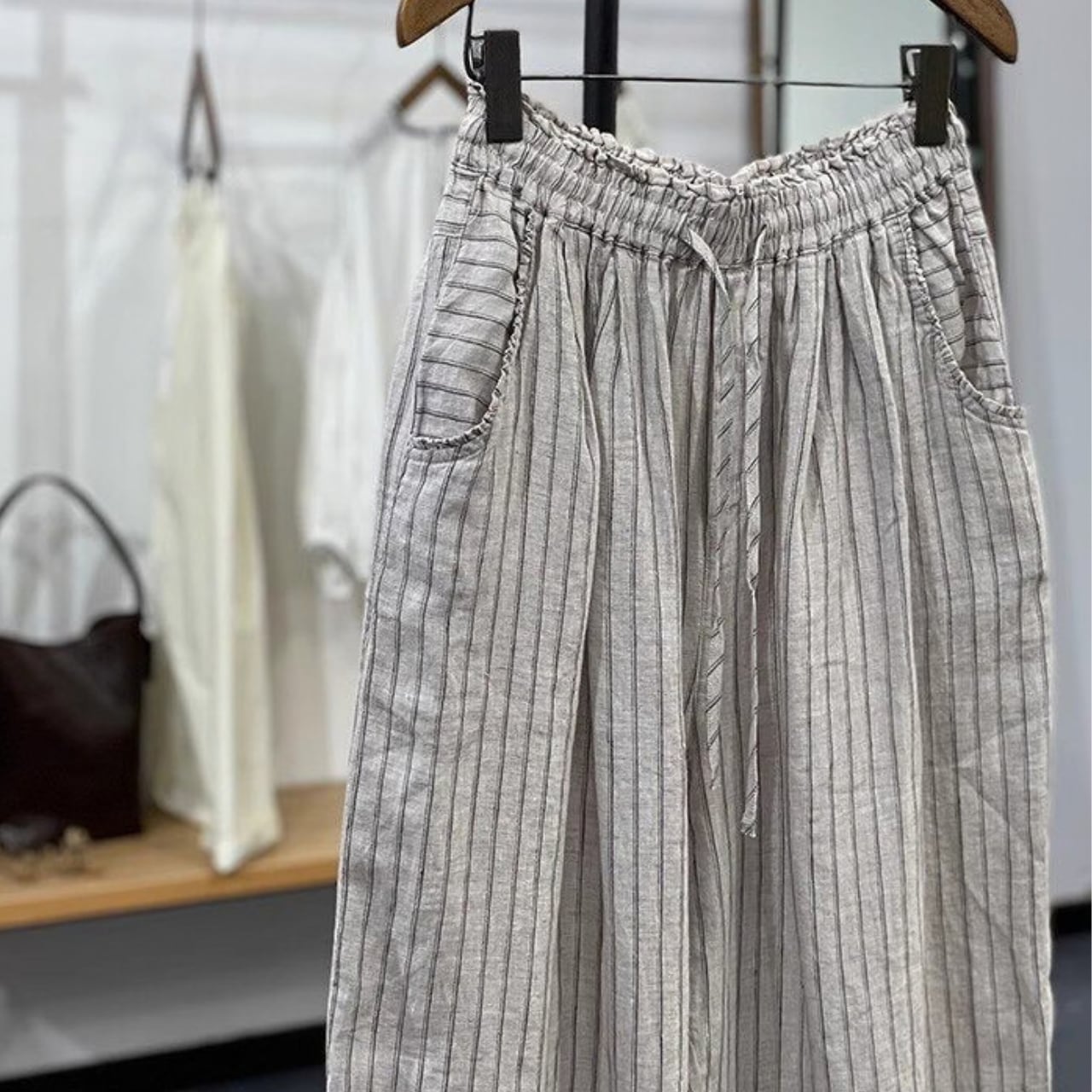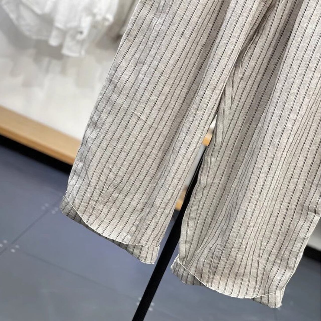 ストライプ柄 ワイド 丈長め ドローストリング パンツ / 00112