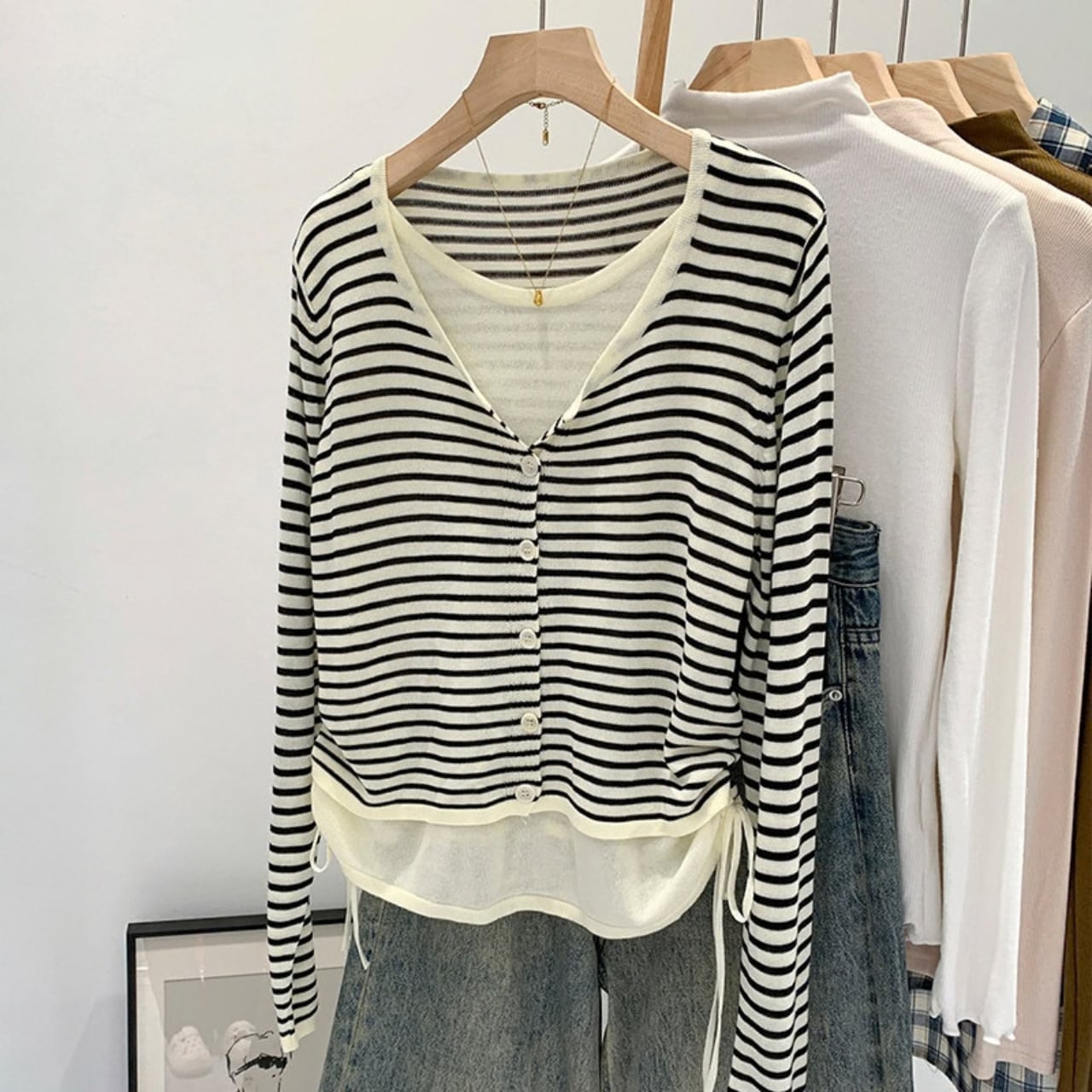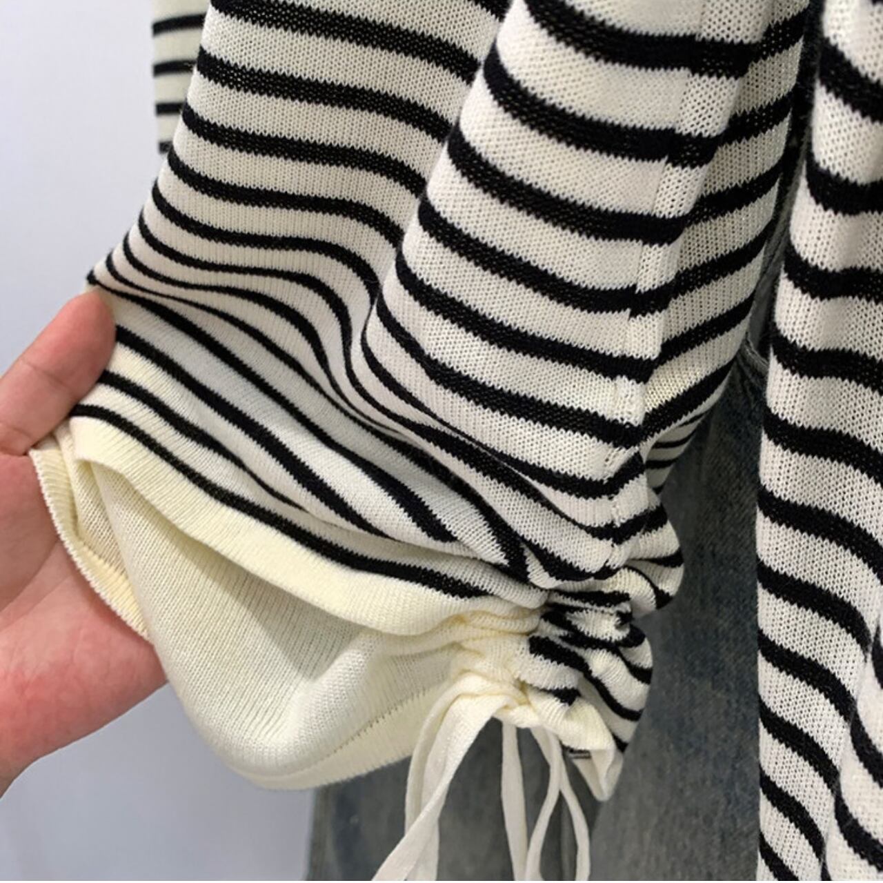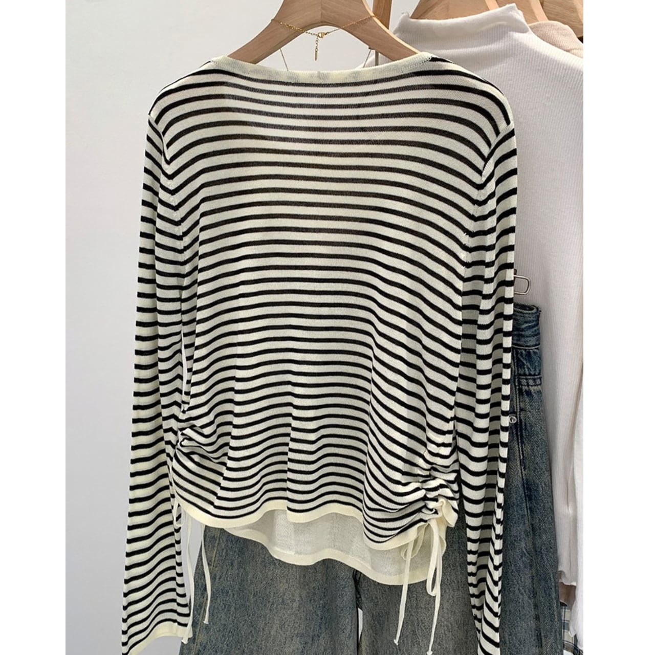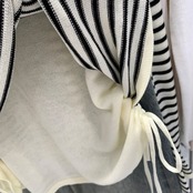 重ね着風ボーダートップス|フェイクレイヤード サイドリボン 長袖カットソー / 00120