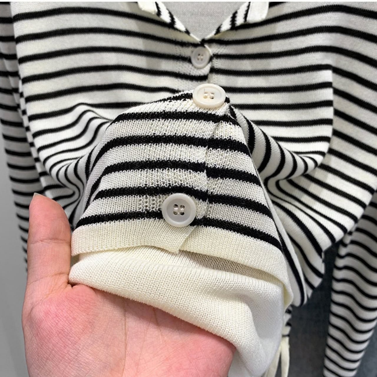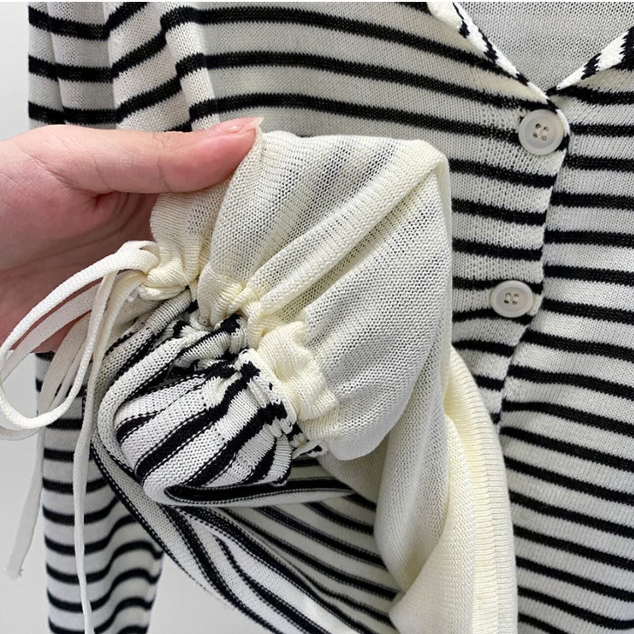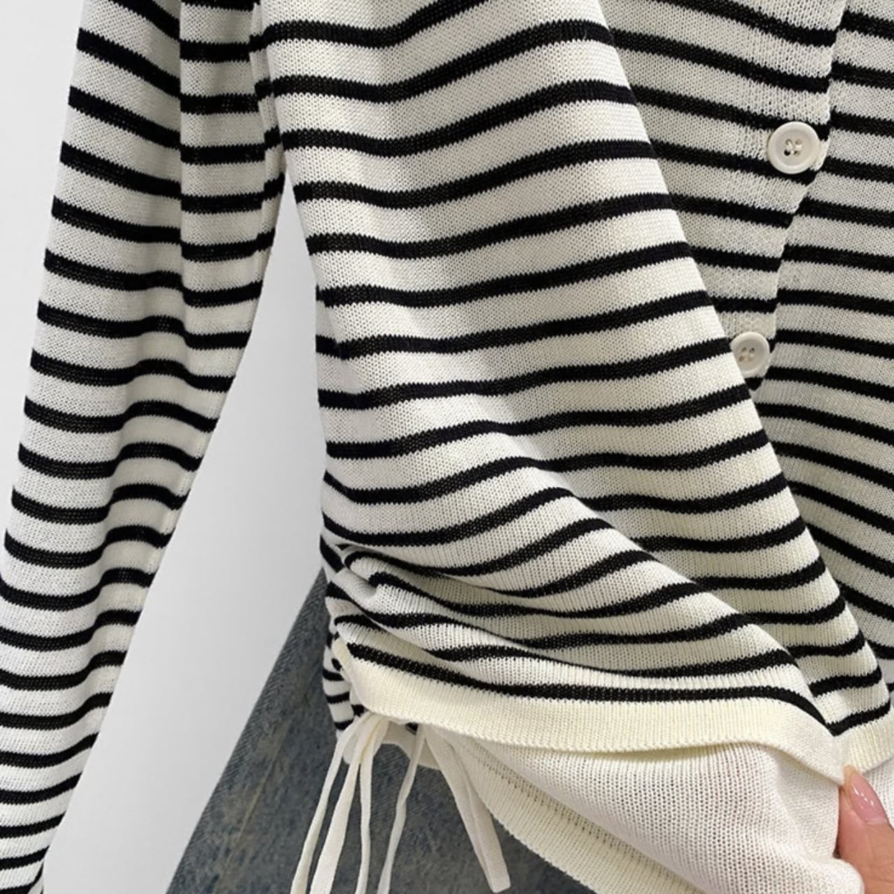 重ね着風ボーダートップス|フェイクレイヤード サイドリボン 長袖カットソー / 00120