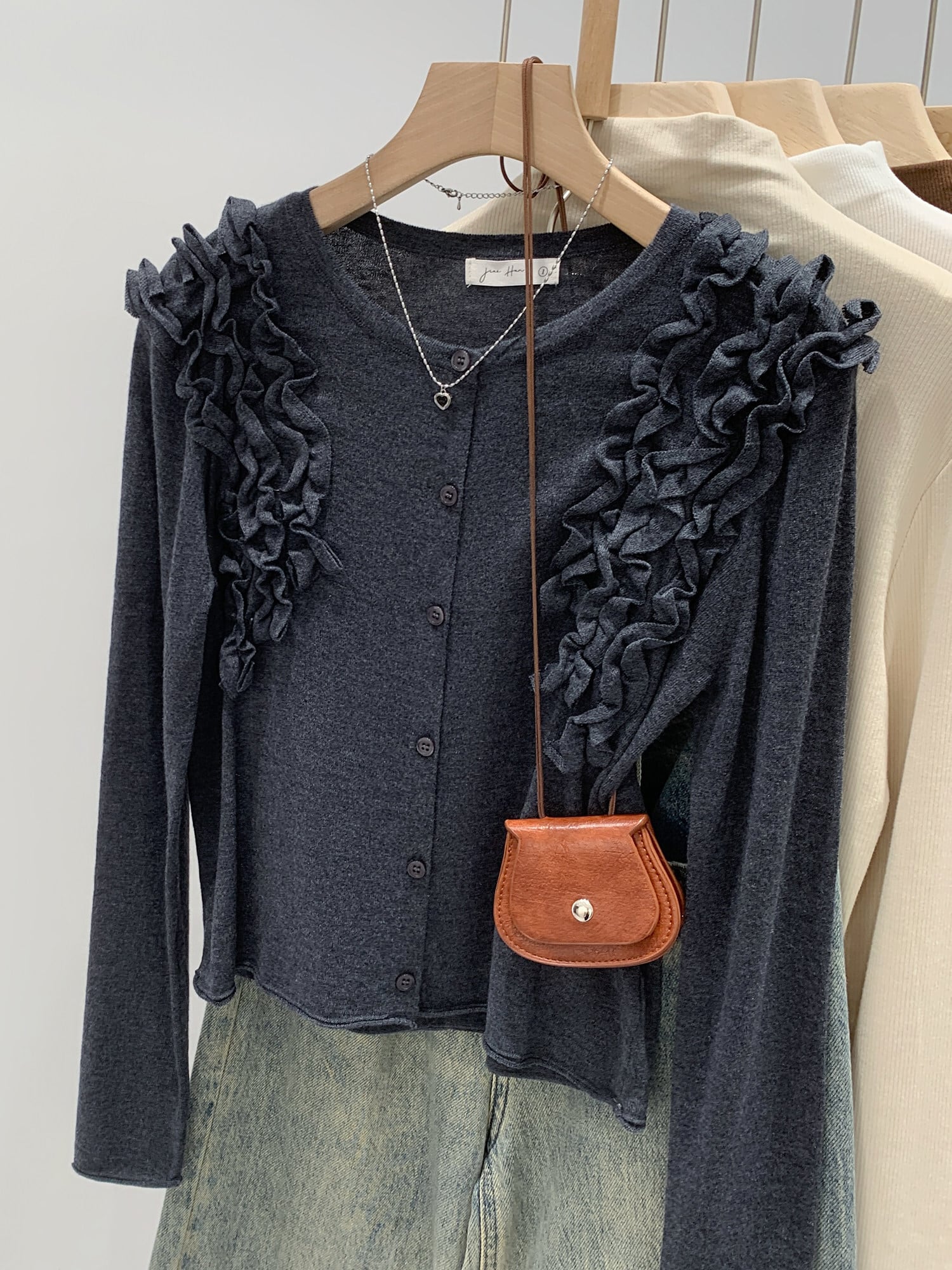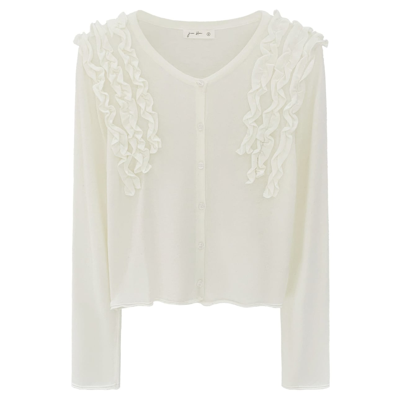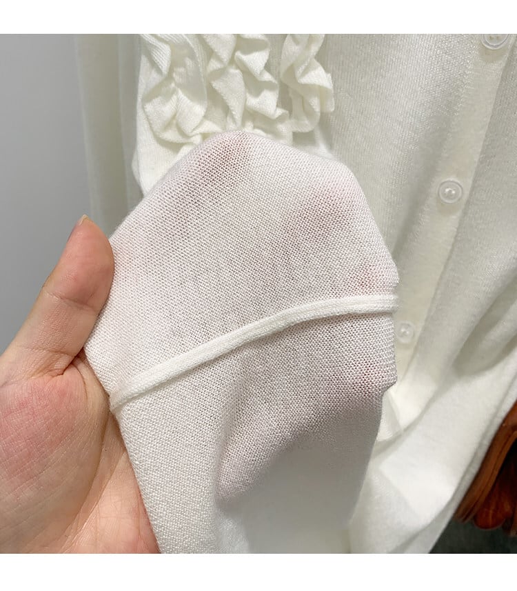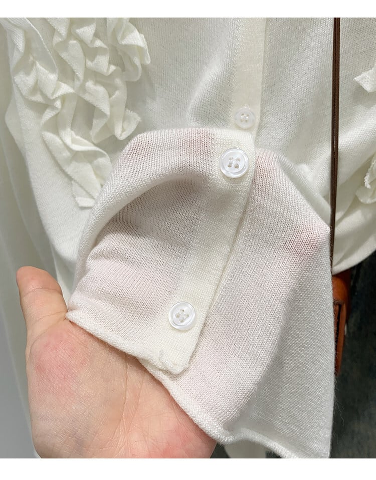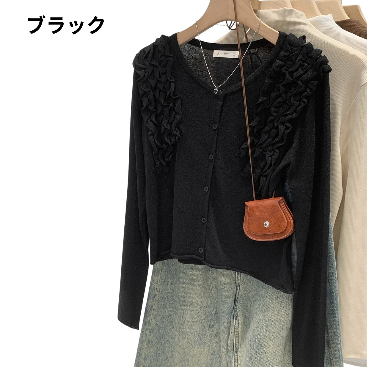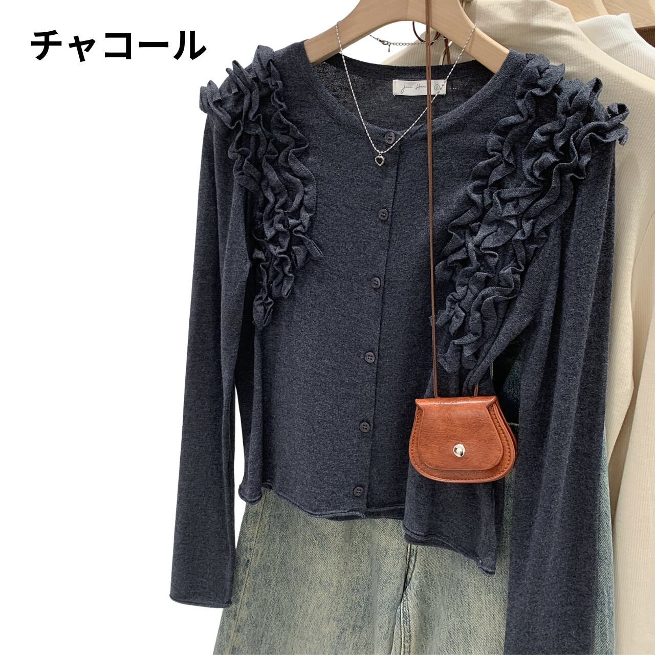 フリル 長袖 クロップド丈 ニットカーディガン / 00122