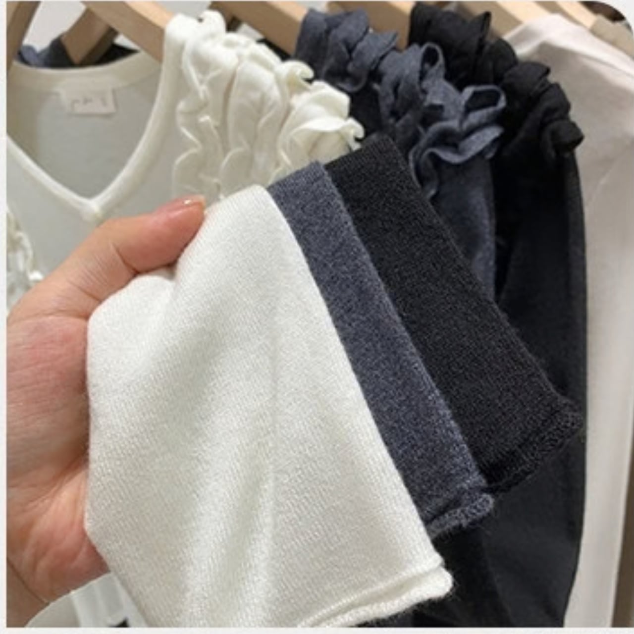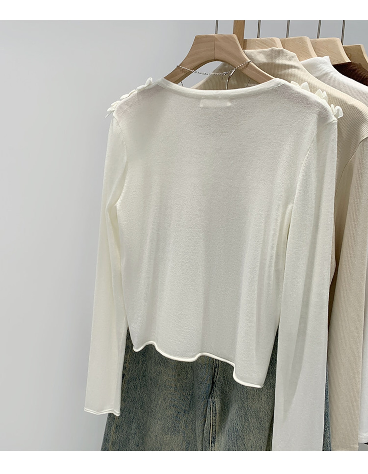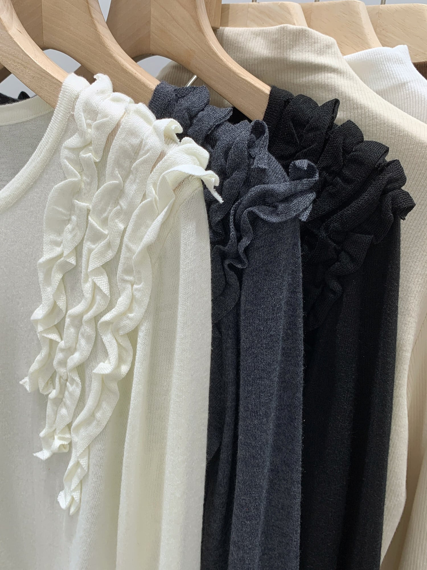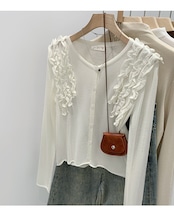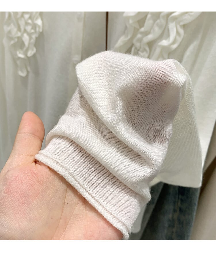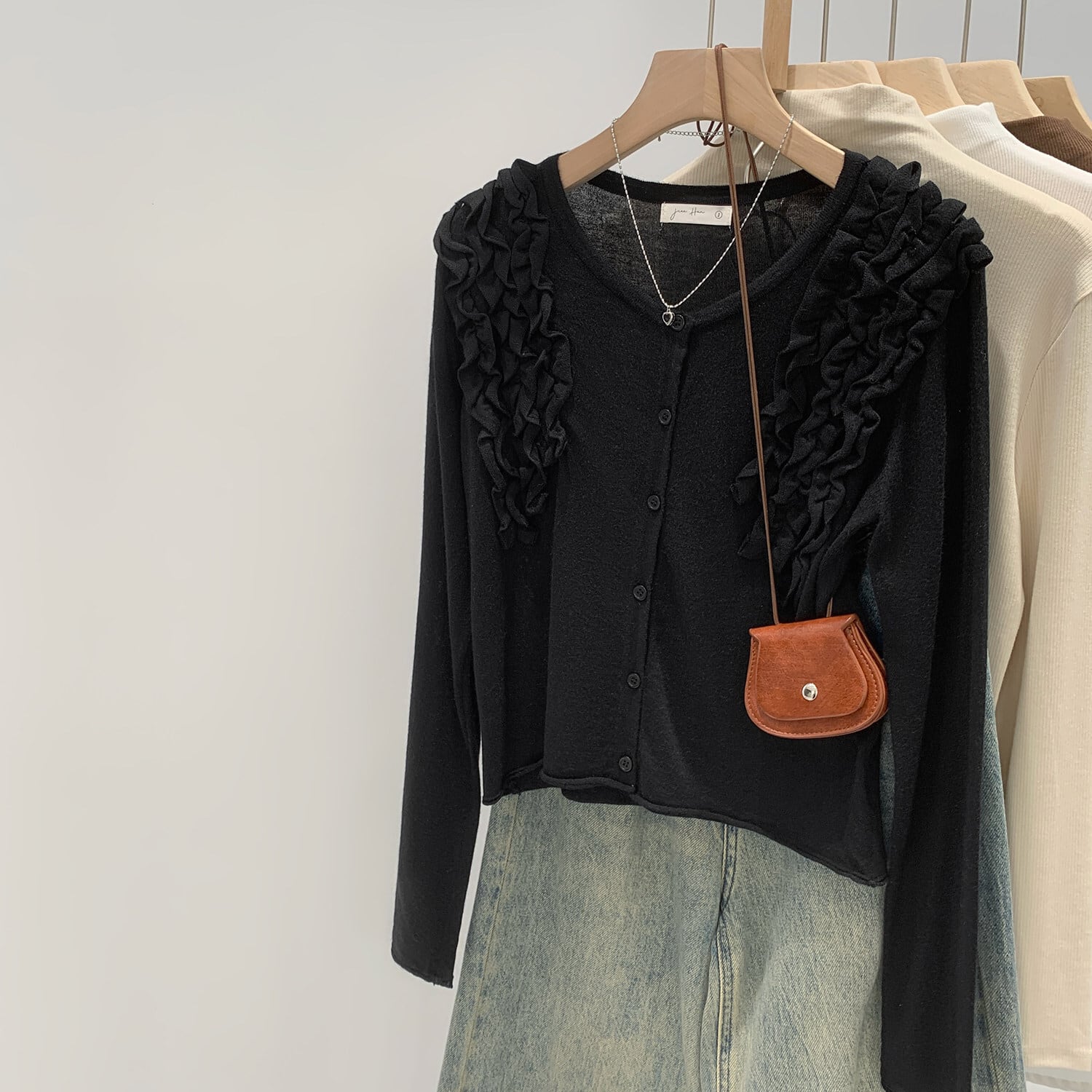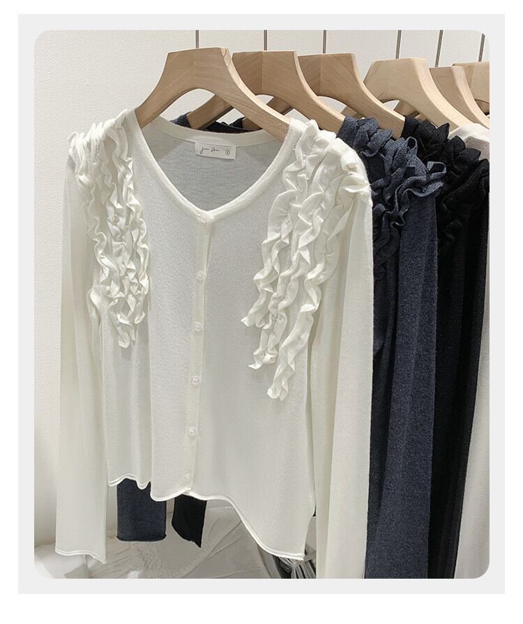フリル 長袖 クロップド丈 ニットカーディガン / 00122