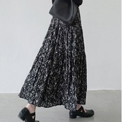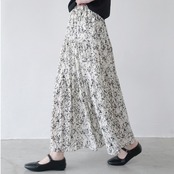 フラワープリント マキシ丈 ギャザー フレアスカート / 00127