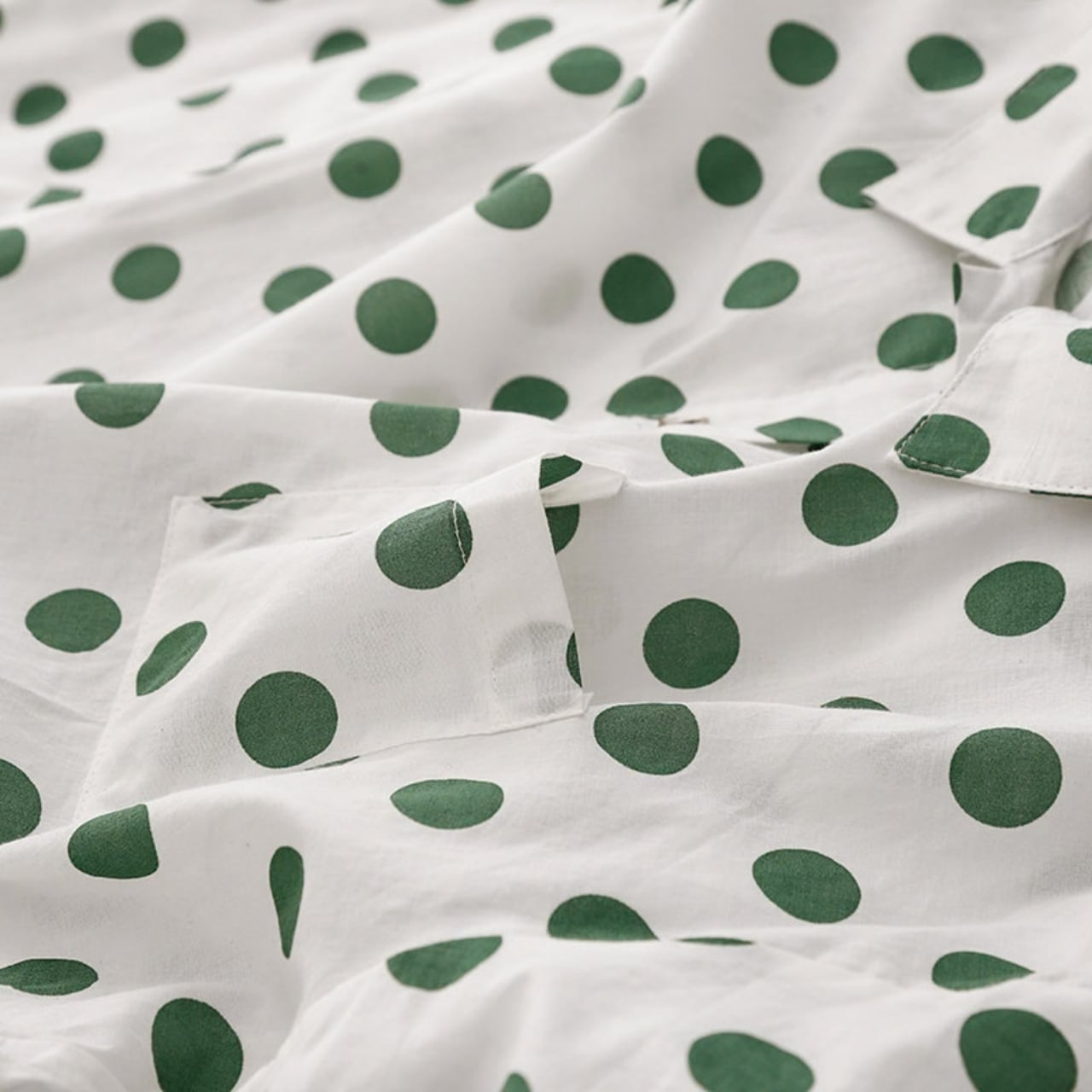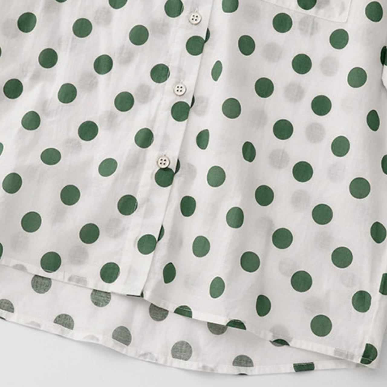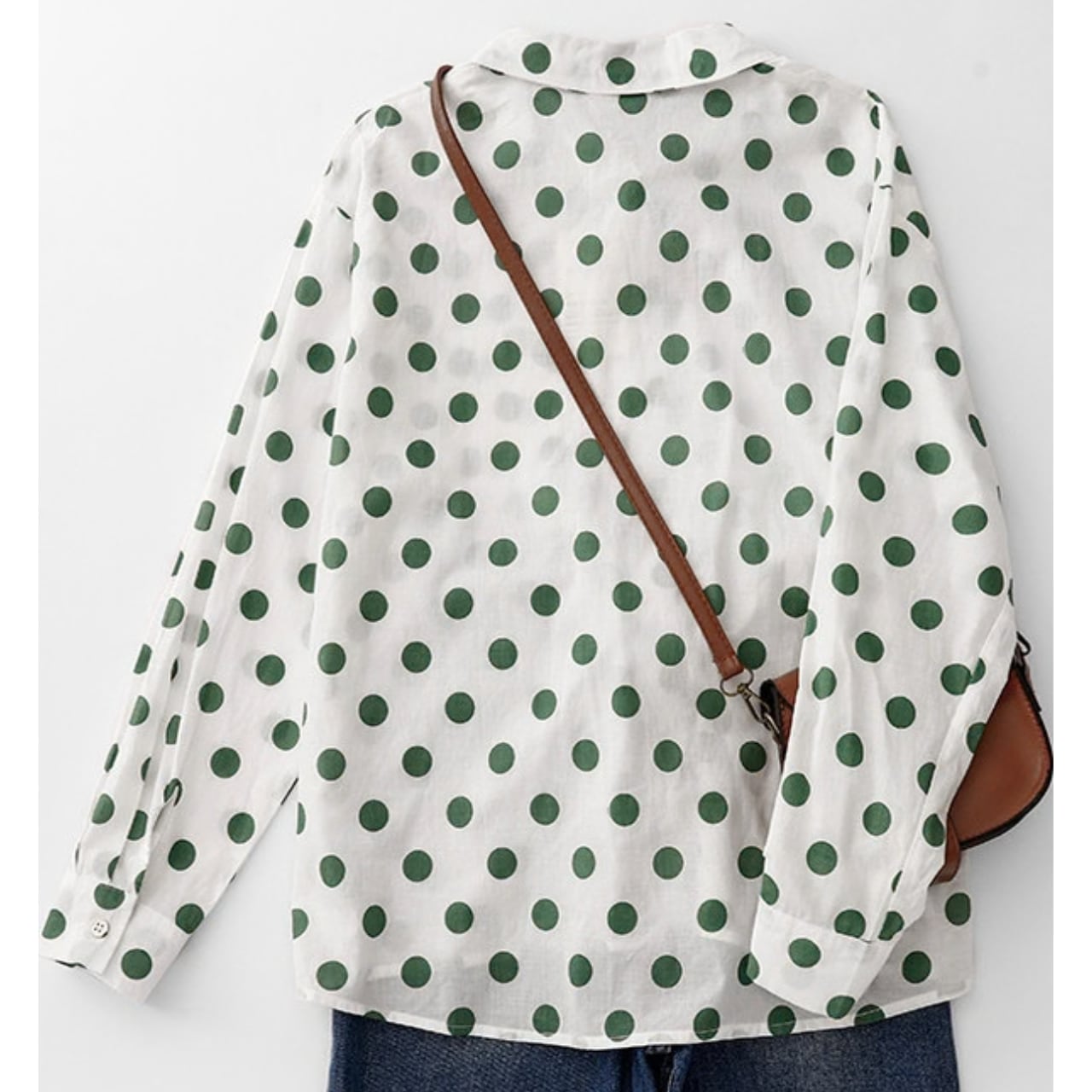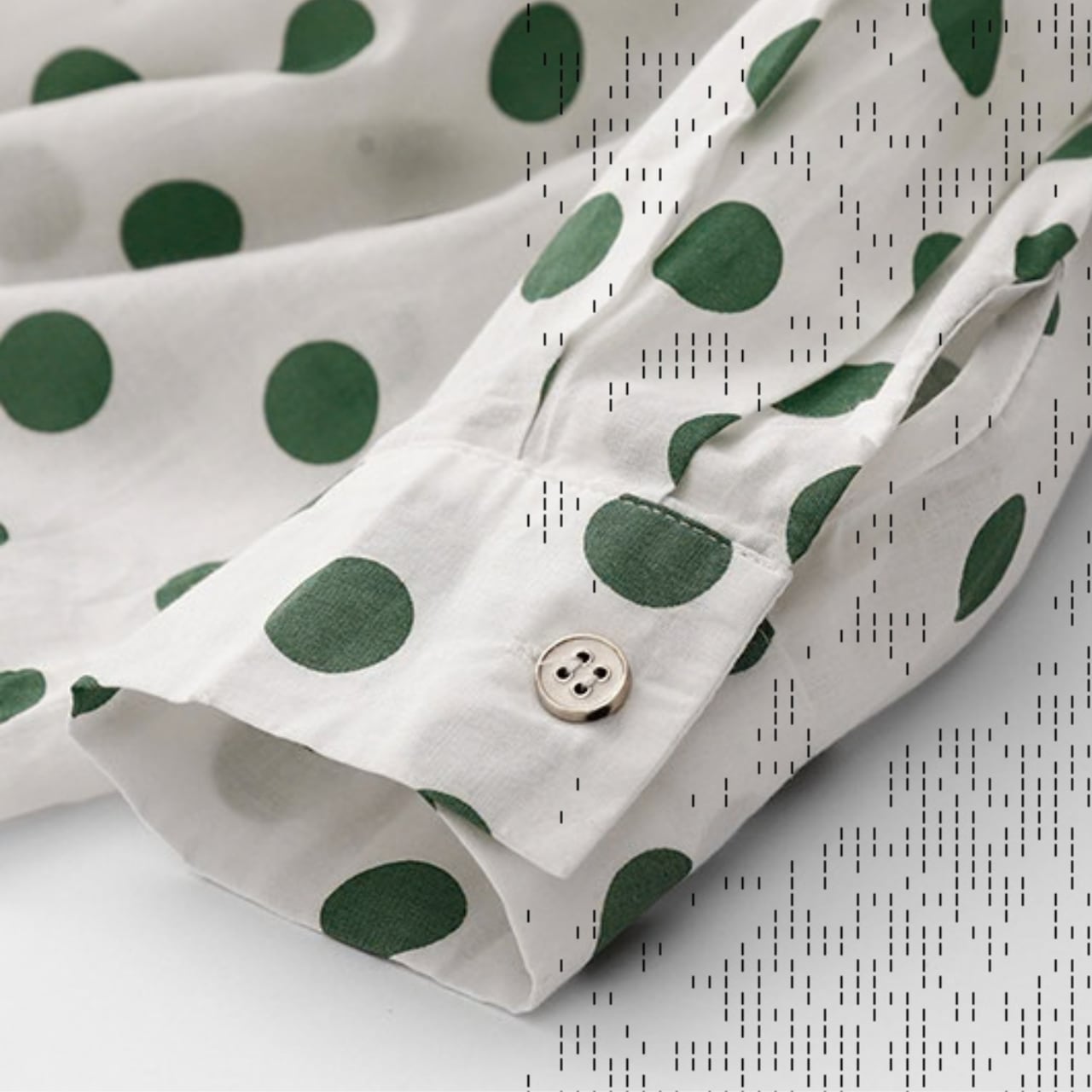 ドット柄が目を引く長袖シャツ。