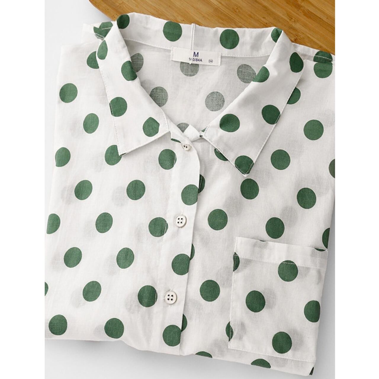 ポケット付き 長袖 ドット柄 シャツ / 00128
