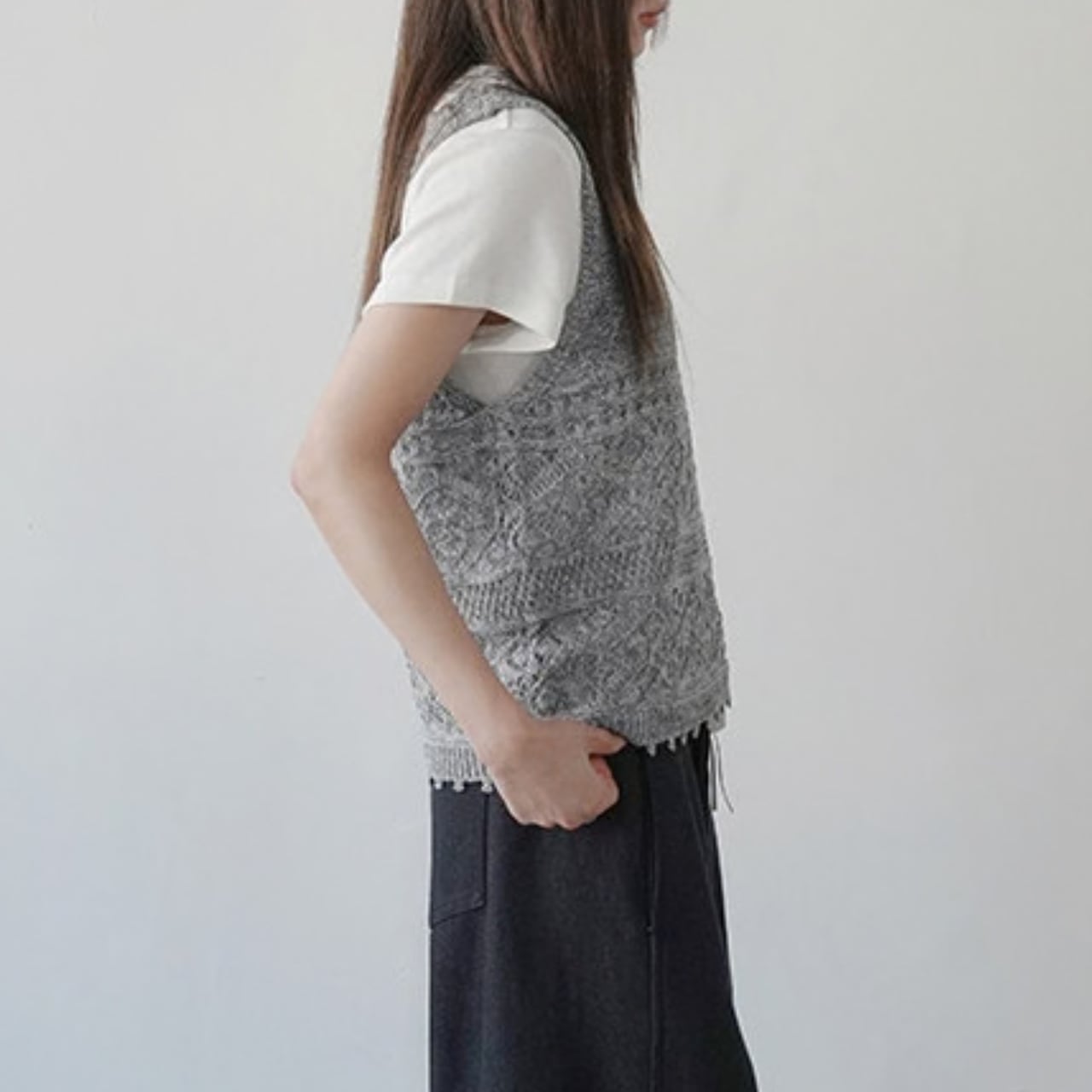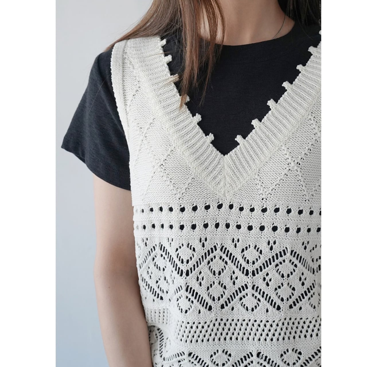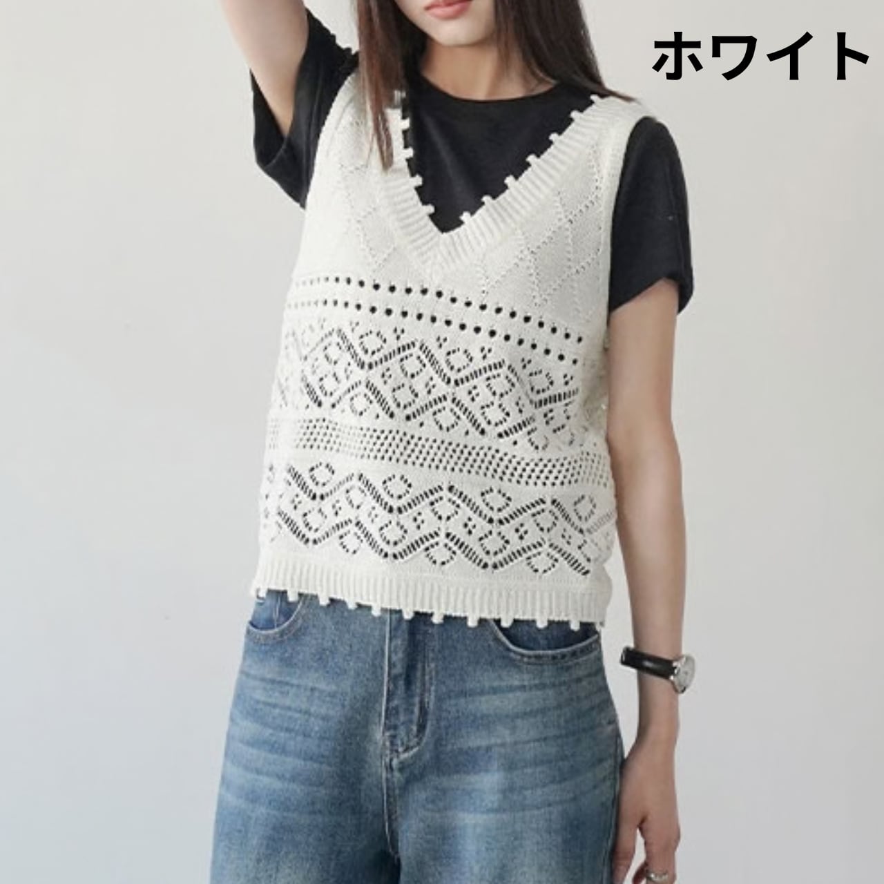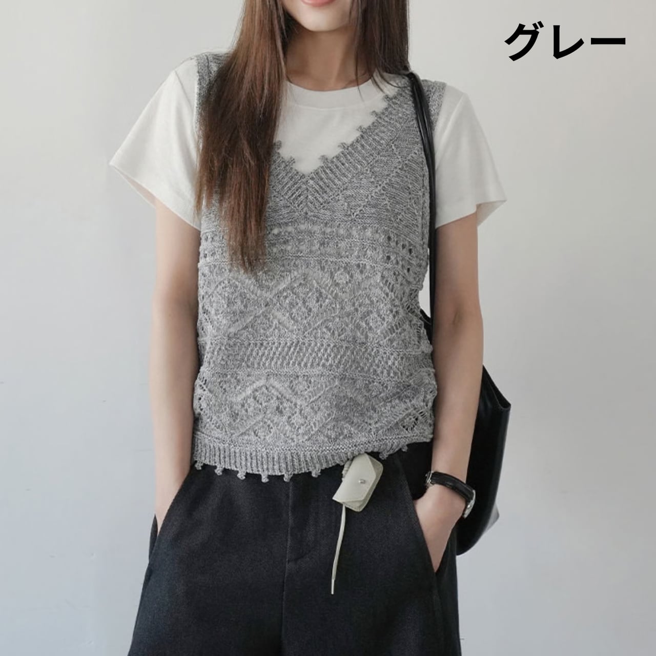 Vネック ニット ショート丈 ノースリーブ ベスト / 00136