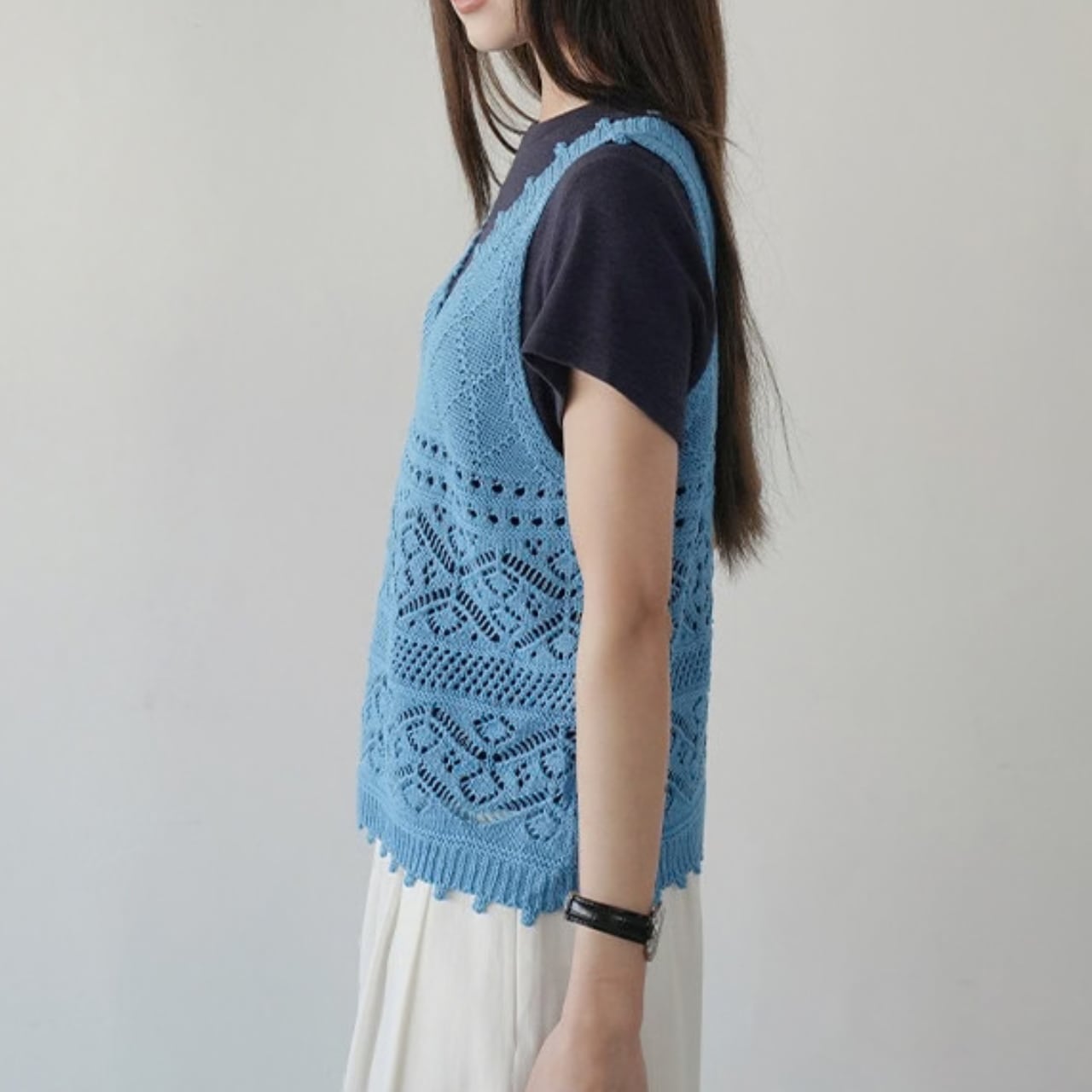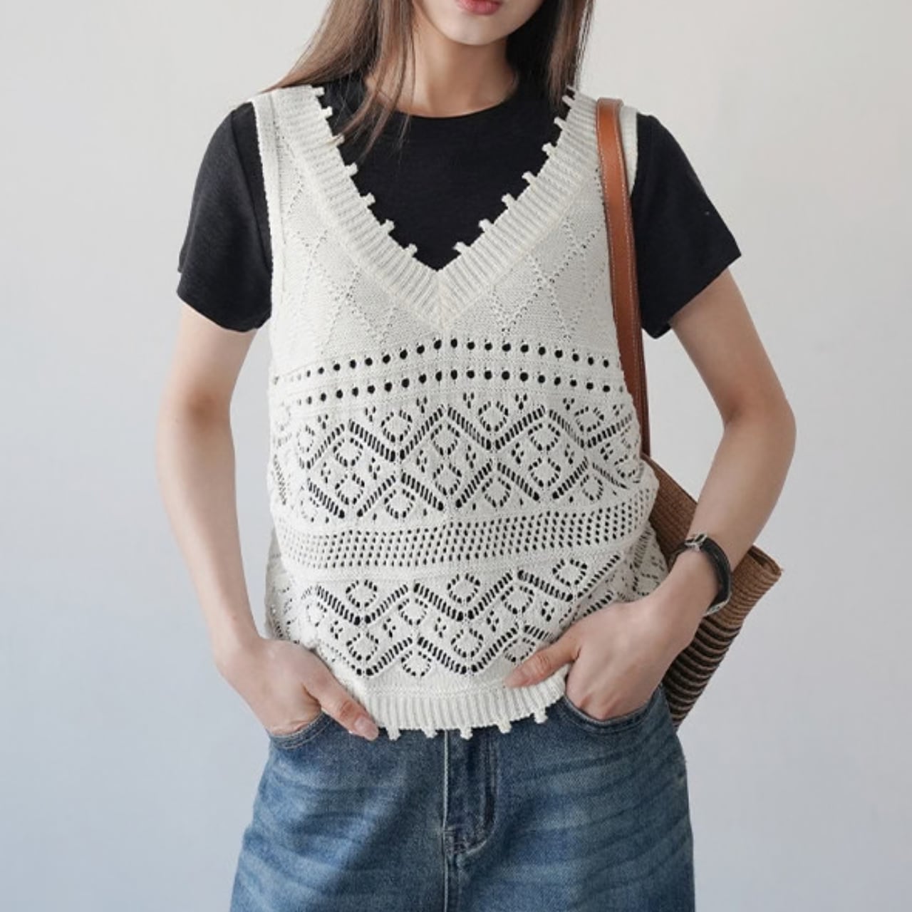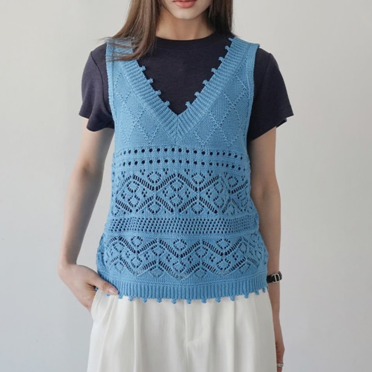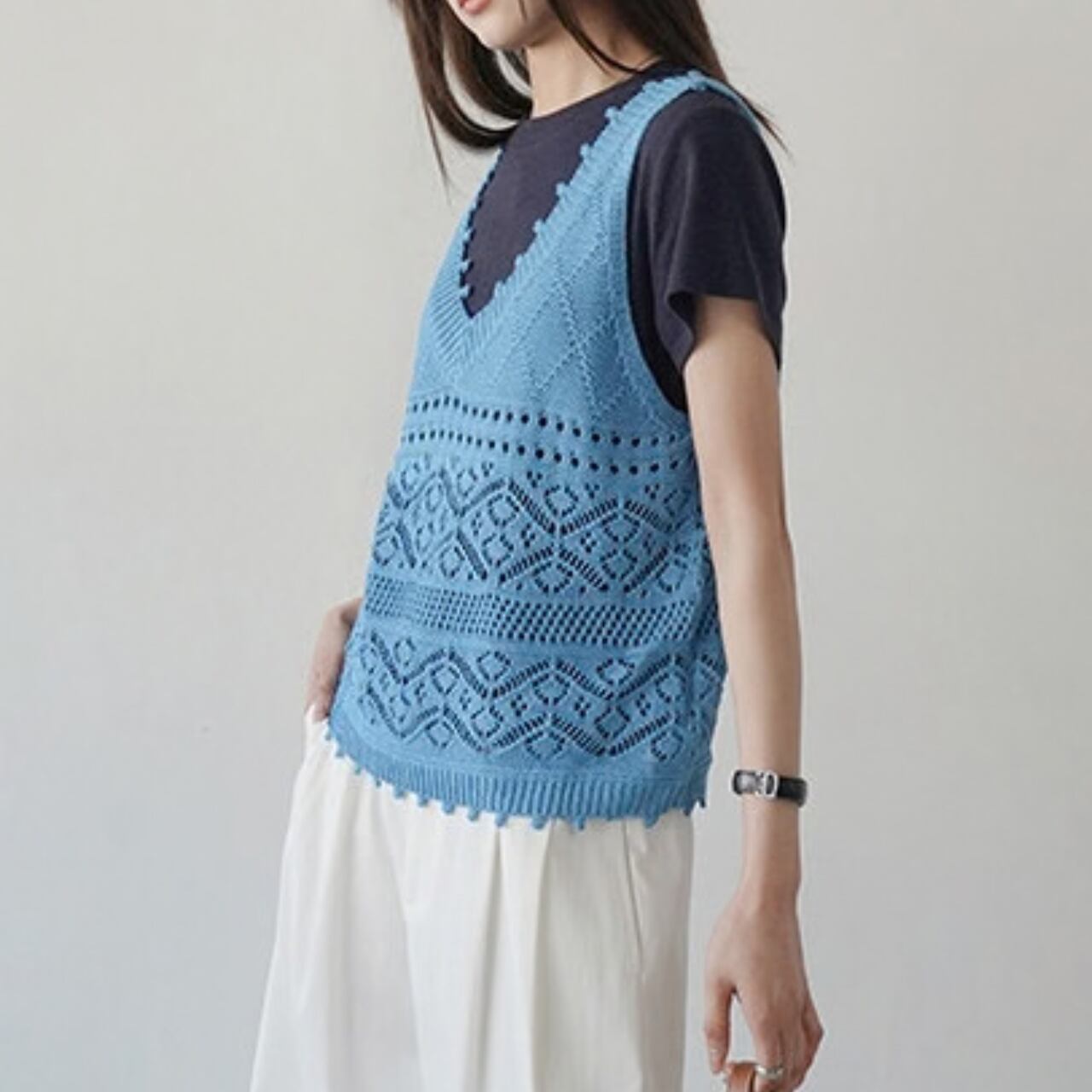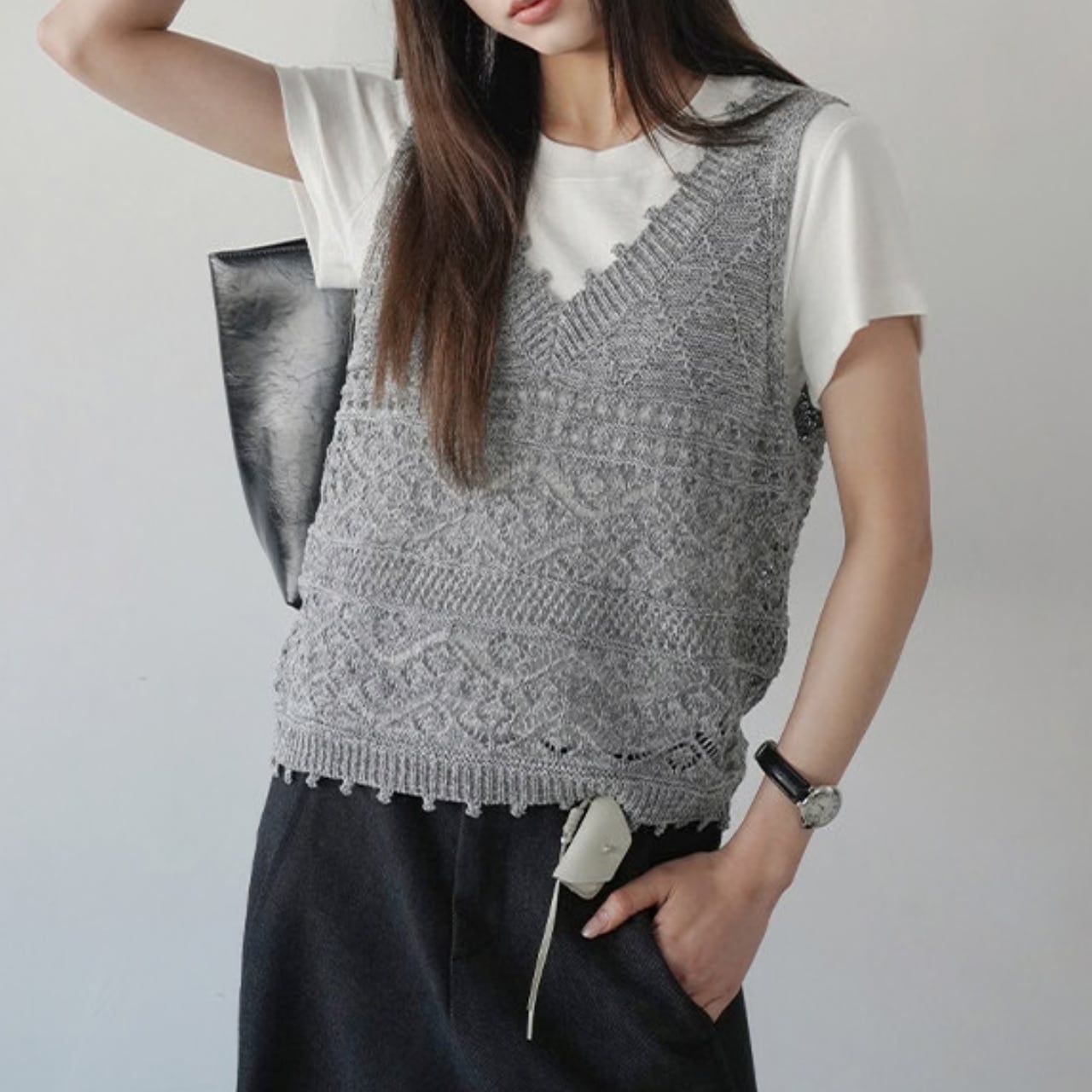 Vネック ニット ショート丈 ノースリーブ ベスト / 00136