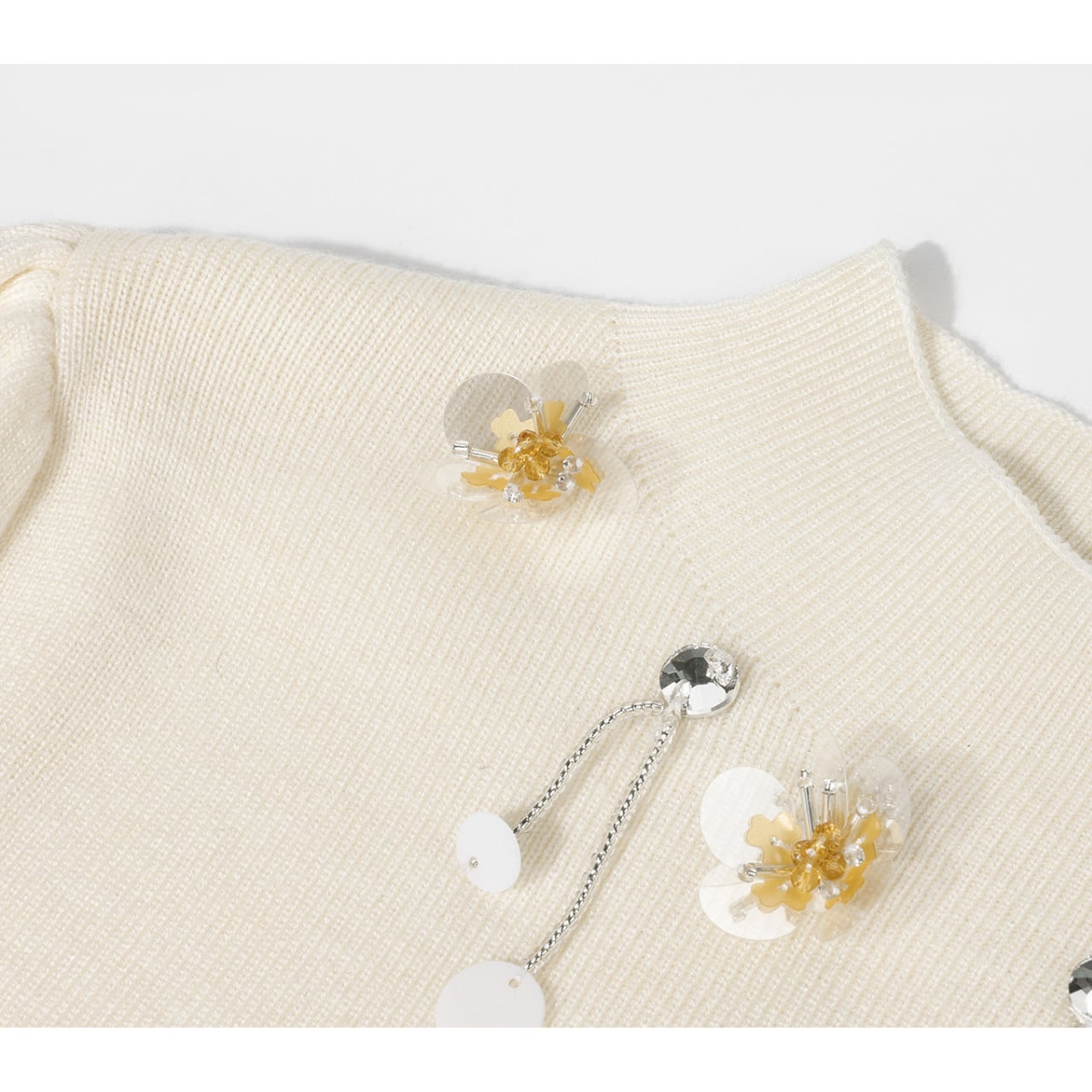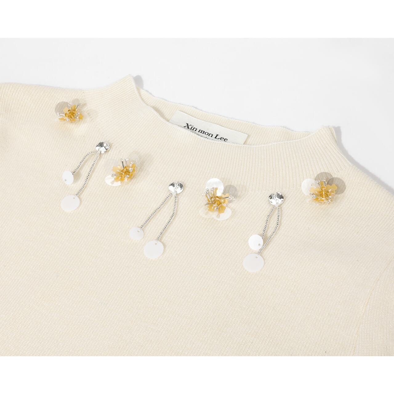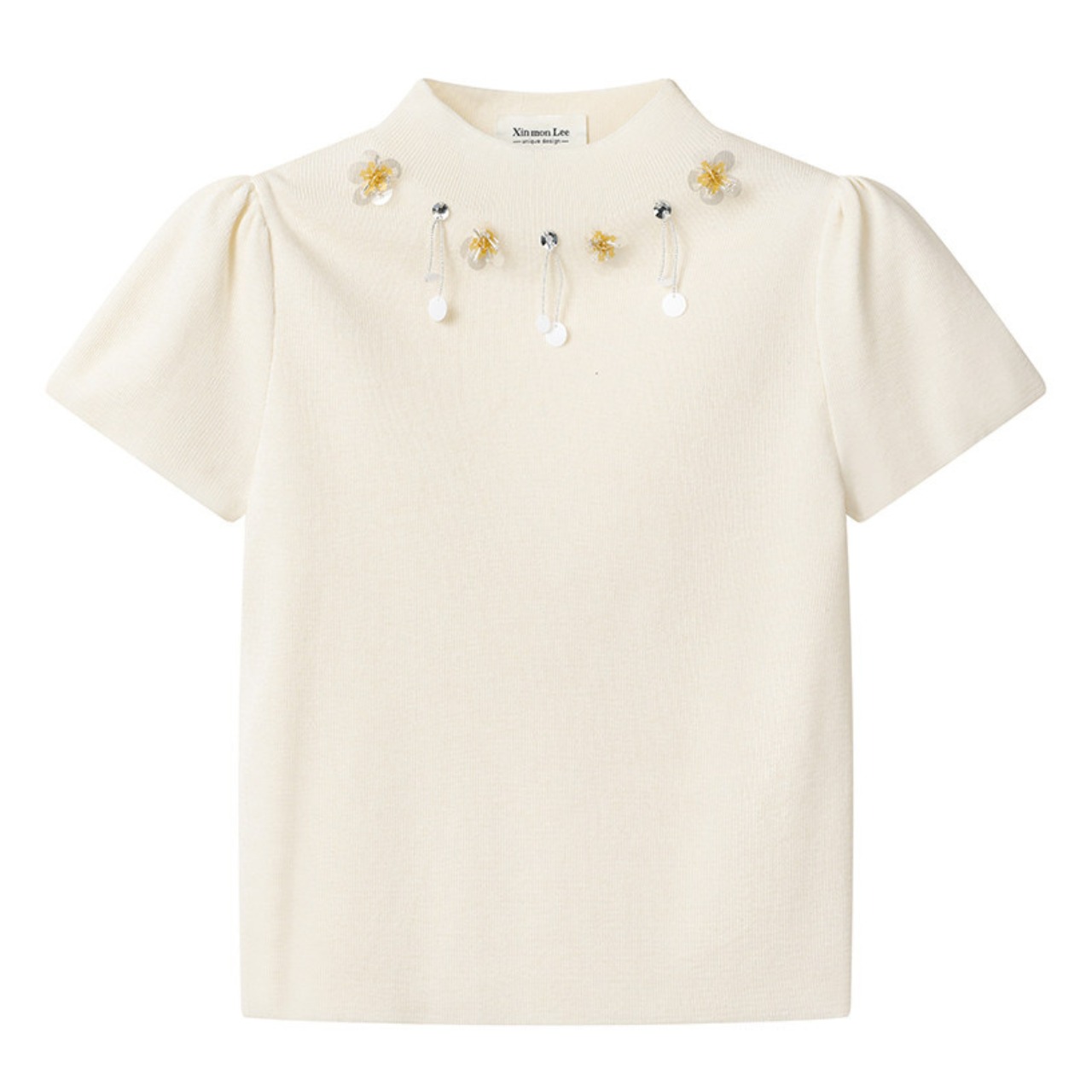 装飾付き 半袖 クロップド丈 ニットカットソー / 00150