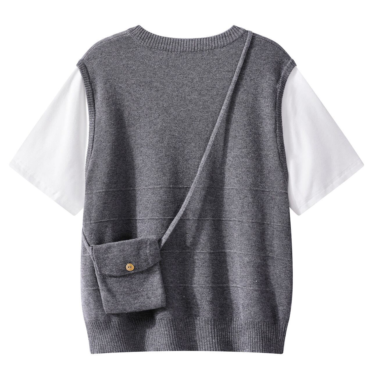一枚で重ね着をしているようなスタイルが完成します。