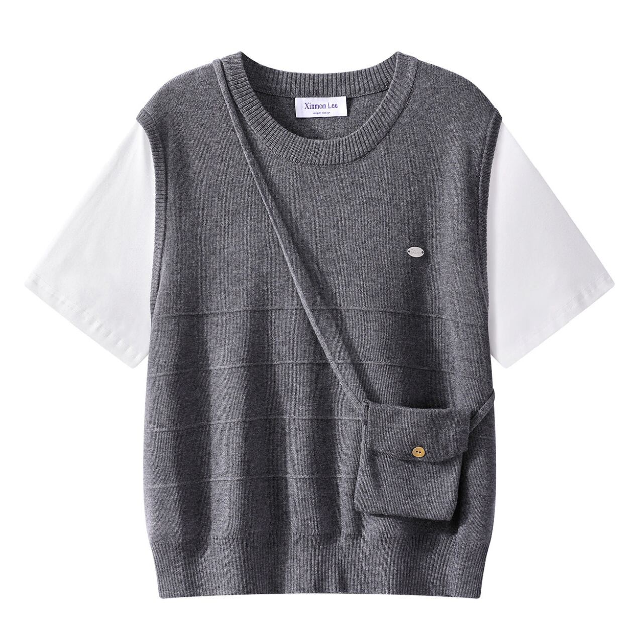 半袖 ポケット付き ニット レイヤード風 Tシャツ 00152