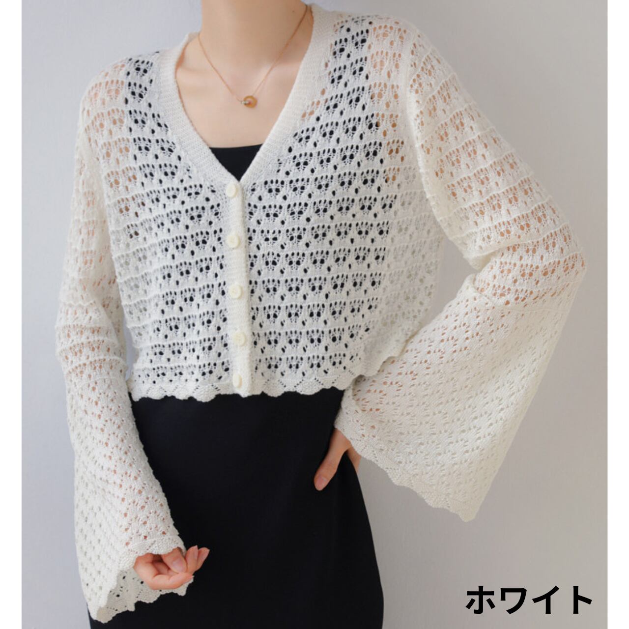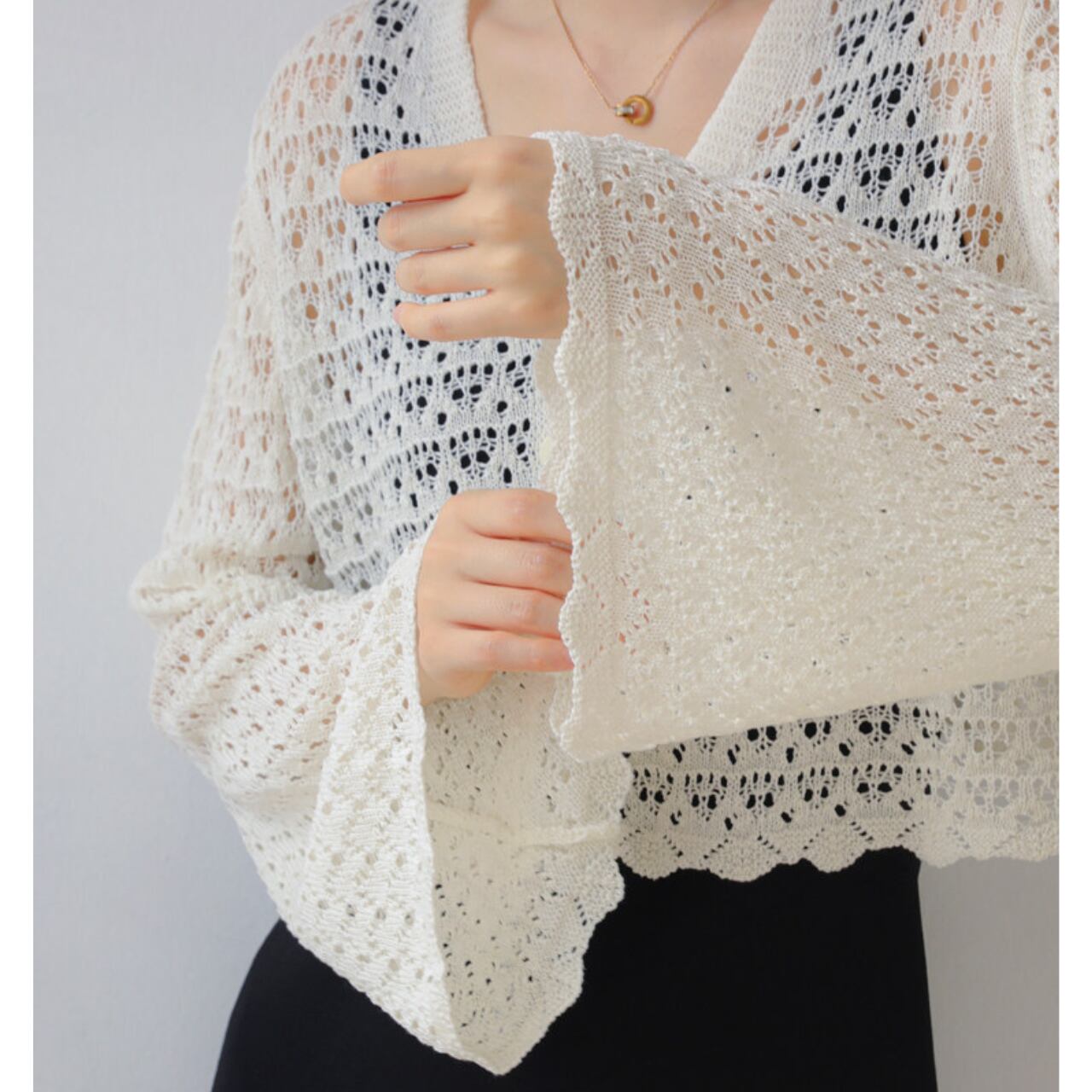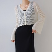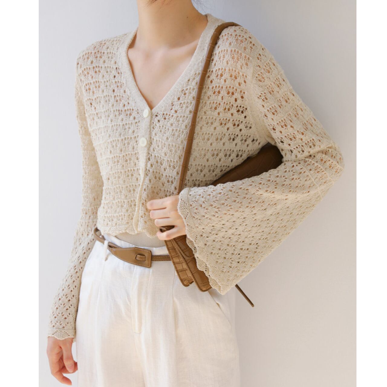 クロップド丈のシルエットが魅力的なレースカーディガン。